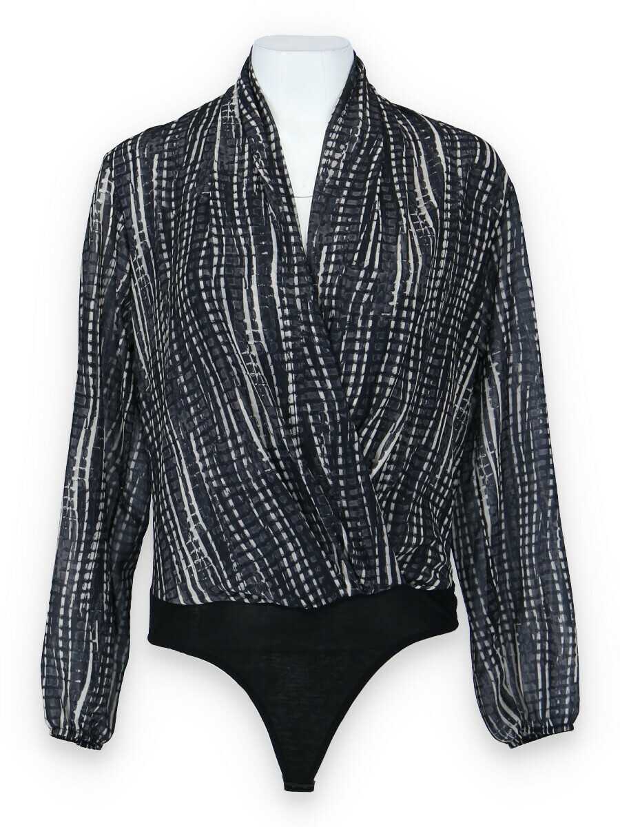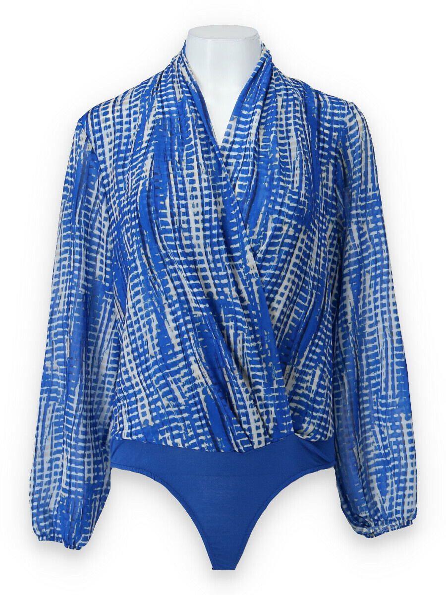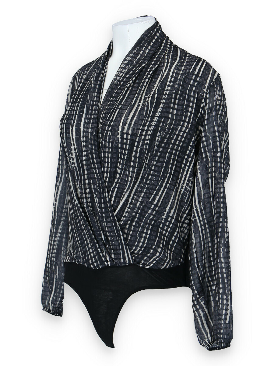 Dámské elegantní body s překladem v přední části. Dlouhý rukáv zakončený do gumy.