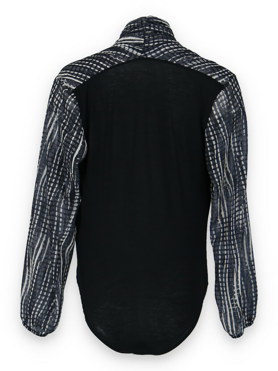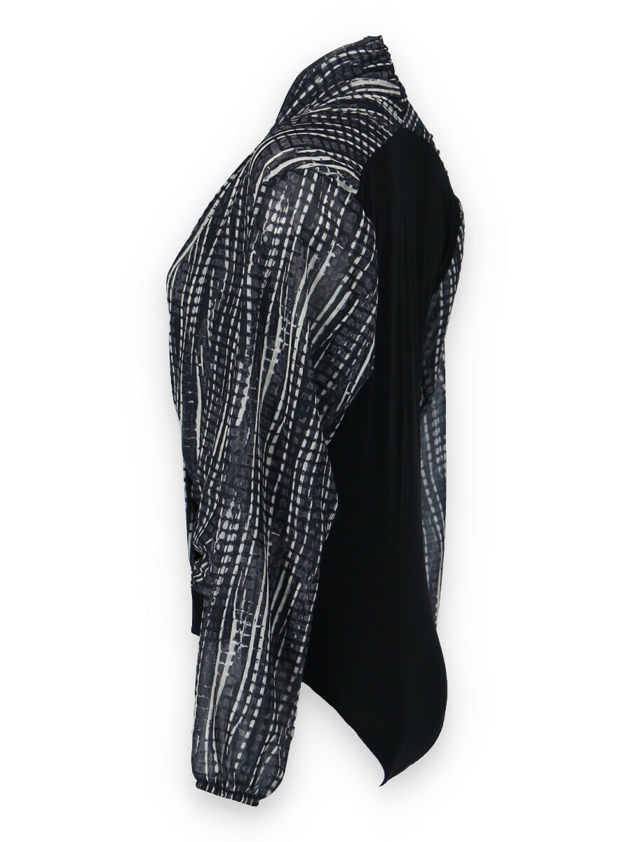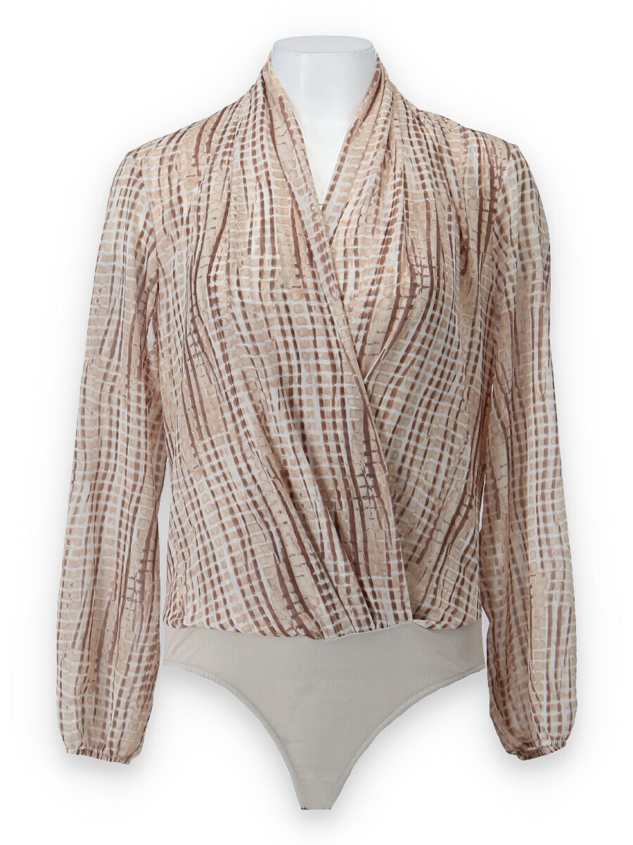 Dámské elegantní body s překladem v přední části. Dlouhý rukáv zakončený do gumy.