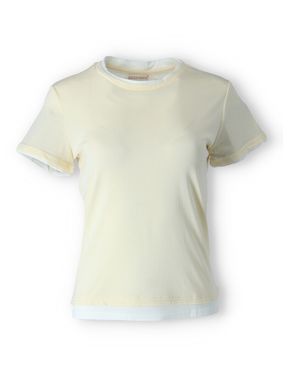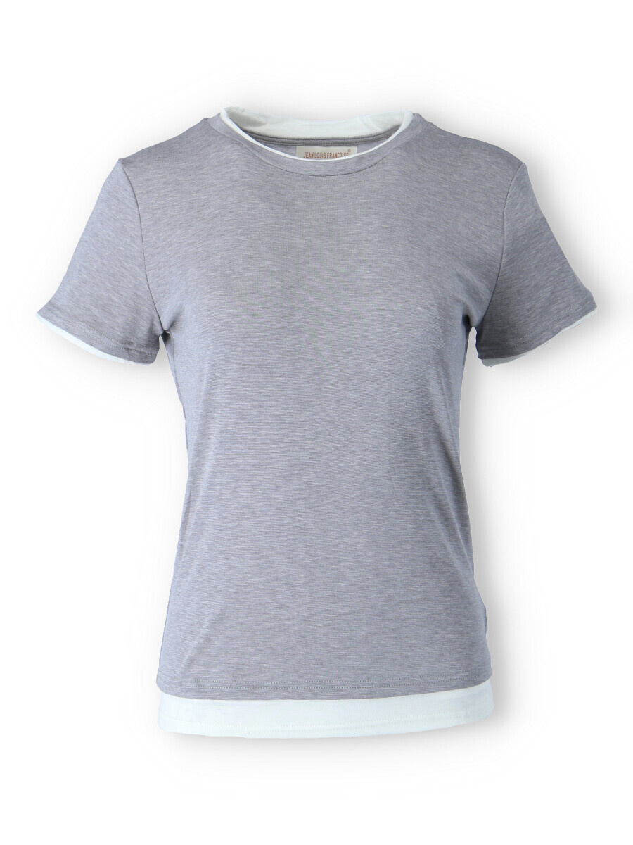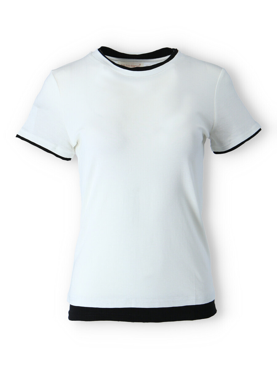 Dámské triko/halenka s krátkým rukávem. Halenka má kulatý výstřih a kraje lemů jsou barevně kombinované. Dovoz Itálie