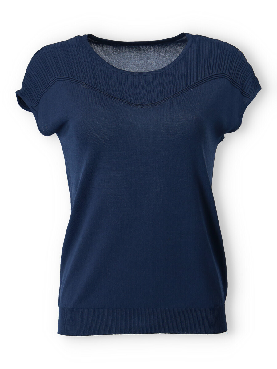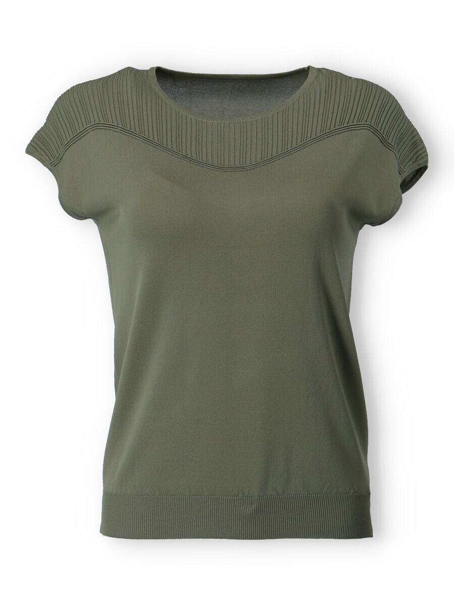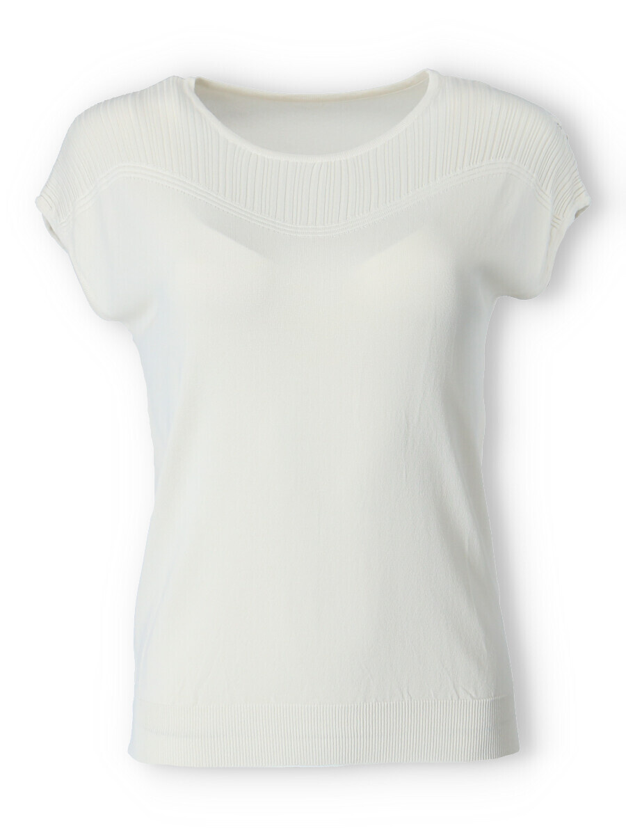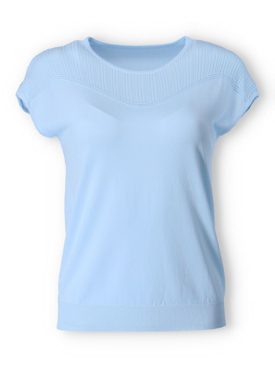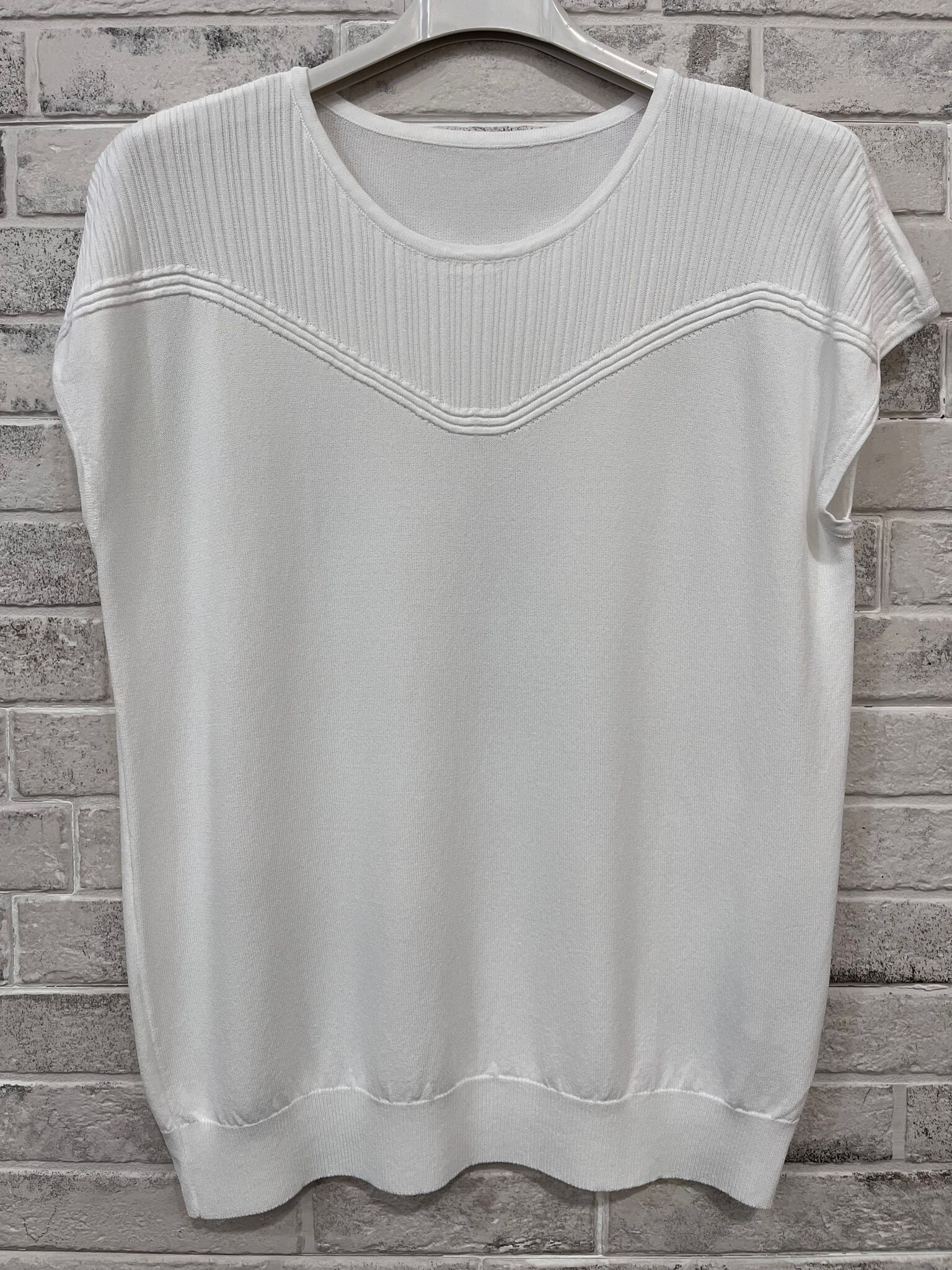 Dámská jemná viskózová elegantní halenka s krátkým rukávem. Halenka má ve vrchní části žebrování a v pase je zakončená lemem. Vyrobeno v Itálii