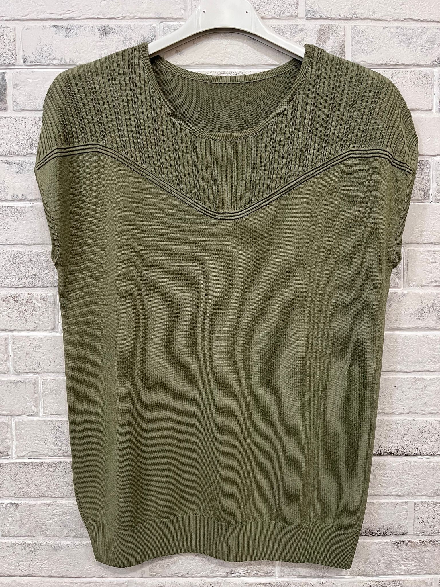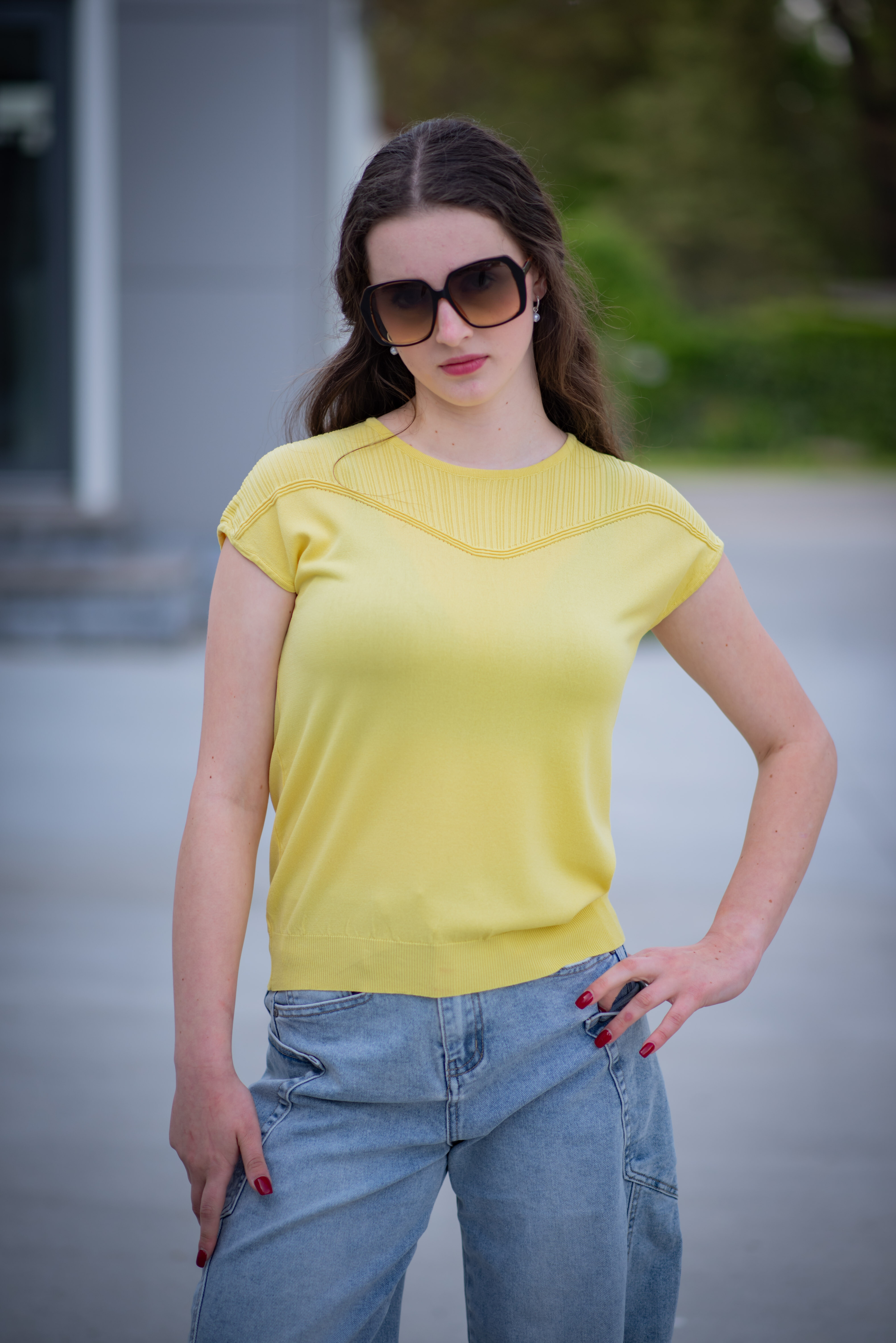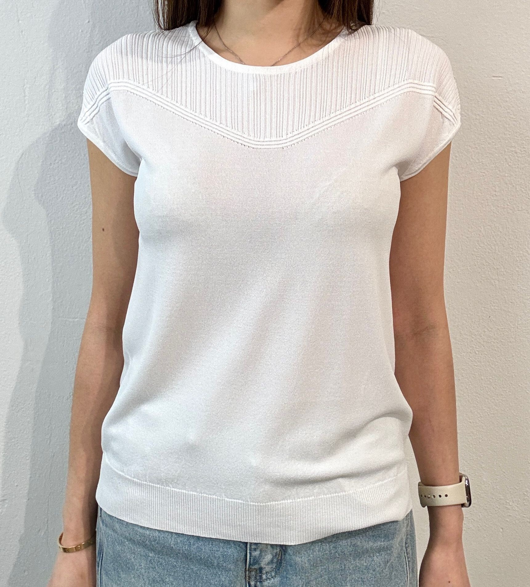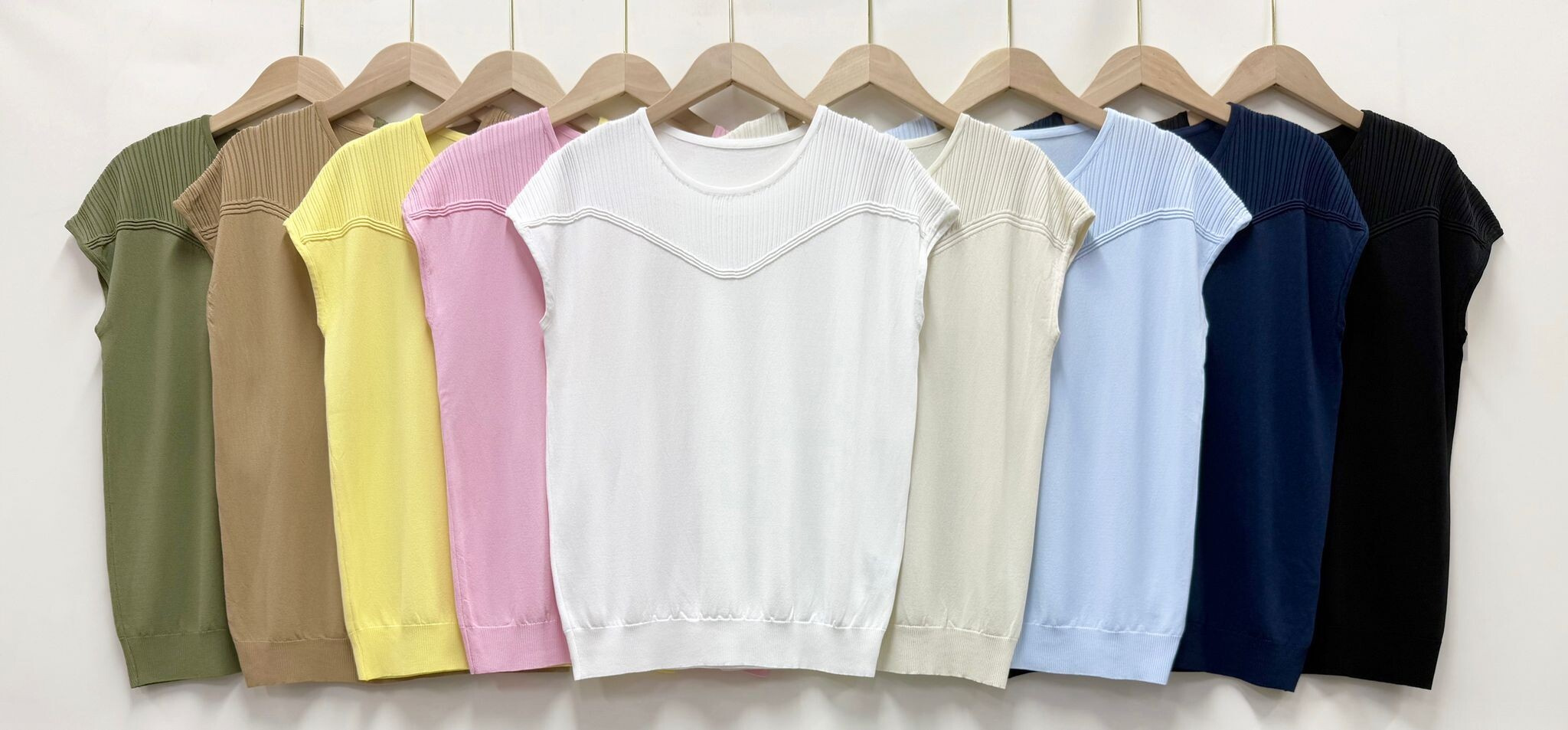 Dámská jemná viskózová elegantní halenka s krátkým rukávem. Halenka má ve vrchní části žebrování a v pase je zakončená lemem. Vyrobeno v Itálii