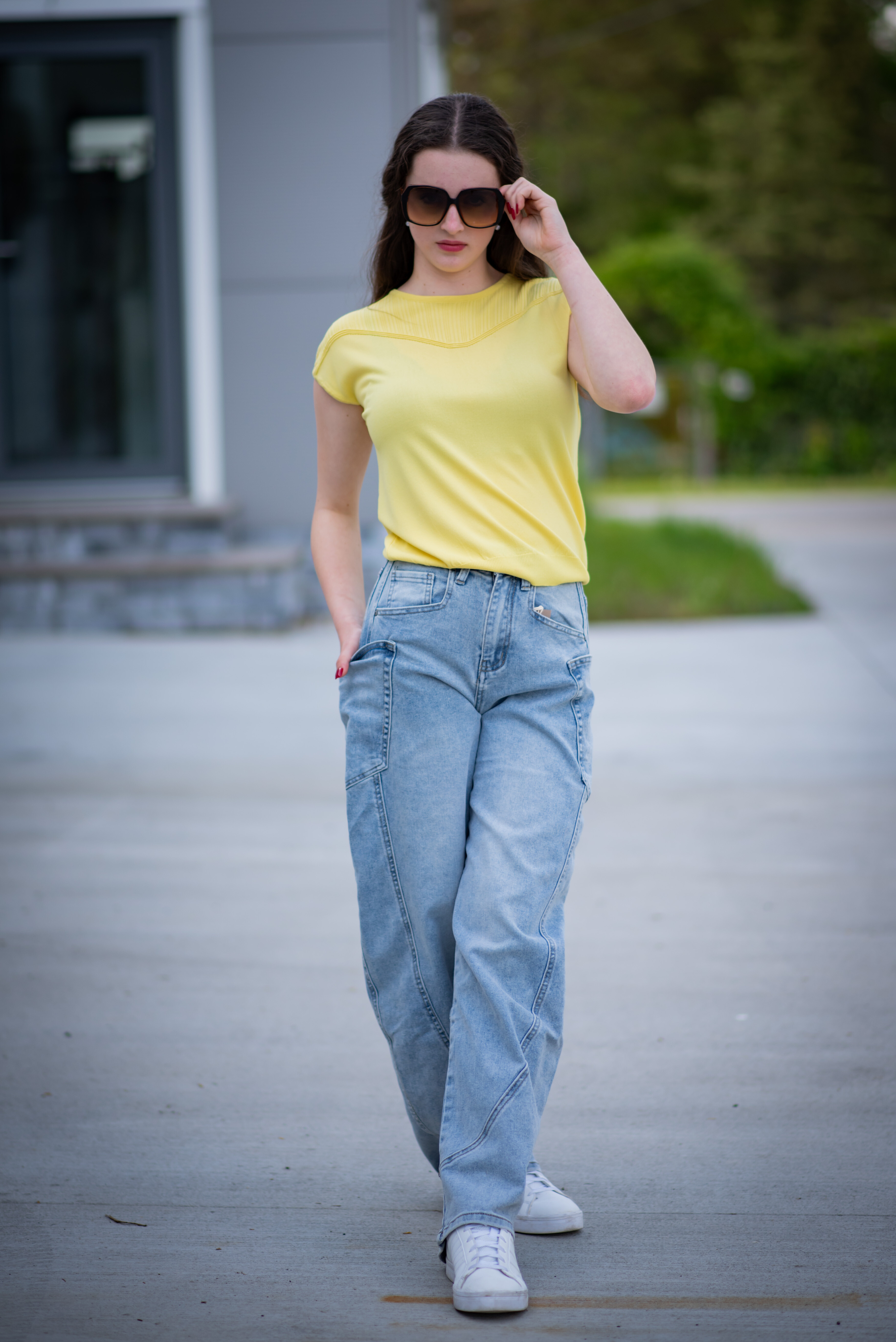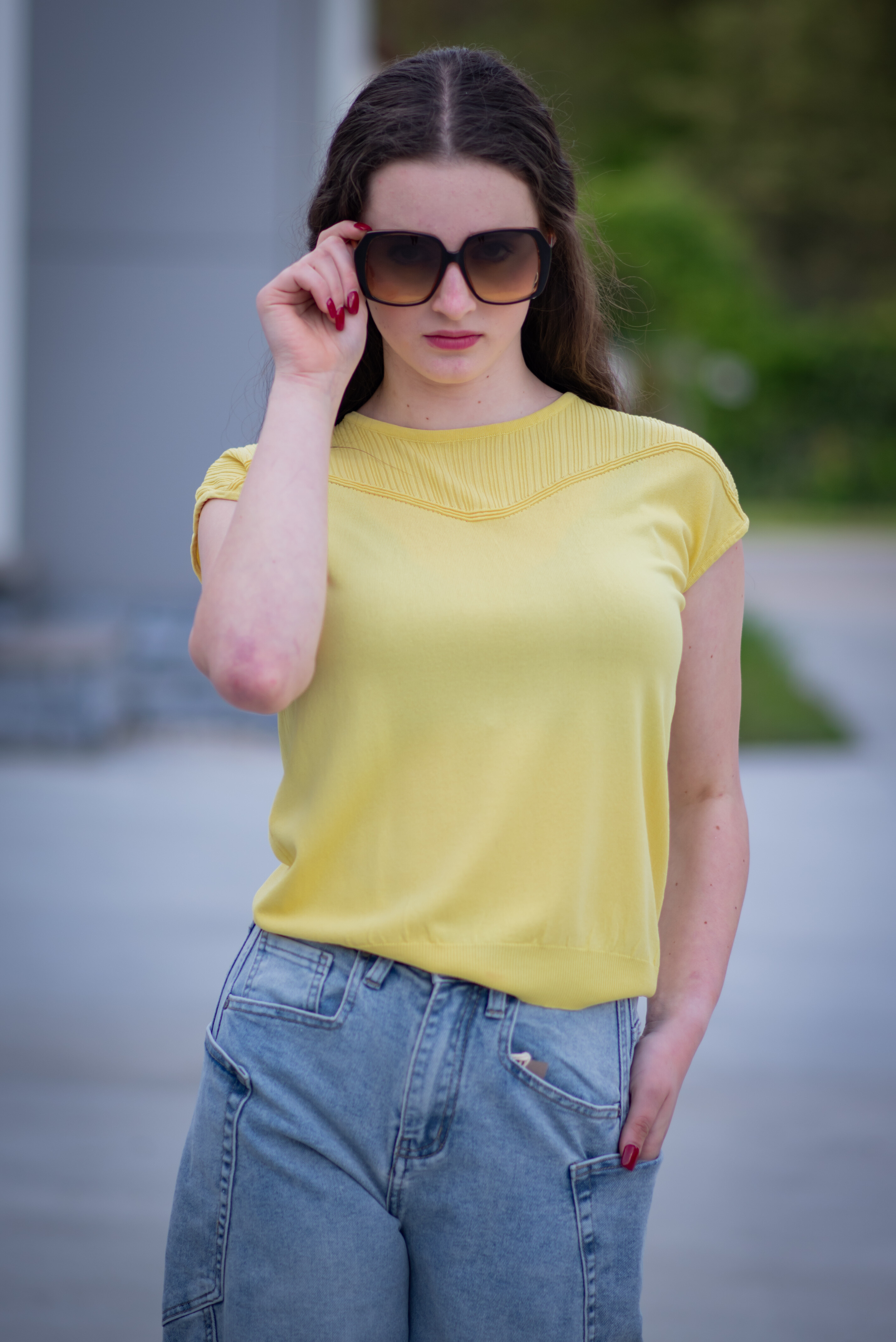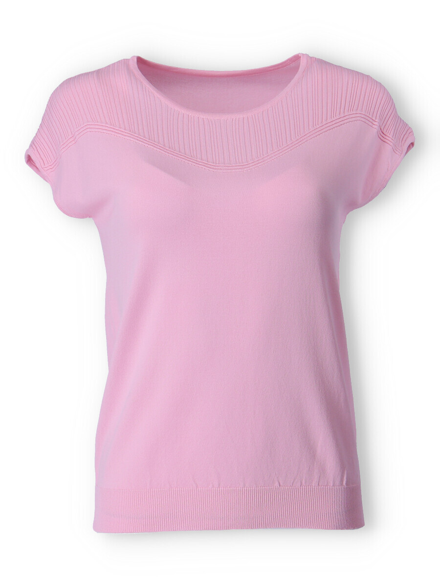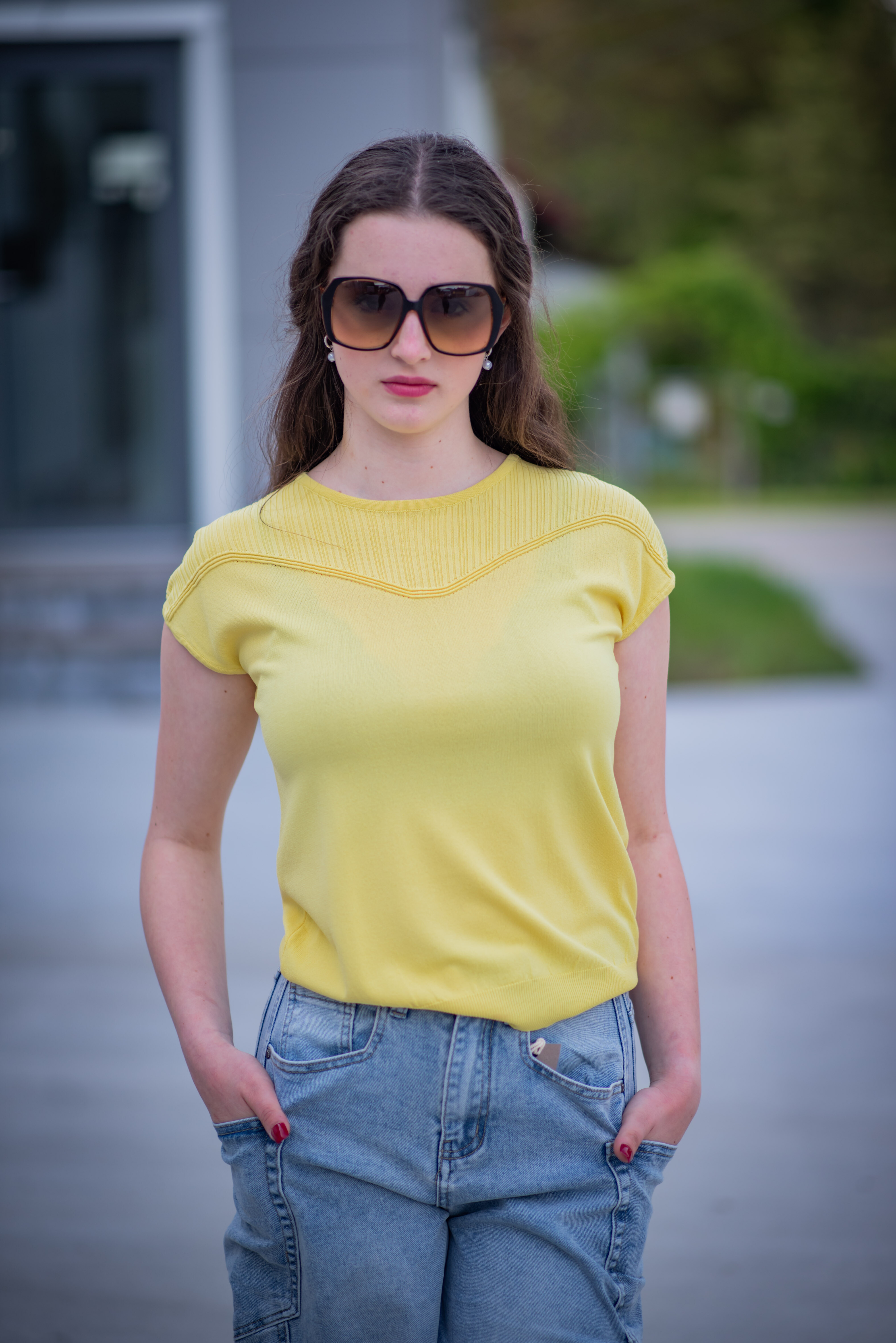 Dámská jemná viskózová elegantní halenka s krátkým rukávem. Halenka má ve vrchní části žebrování a v pase je zakončená lemem. Vyrobeno v Itálii