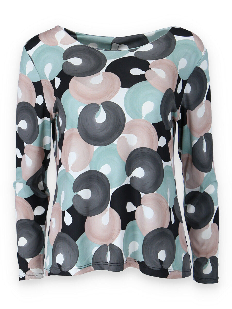 Elegantní halenka s potiskem. Halenka má dlouhý rukáv a kulatý výstřih.