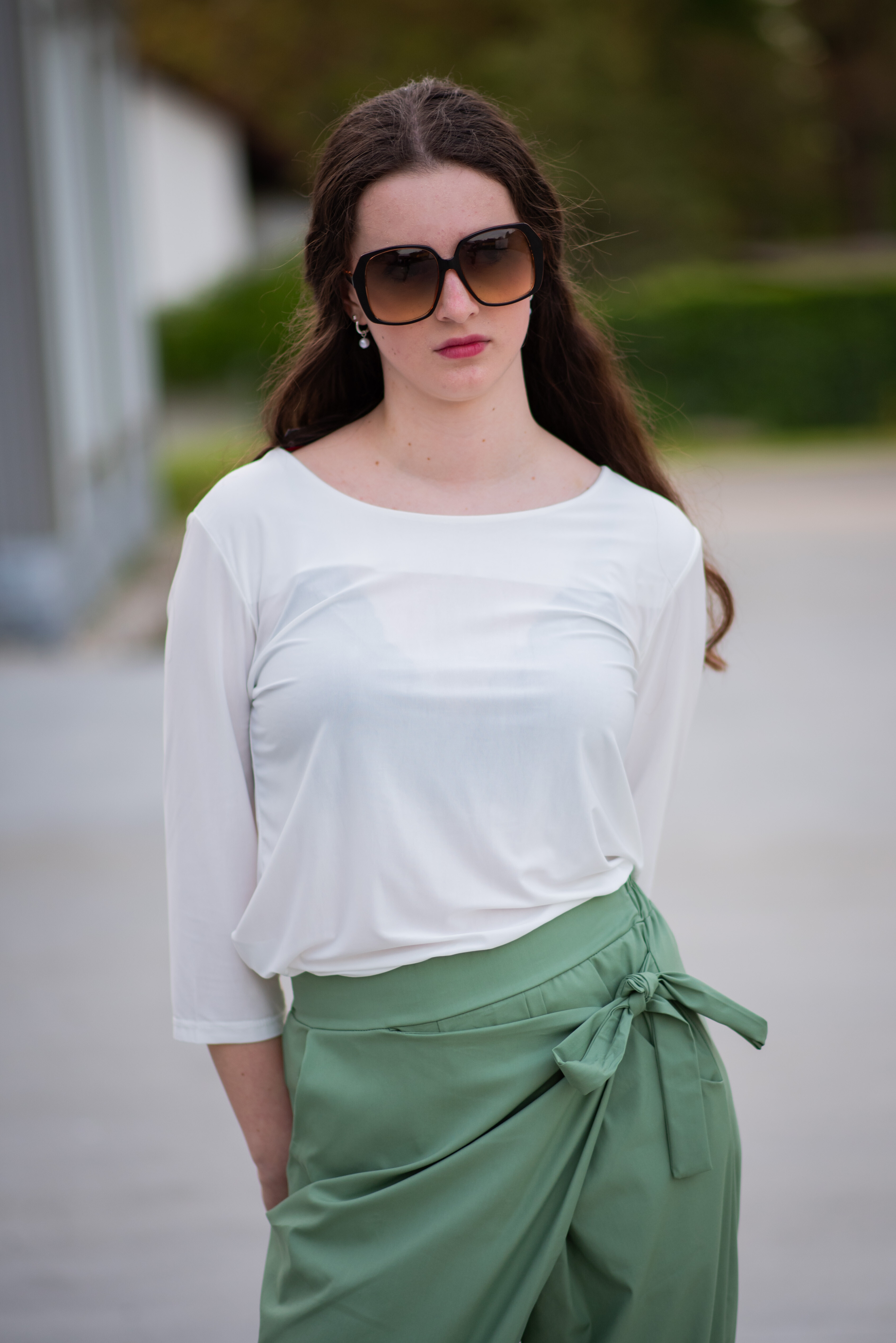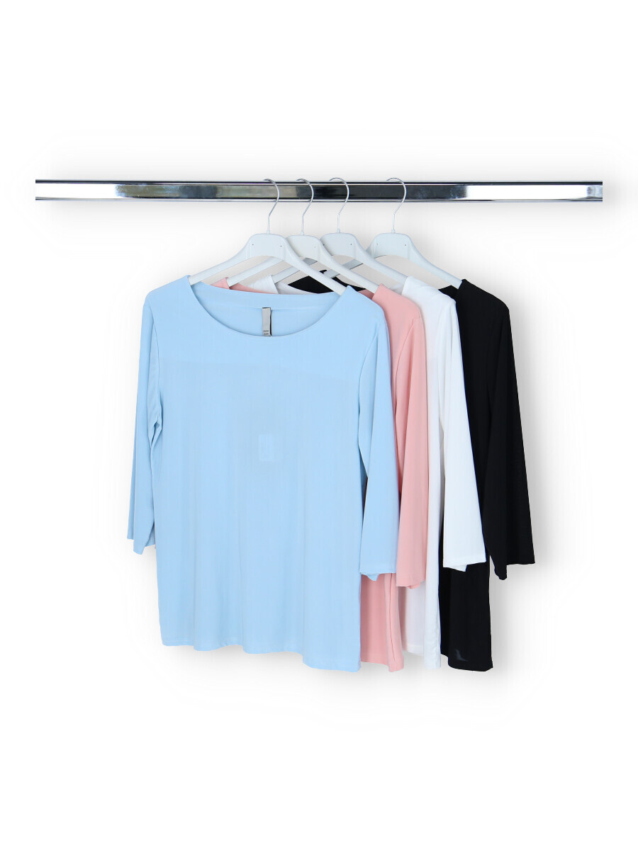 Módní halenka jednobarevná. Halenka má 3/4 rukáv a kulatý výstřih, dovoz Itálie