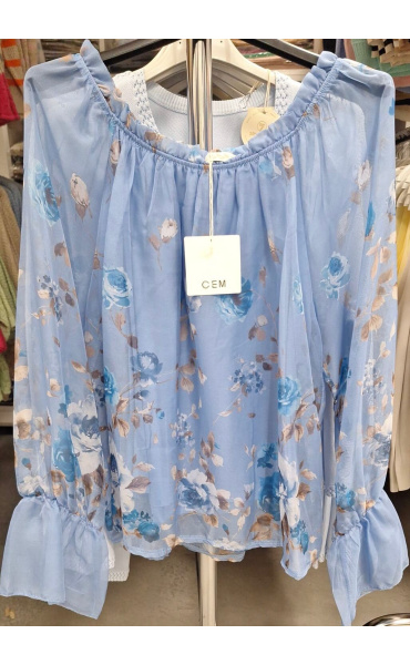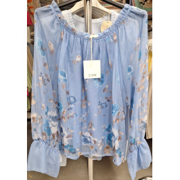 Elegantní halenka s volánovým dlouhým rukávem. Halenka má lem do gumy s možností stažení přes ramena.