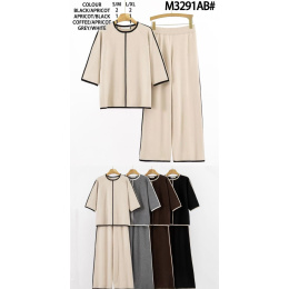 Elegantní komplet z úpletu. Kalhoty mají široké nohavice a v pase jsou do gumy. Svetřík má 3/4 rukáv a kulatý výstřih.