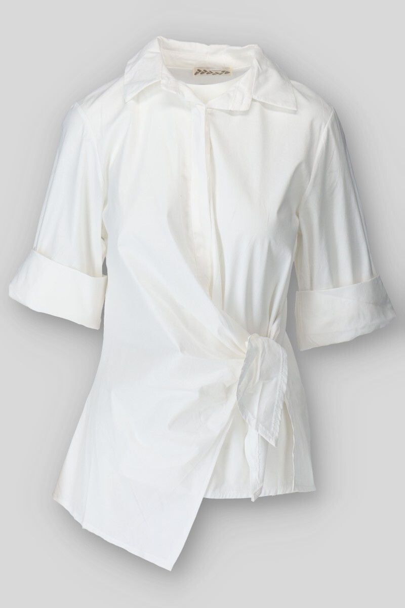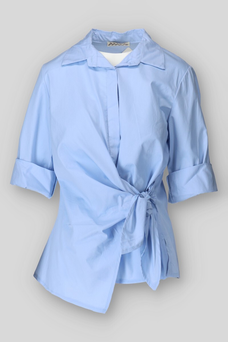 Elegantní košile, která je z poloviny propínací a spodní část je otevřená s vázáním na boku.