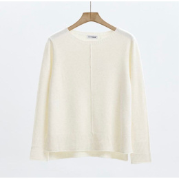 Elegantní svetřík volnějšího střihu s kulatým výstřihem.