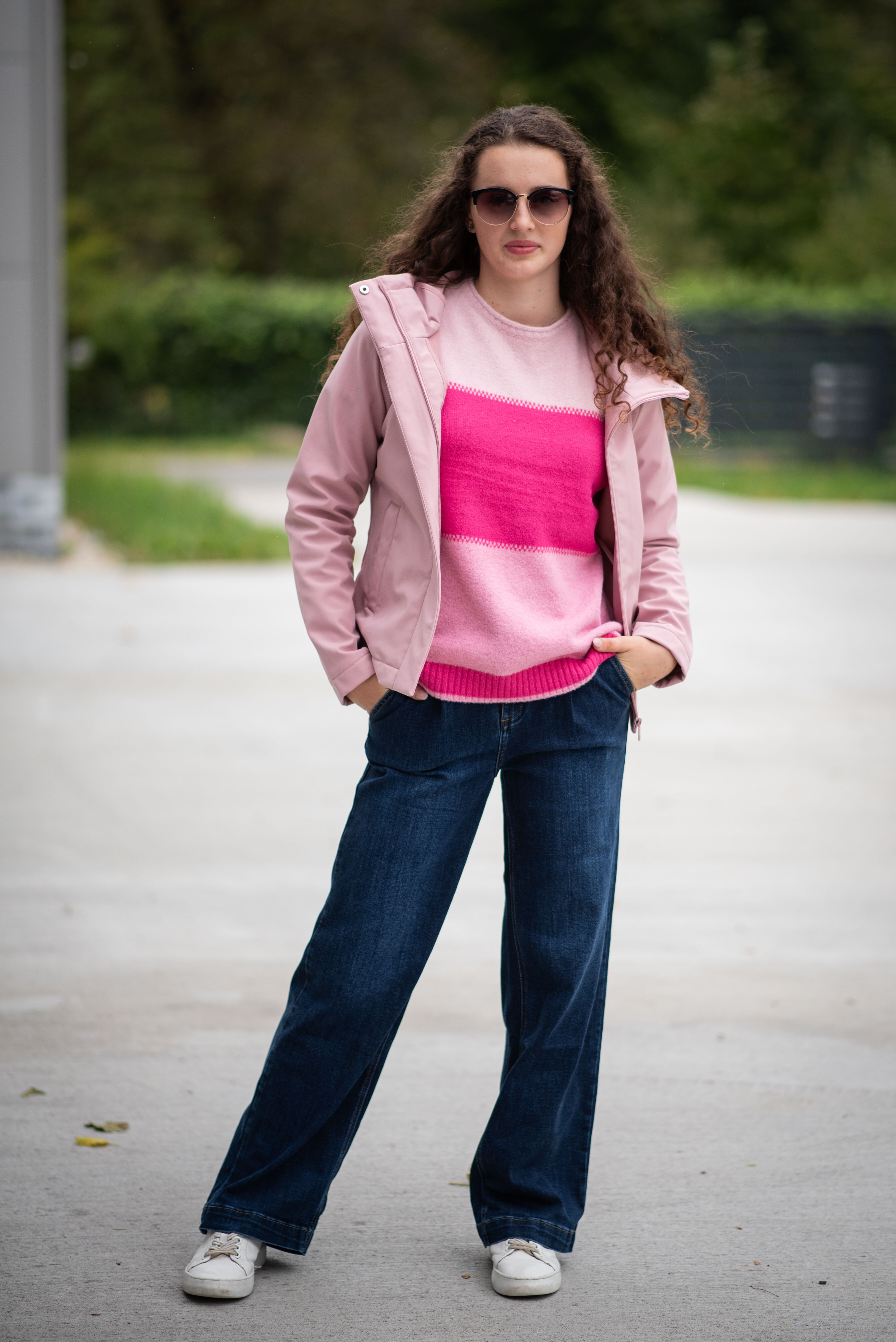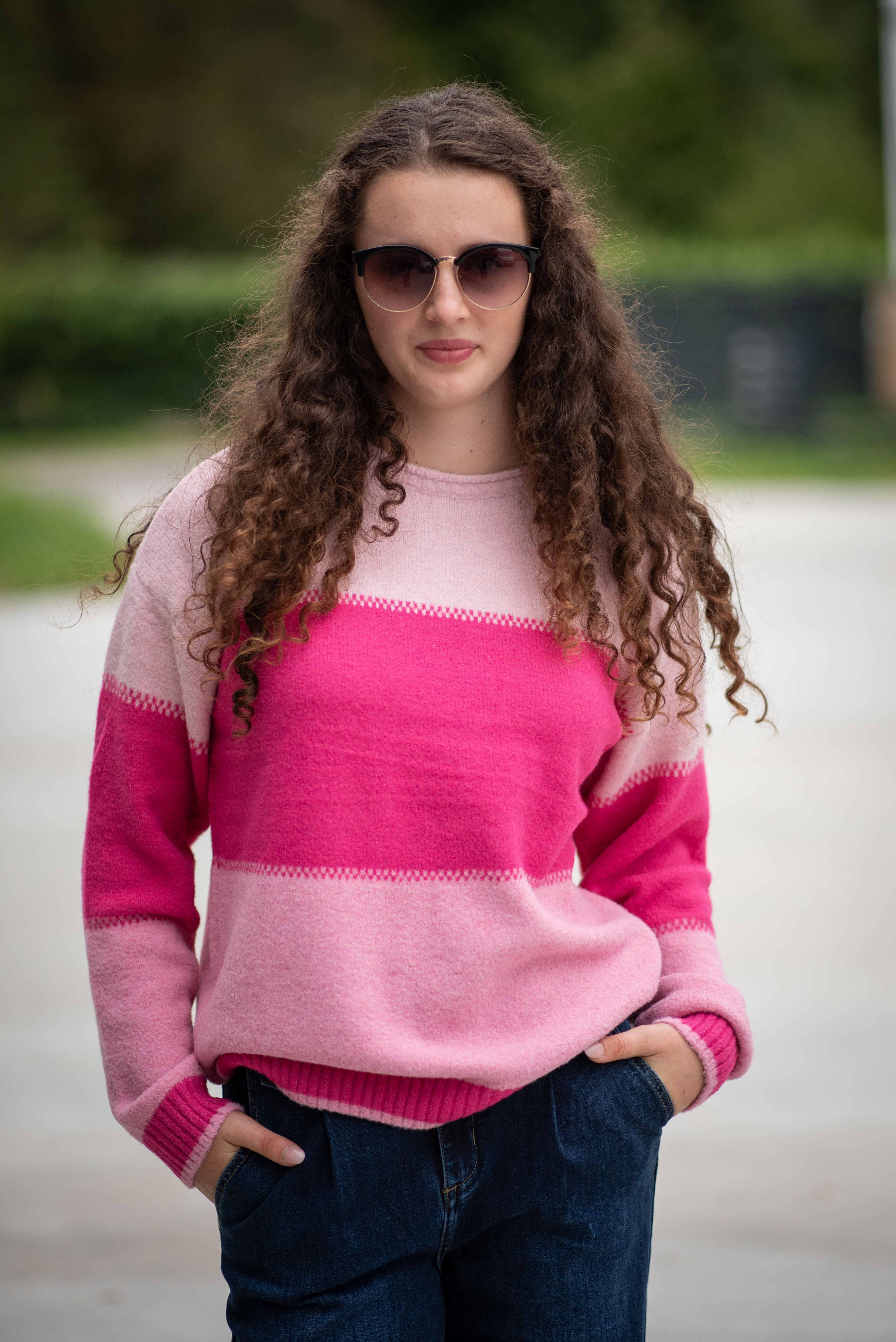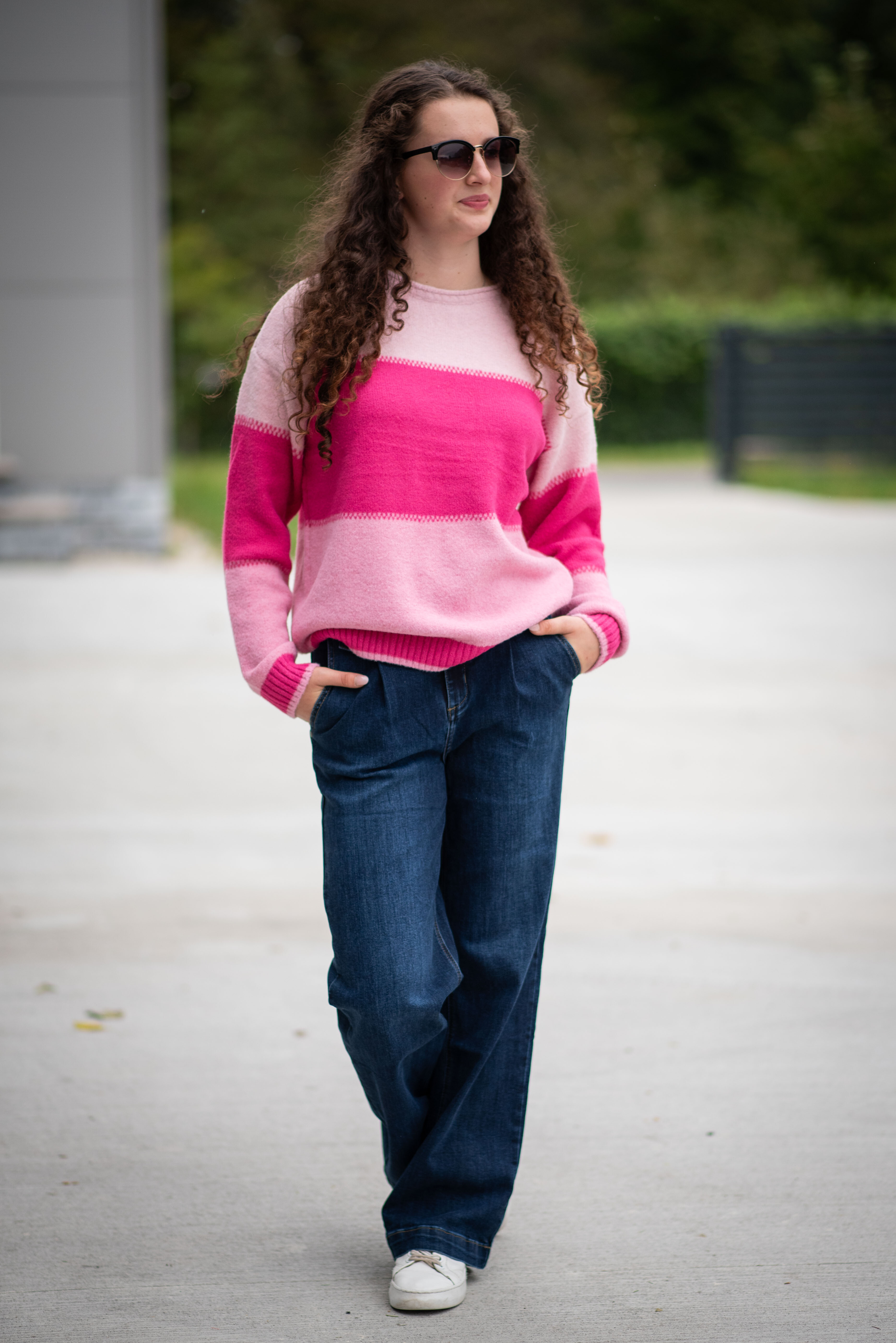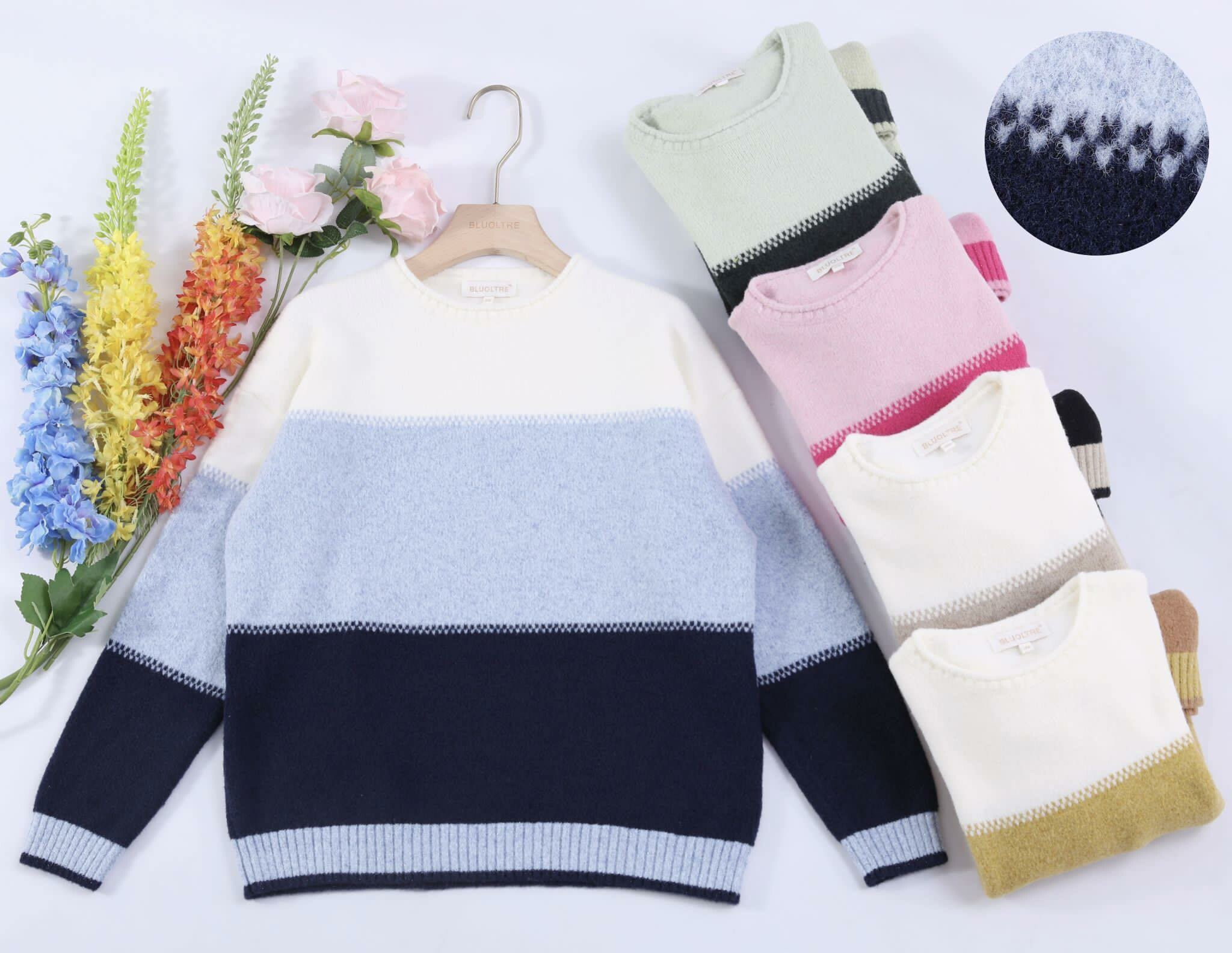 Elegantní svetřík s kulatým výstřihem. Svetřík s barevnými pruhy. Svetřík Dovoz Itálie