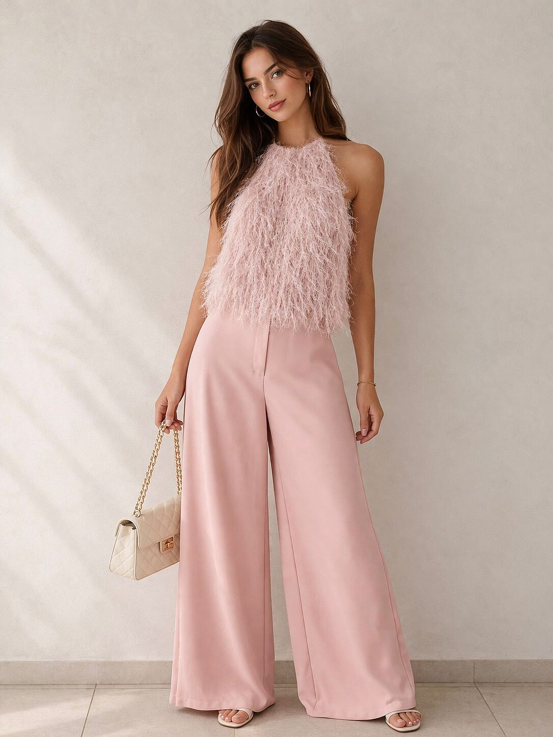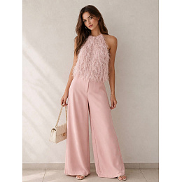 Elegantní top s třásněmi. Top je v pase do gumičky a na zadní straně u krku má zapínání na knoflík.