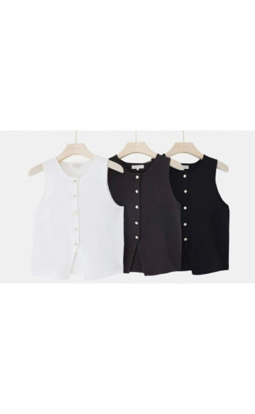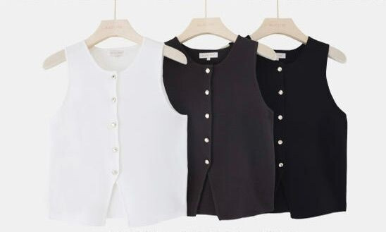 Elegantní úpletová vesta na knoflíky. Vesta je na knoflíky a má kulatý výstřih.
