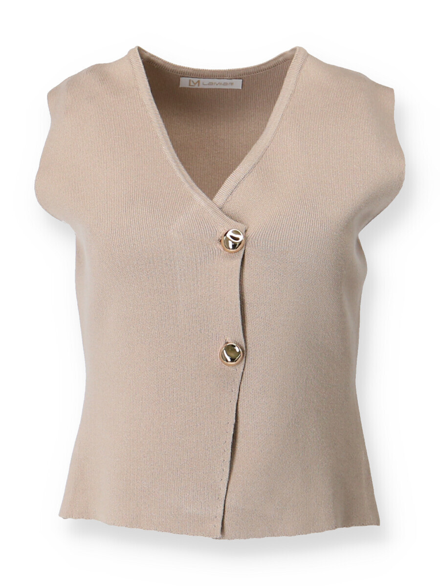 Dámská elegantní vesta úpletová. Vesta má véčkový výstřih a zapínání na dva knoflíky.