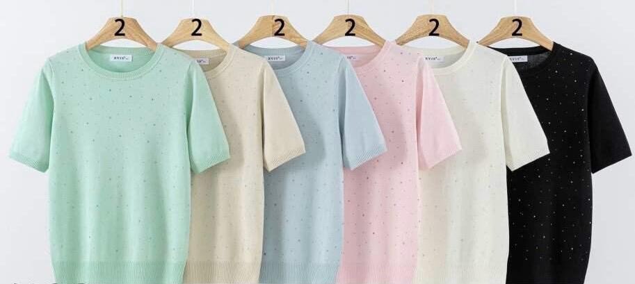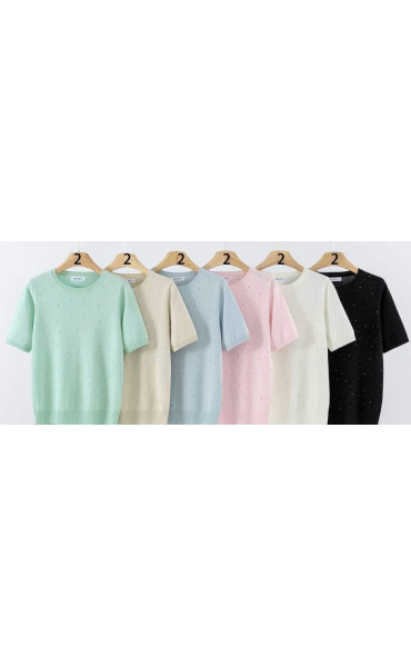 Dámská elegantní halenka/svetřík s aplikací kamínků. Elegantní svetřík má krátký rukáv a kulatý výstřih.