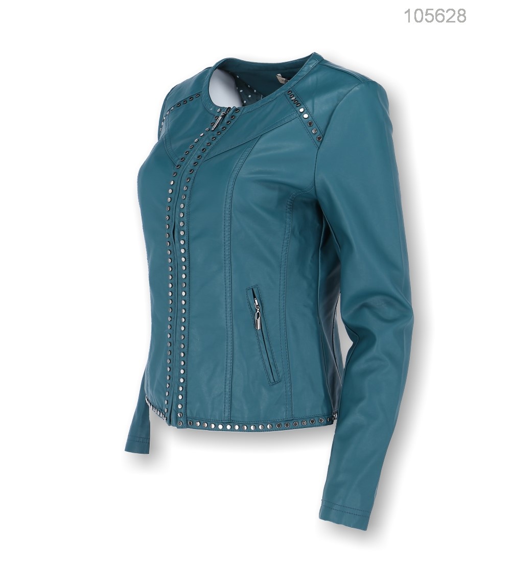 Foto z běžné velikosti. Módní koženková bunda se stojáčkem Lady velikost(nadměr)