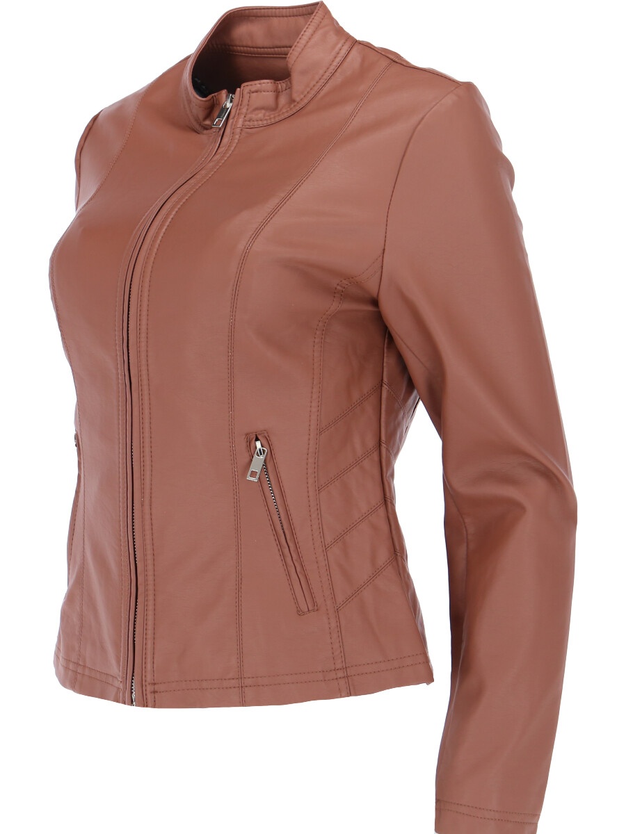 Foto z běžné velikosti. Módní koženková bunda se stojáčkem Lady velikost(nadměr)