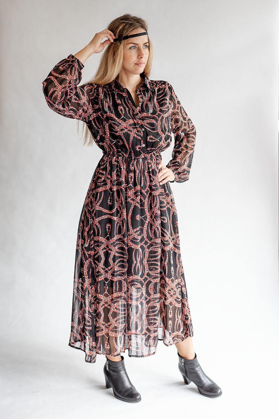 Módní batikované dlouhé dámské košilové šaty. Vyrobeno v Itálii