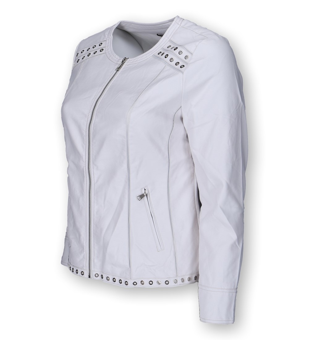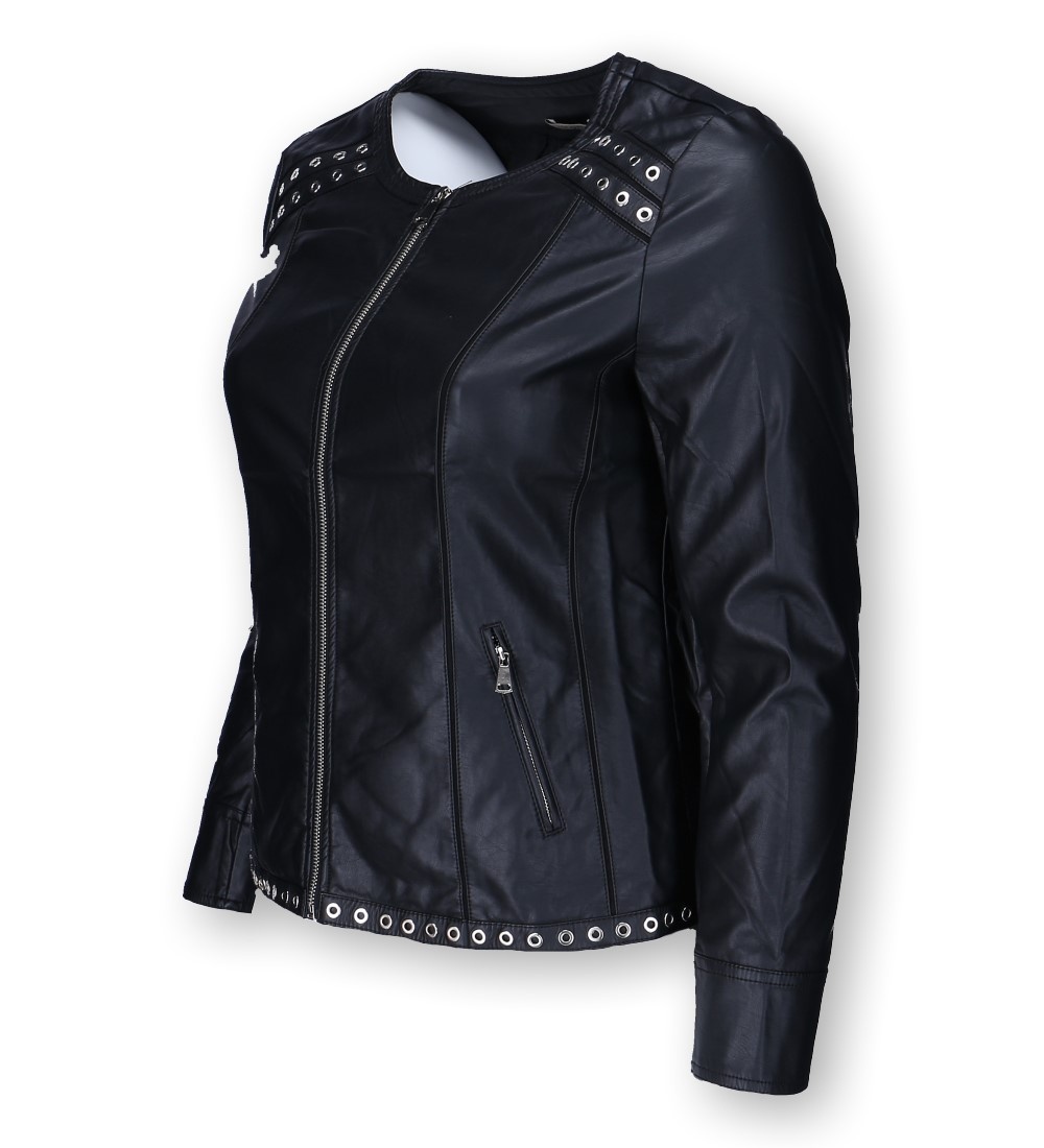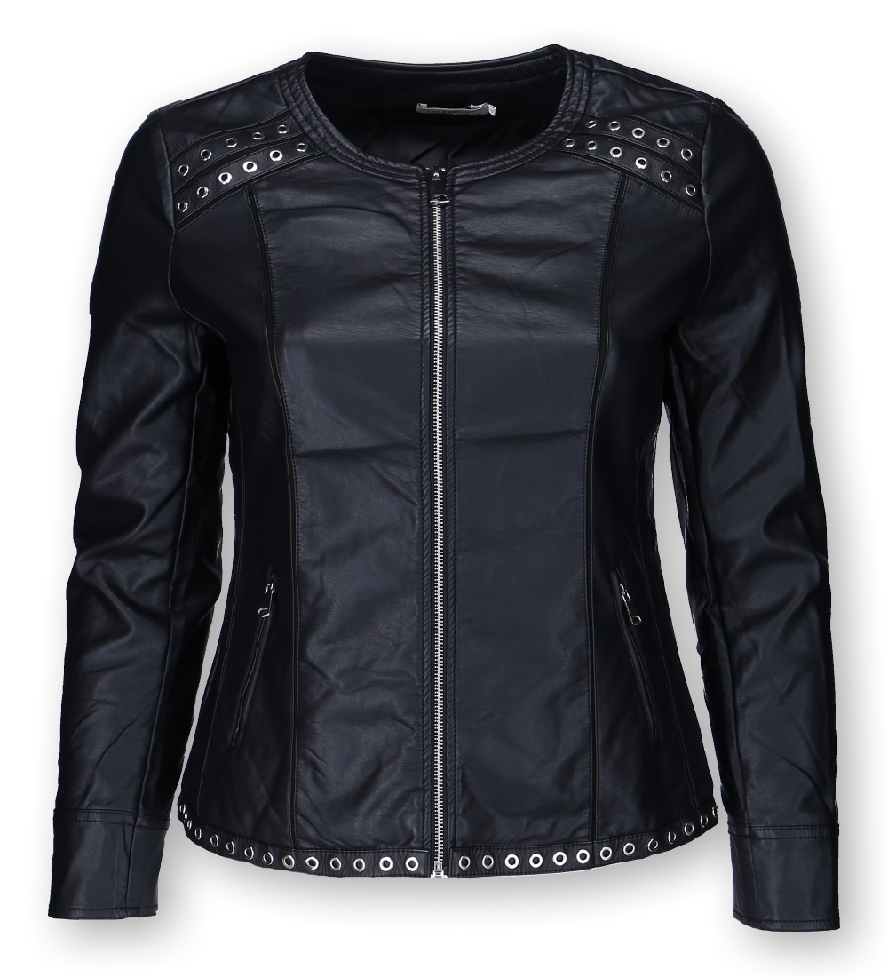 Foto z běžné velikosti. Módní koženková bunda se stojáčkem Lady velikost(nadměr)