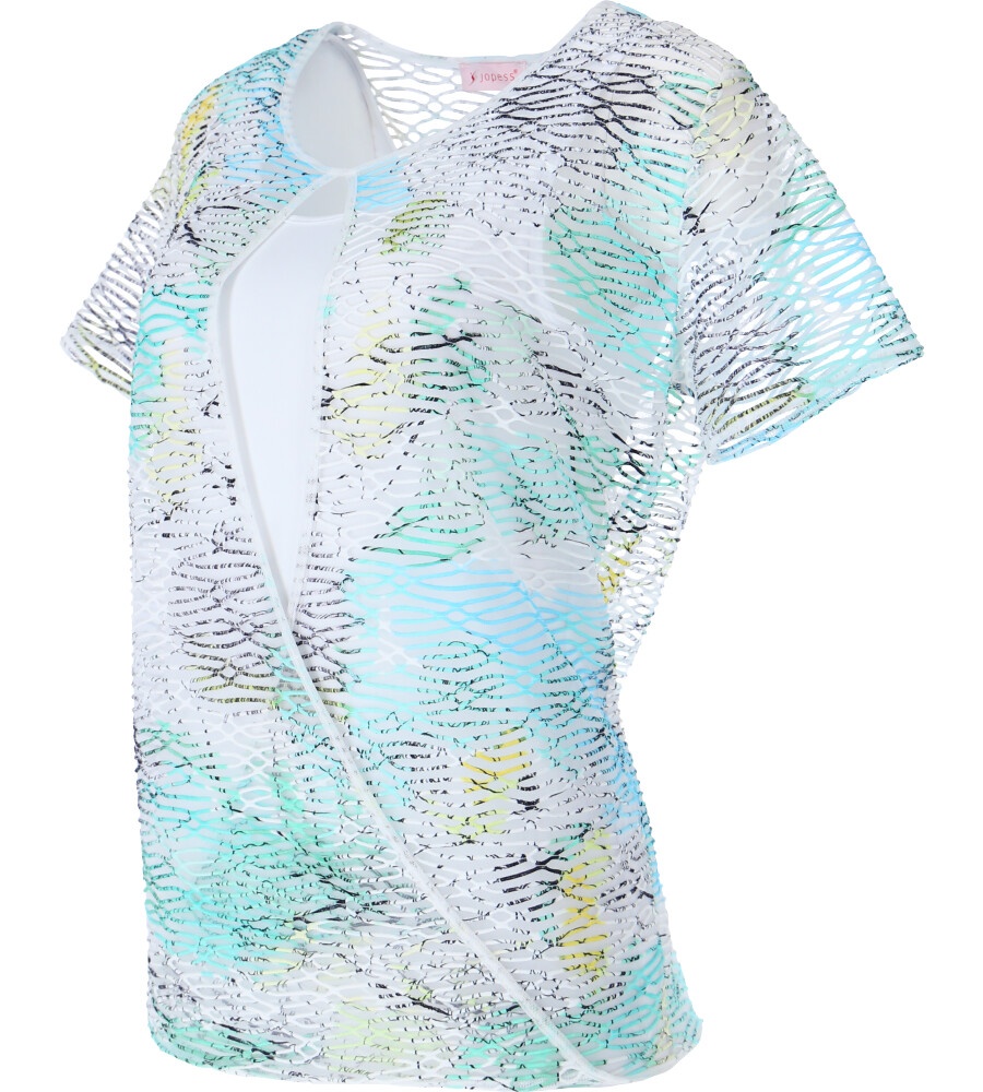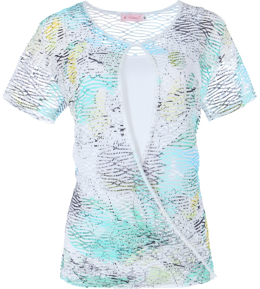 Dámské módní triko, složené z vrchní části a spodního bílého tílka