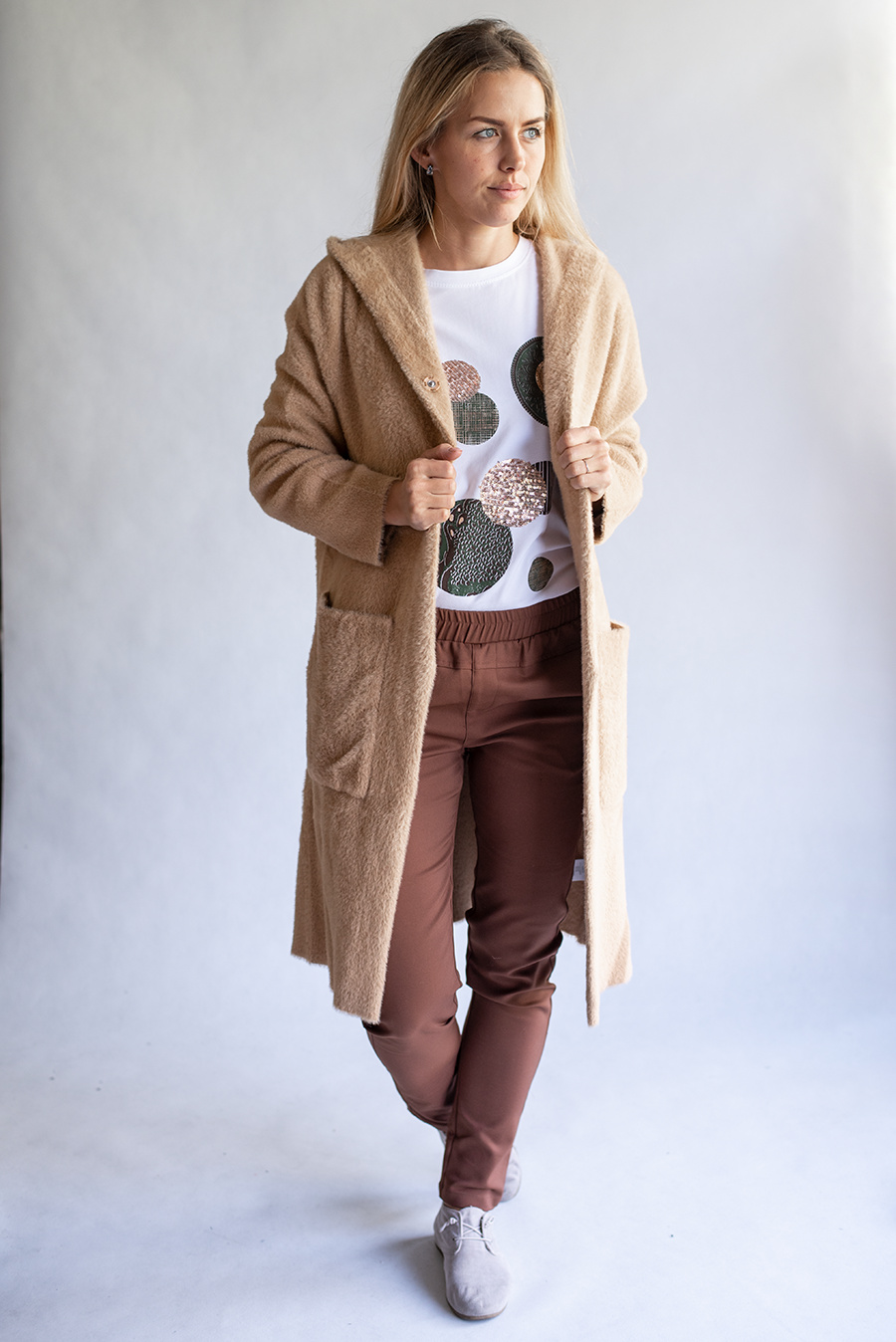 Barvy: khaki, tmavě hnědá, hnědá-camel, černá, tmavě modrá