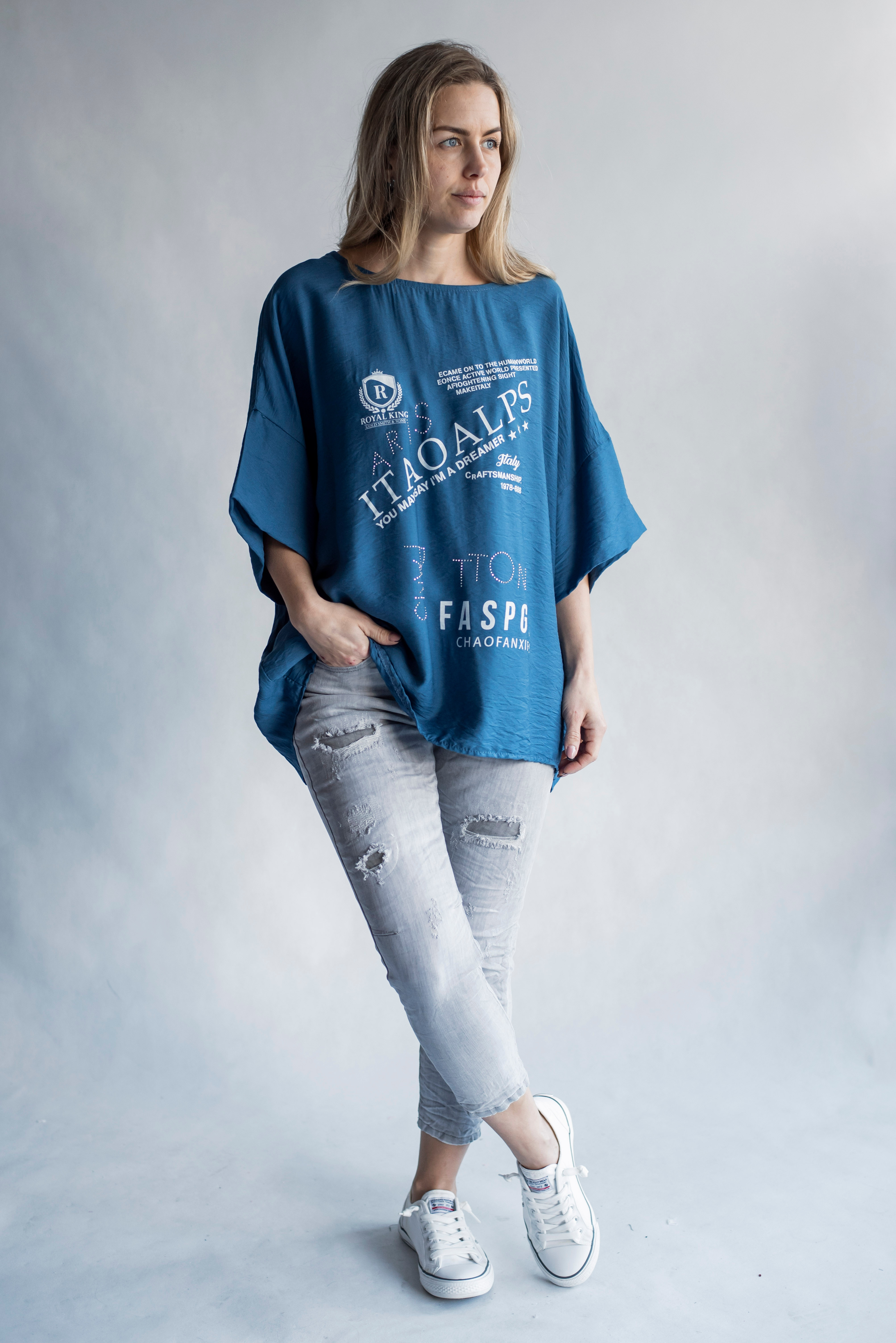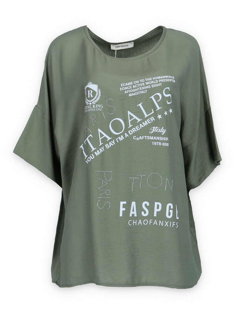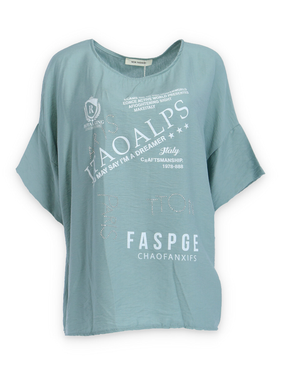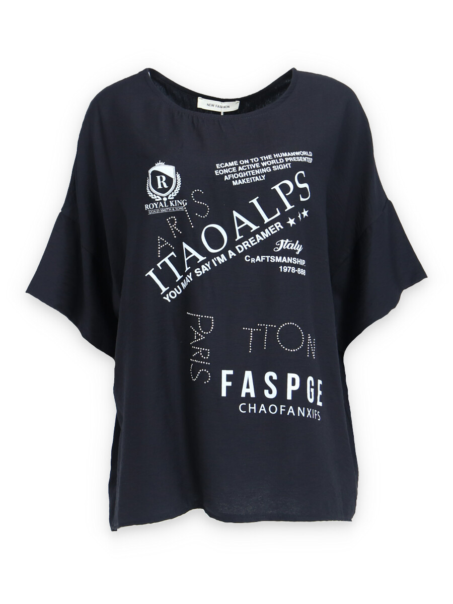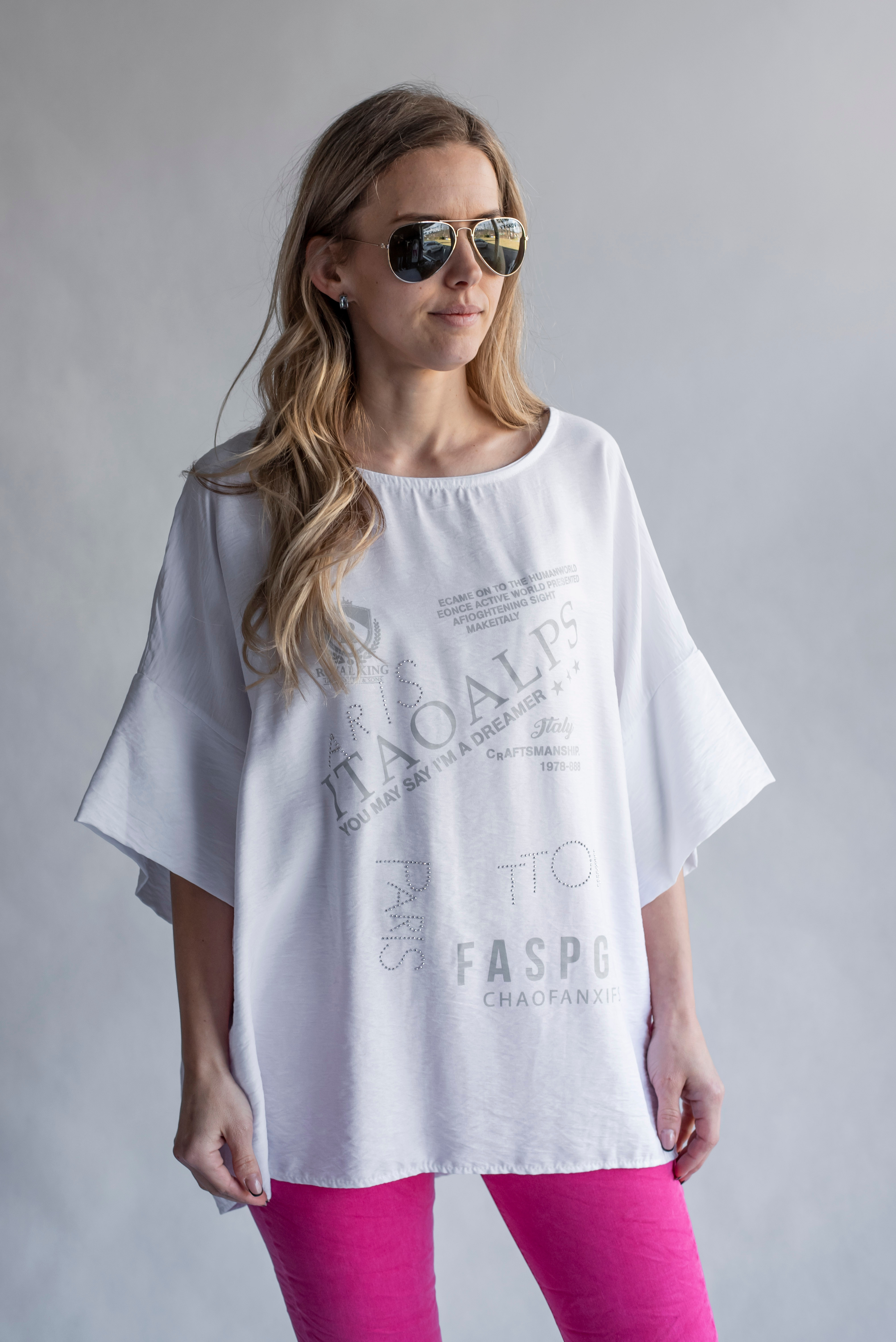 Halenka s potiskem, dlouhý rukáv, stažením na boku ve spodní části , dovoz Itálie
