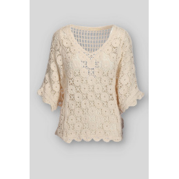 Elegantní háčkovaná halenka v BOHO stylu. Halenka je volnějšího střihu, má raglánový 3/4 rukáv a výstřih do V.
