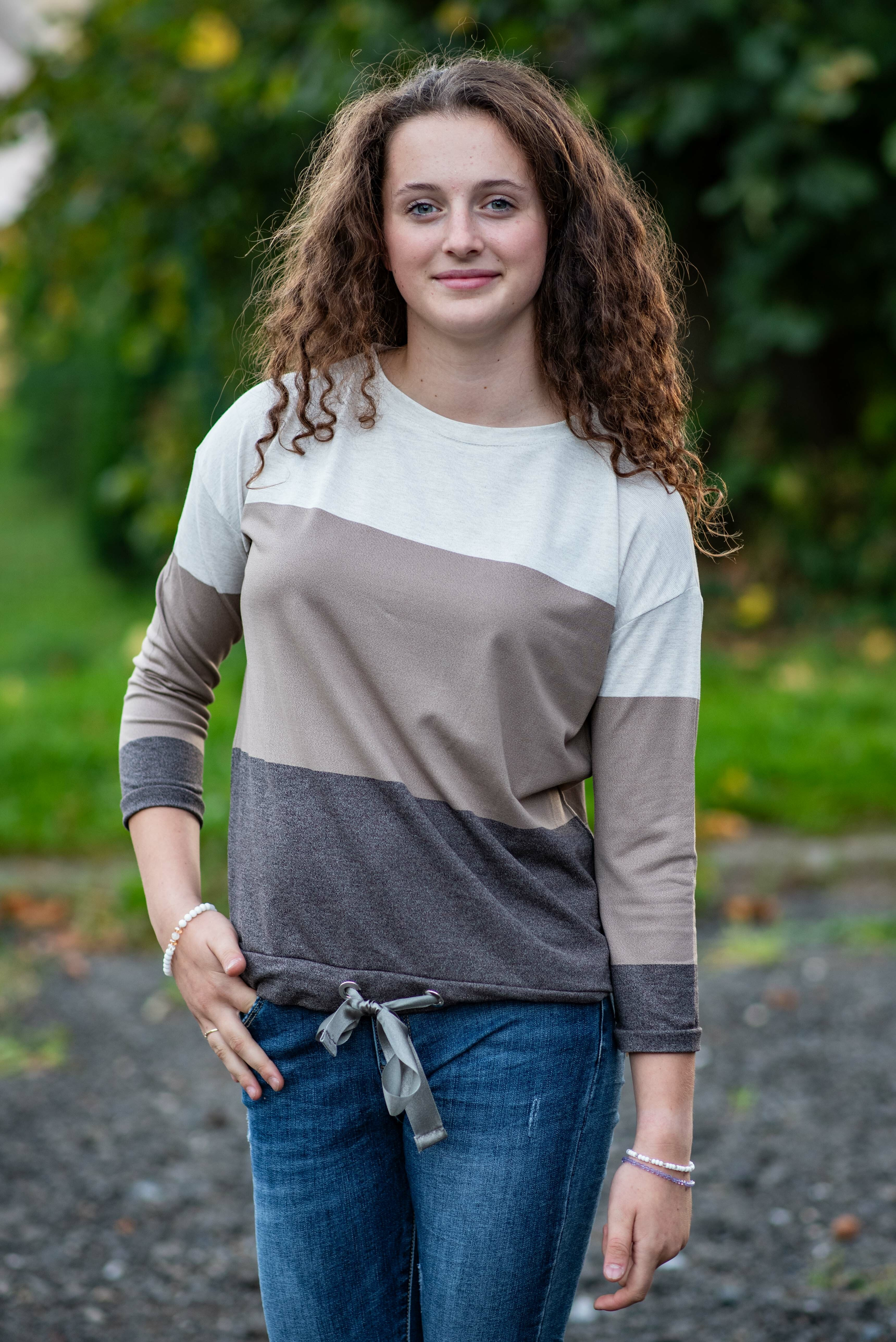 Elegantní a pohodlná halenka s 3/4 rukávem z viskózové tkaniny a možnosti stáhnutí v pasem,