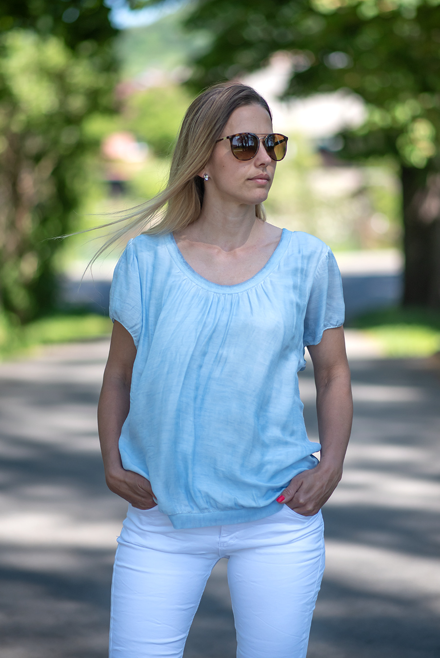 Halenka hedvábí, krátký rukáv kulatý výstřih, velice oblíbený model.