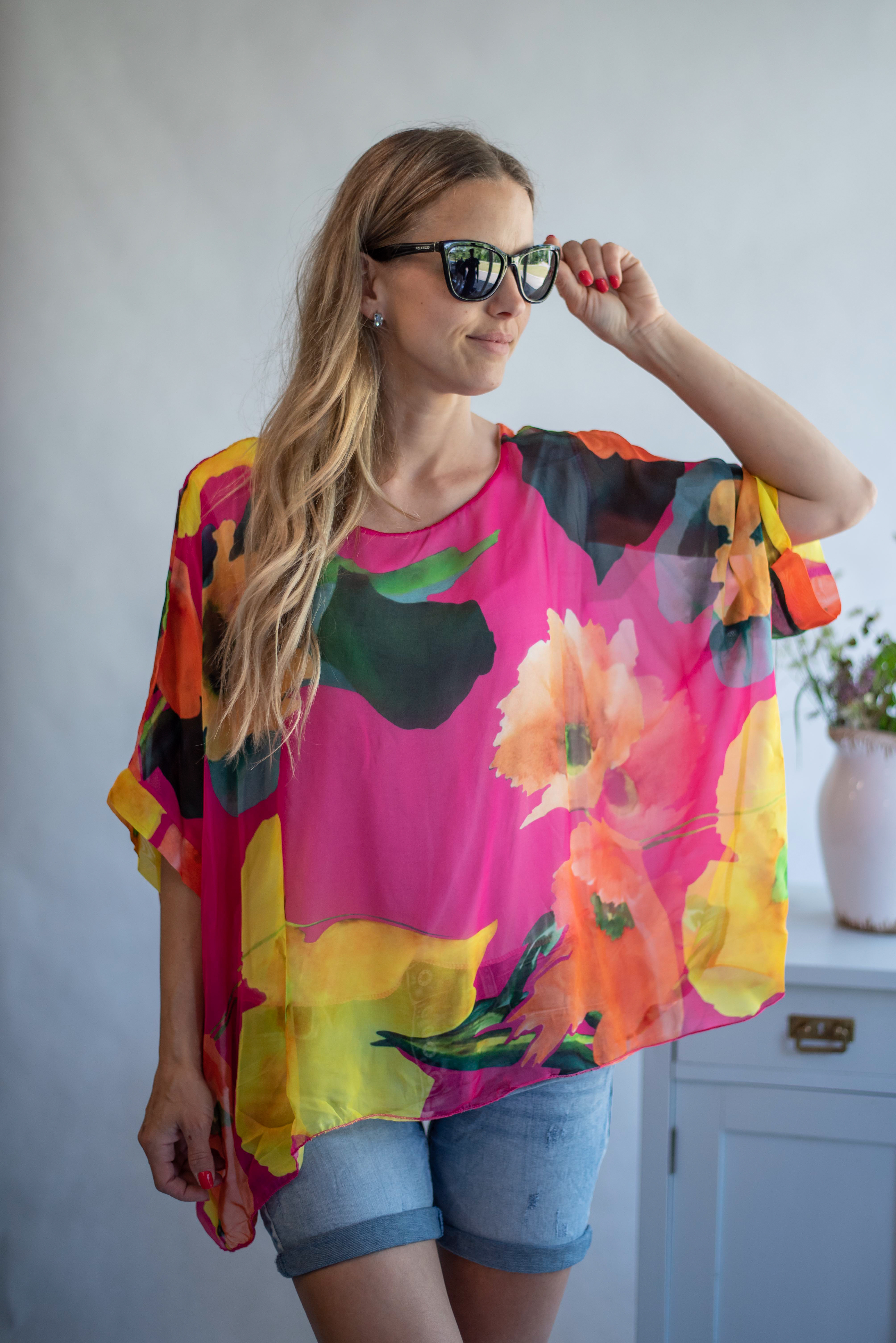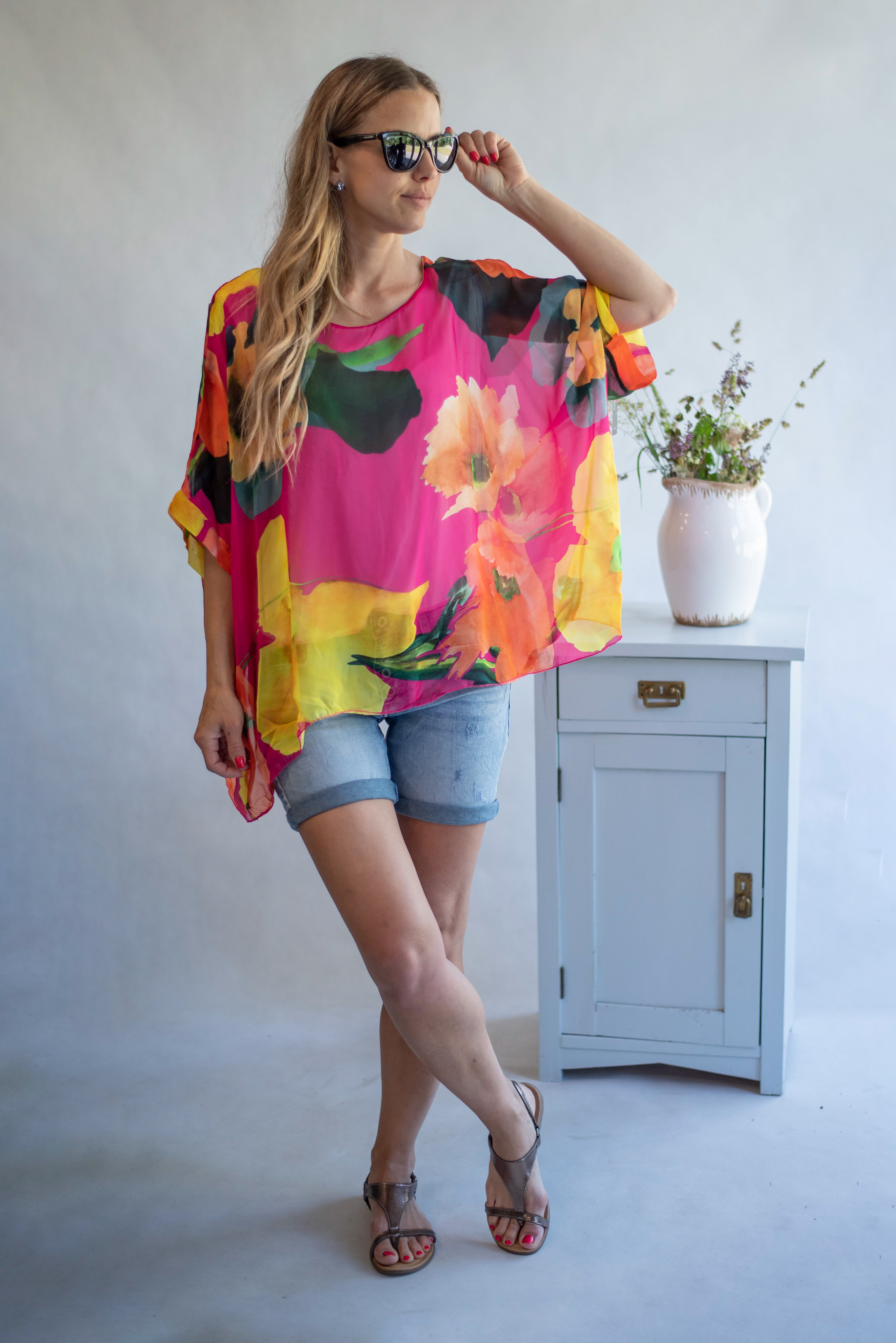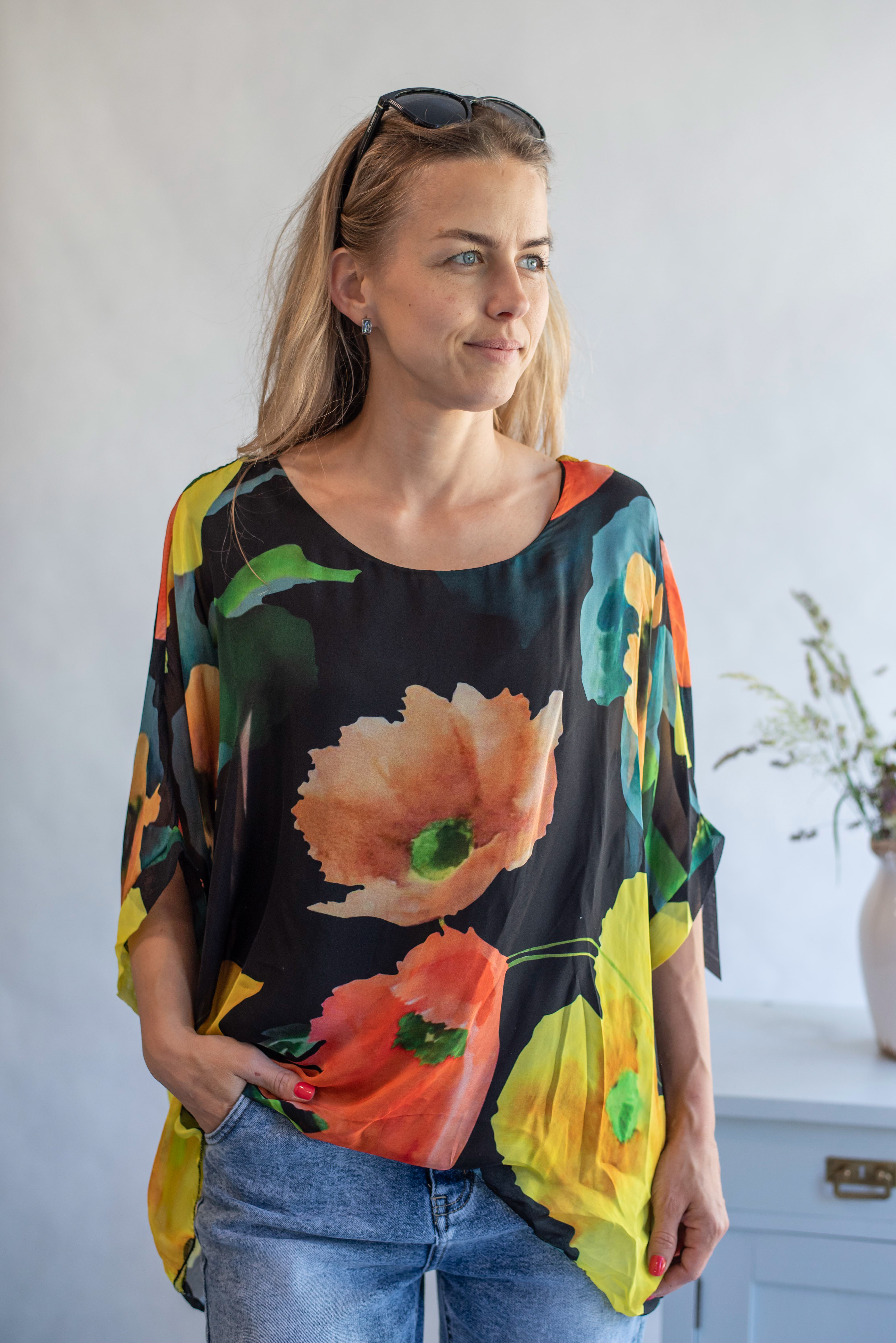 Elegantní letní hedvábná halenka, volný pohodlný střih