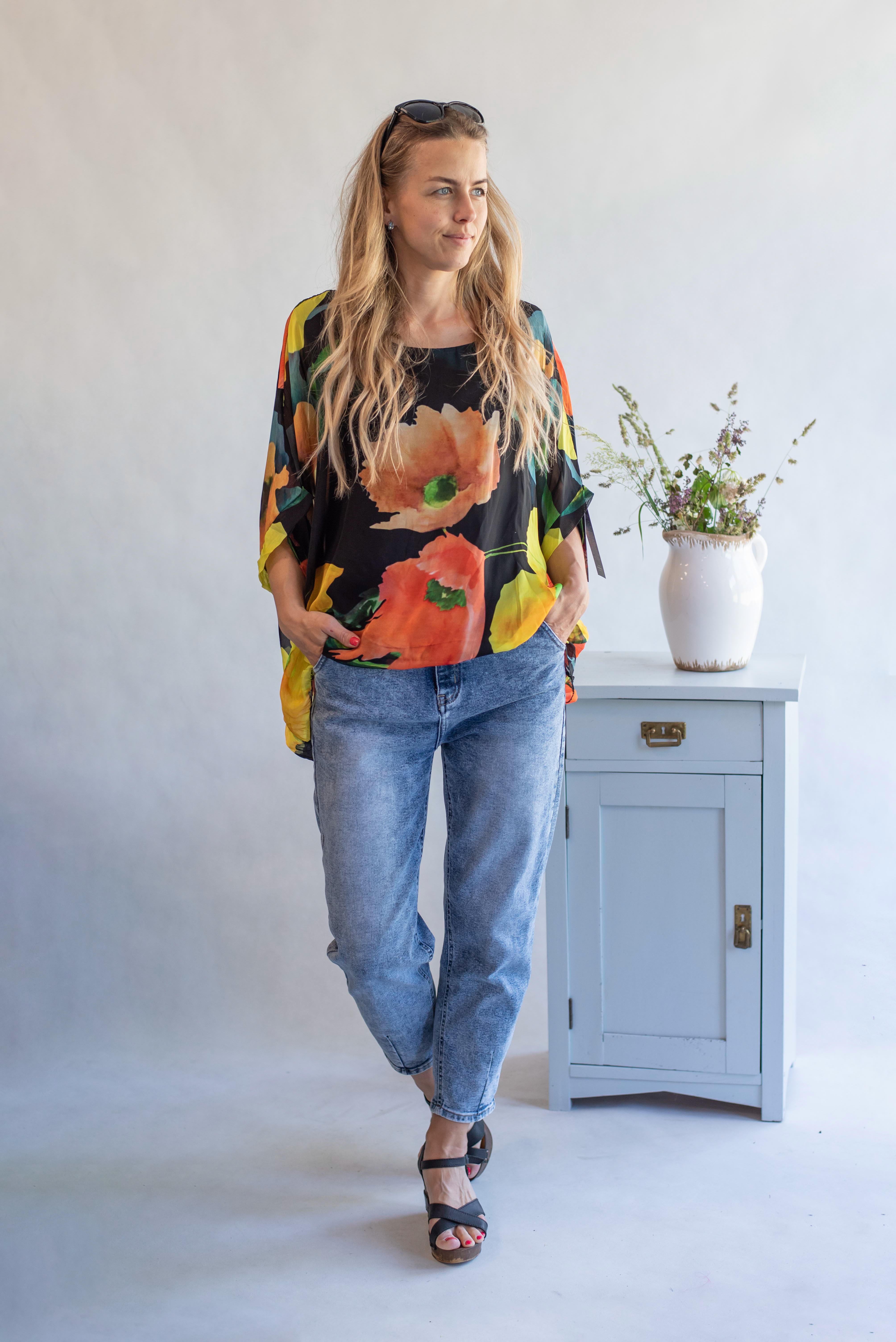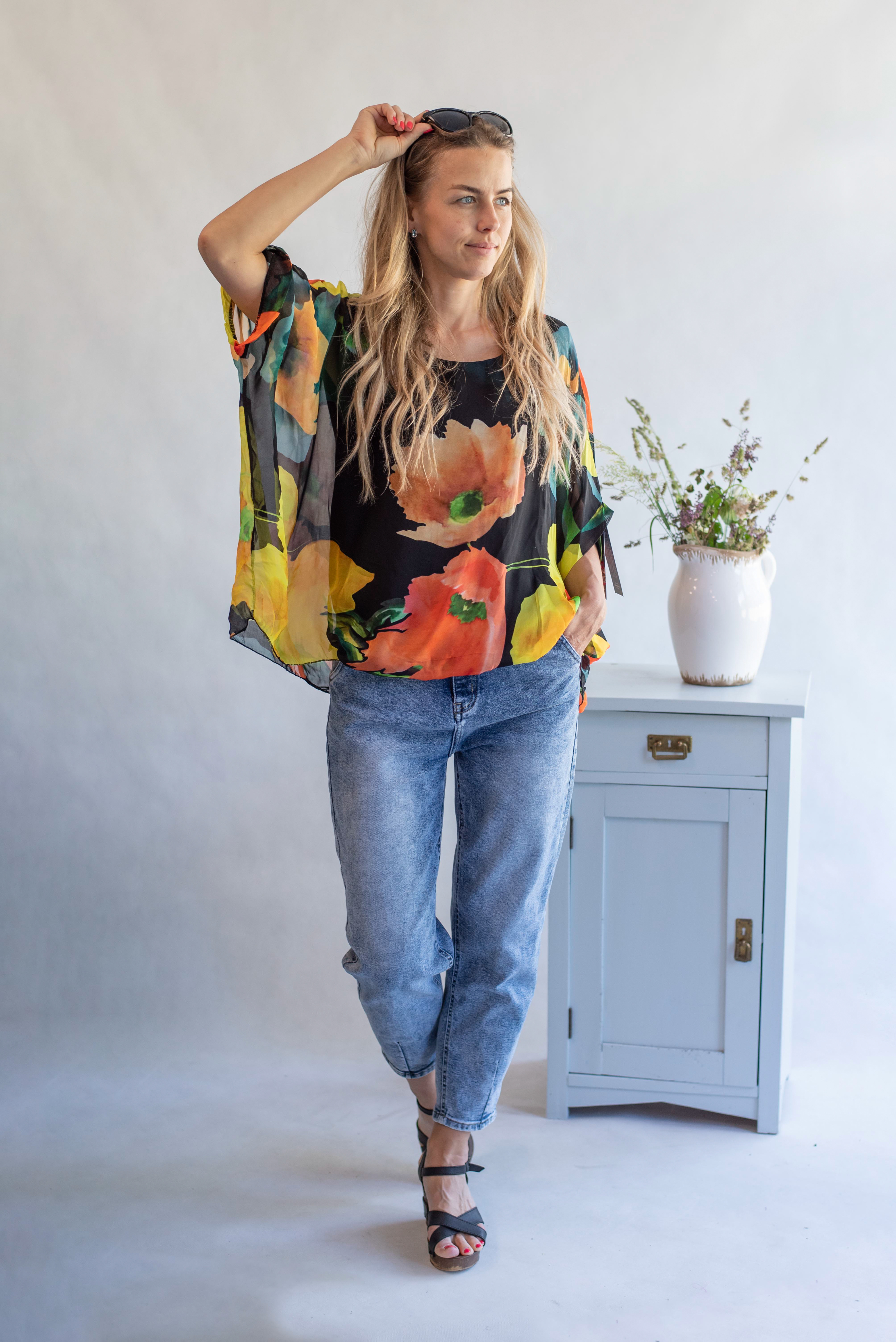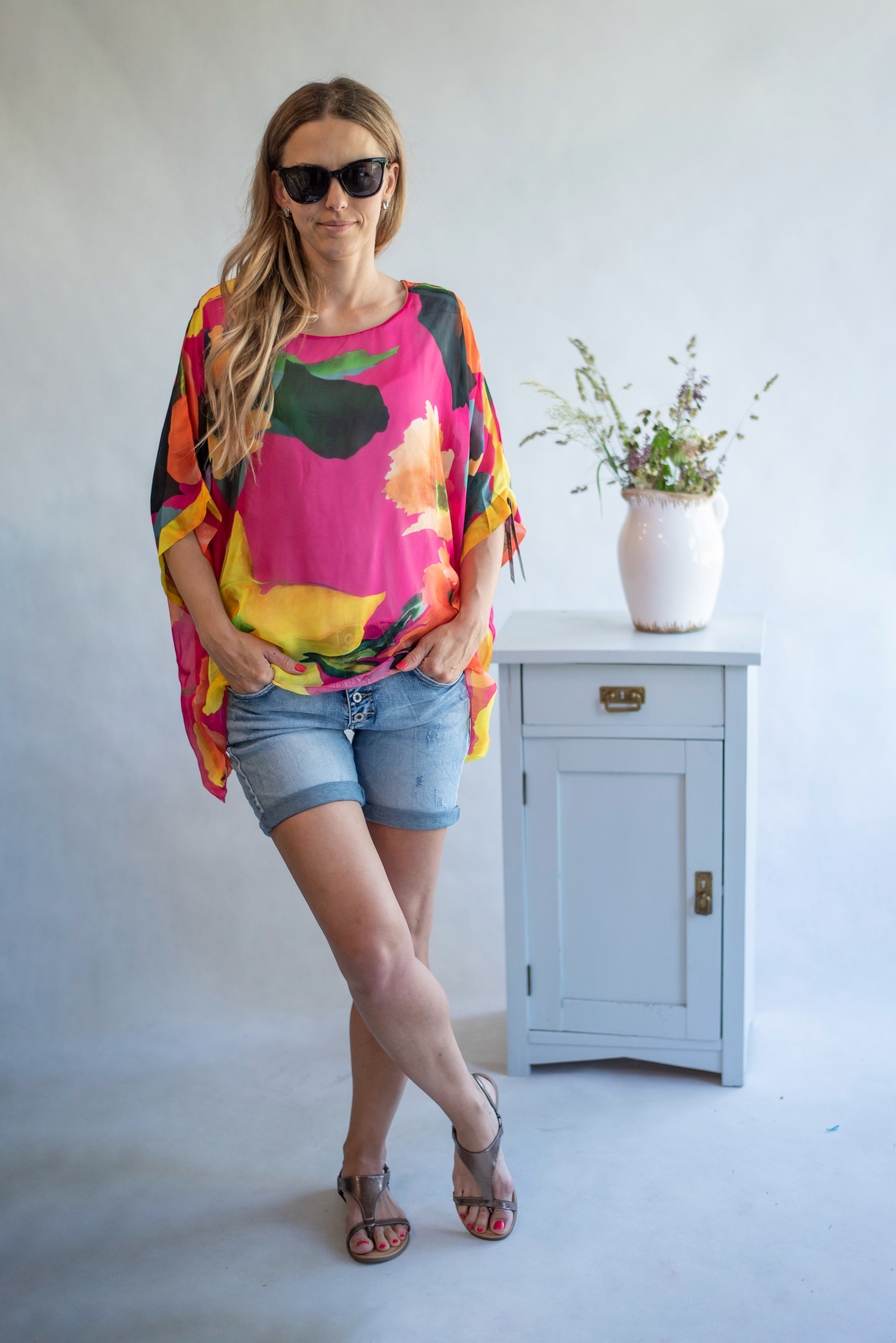 Elegantní letní hedvábná halenka, volný pohodlný střih