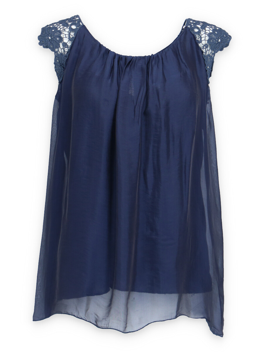 Halenka hedvábí s krajkovými rukávky, řasení přes hrudník s podšívkou, velice oblíbený model.