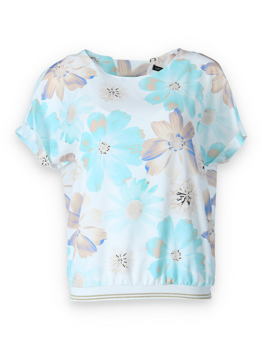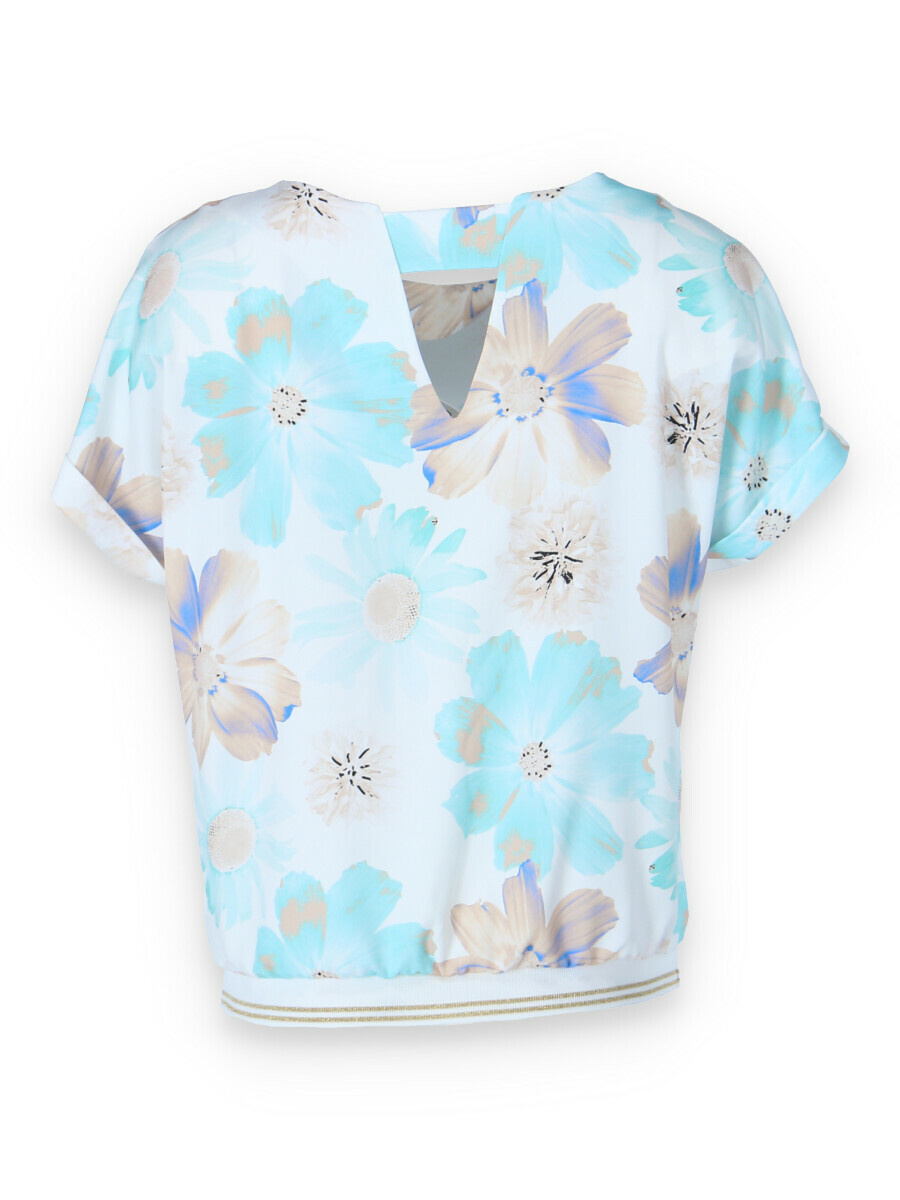 Elegantní a pohodlná halenka s krátkým rukávem z polyesterové tkaniny s ozdobným výřezem na zádech a zakončená ozdobnými manžetami. Módní vzhled a pohodlí v blůze nejvyšší kvality.