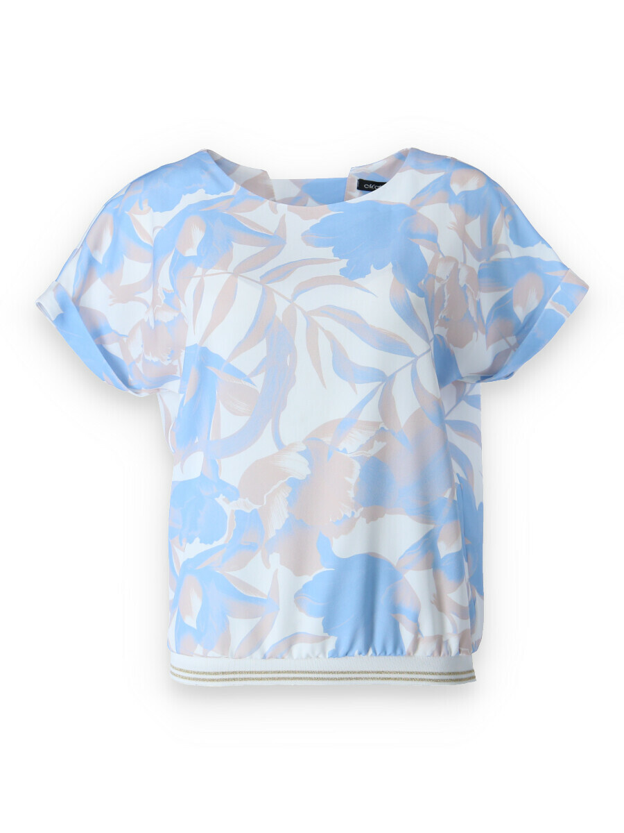 Elegantní a pohodlná halenka s krátkým rukávem z polyesterové tkaniny s ozdobným výřezem na zádech a zakončená ozdobnými manžetami. Módní vzhled a pohodlí v blůze nejvyšší kvality.
