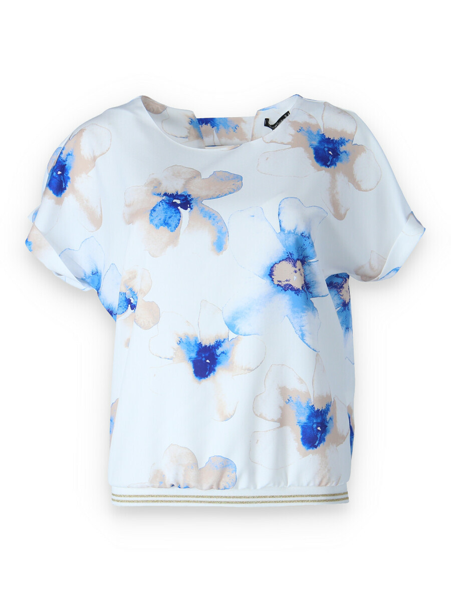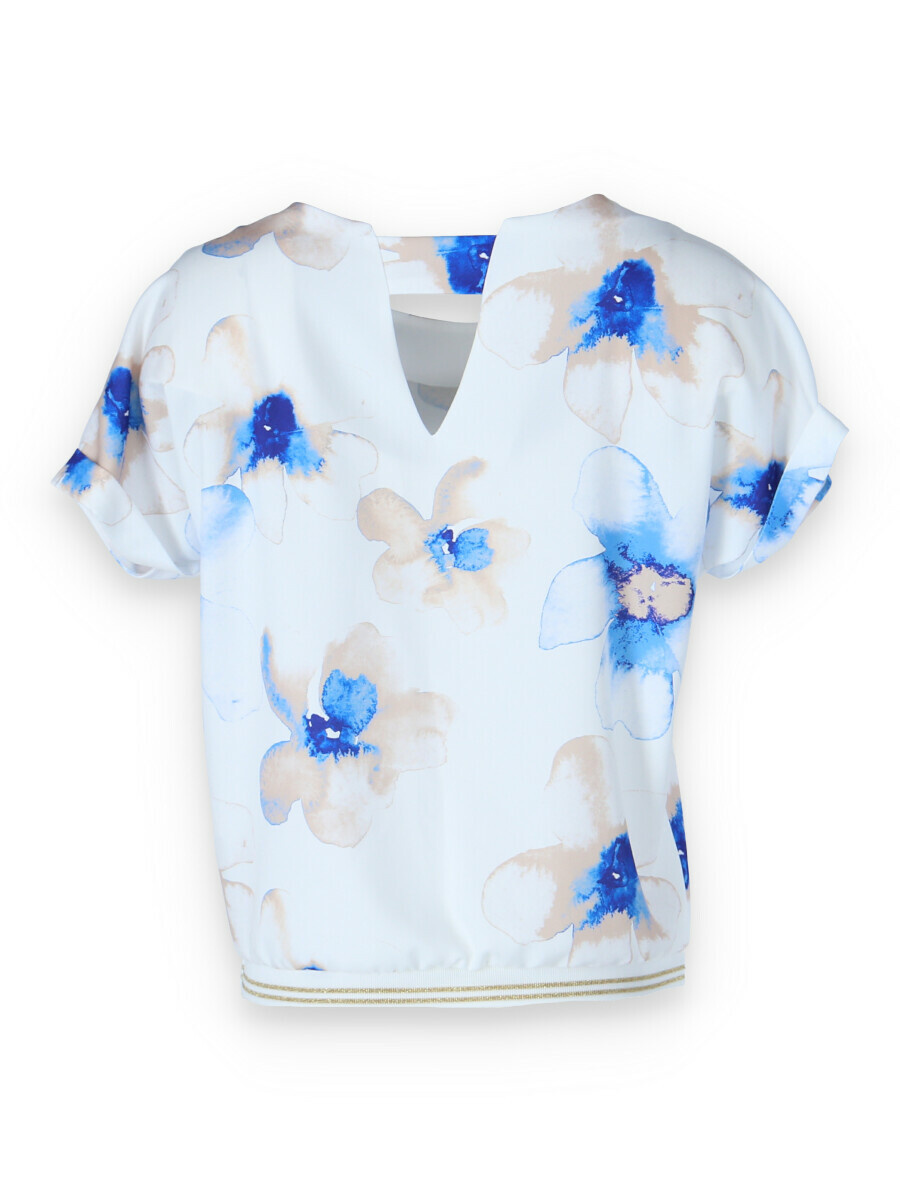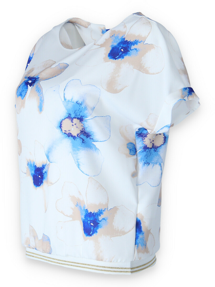 Elegantní a pohodlná halenka s krátkým rukávem z polyesterové tkaniny s ozdobným výřezem na zádech a zakončená ozdobnými manžetami. Módní vzhled a pohodlí v blůze nejvyšší kvality.