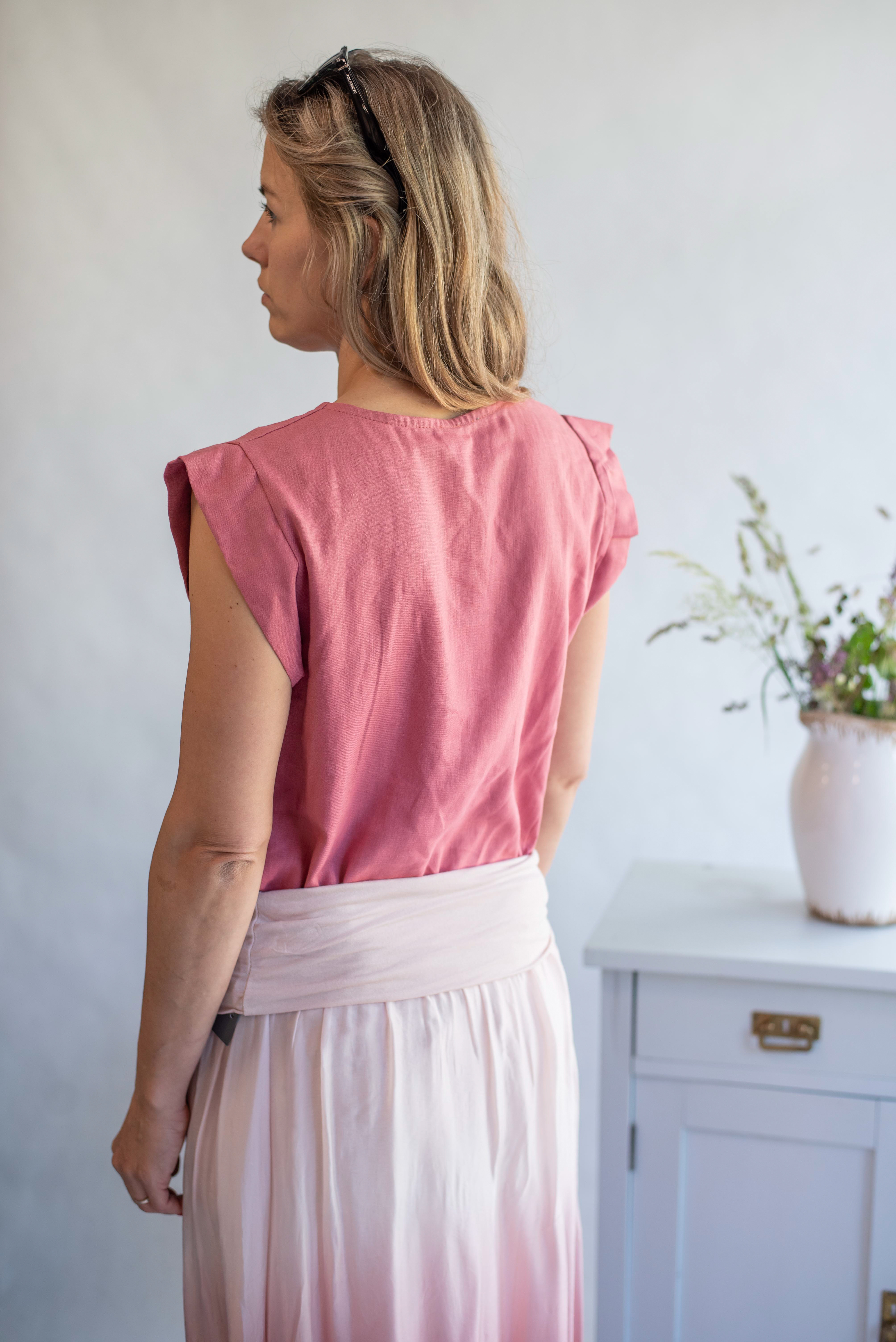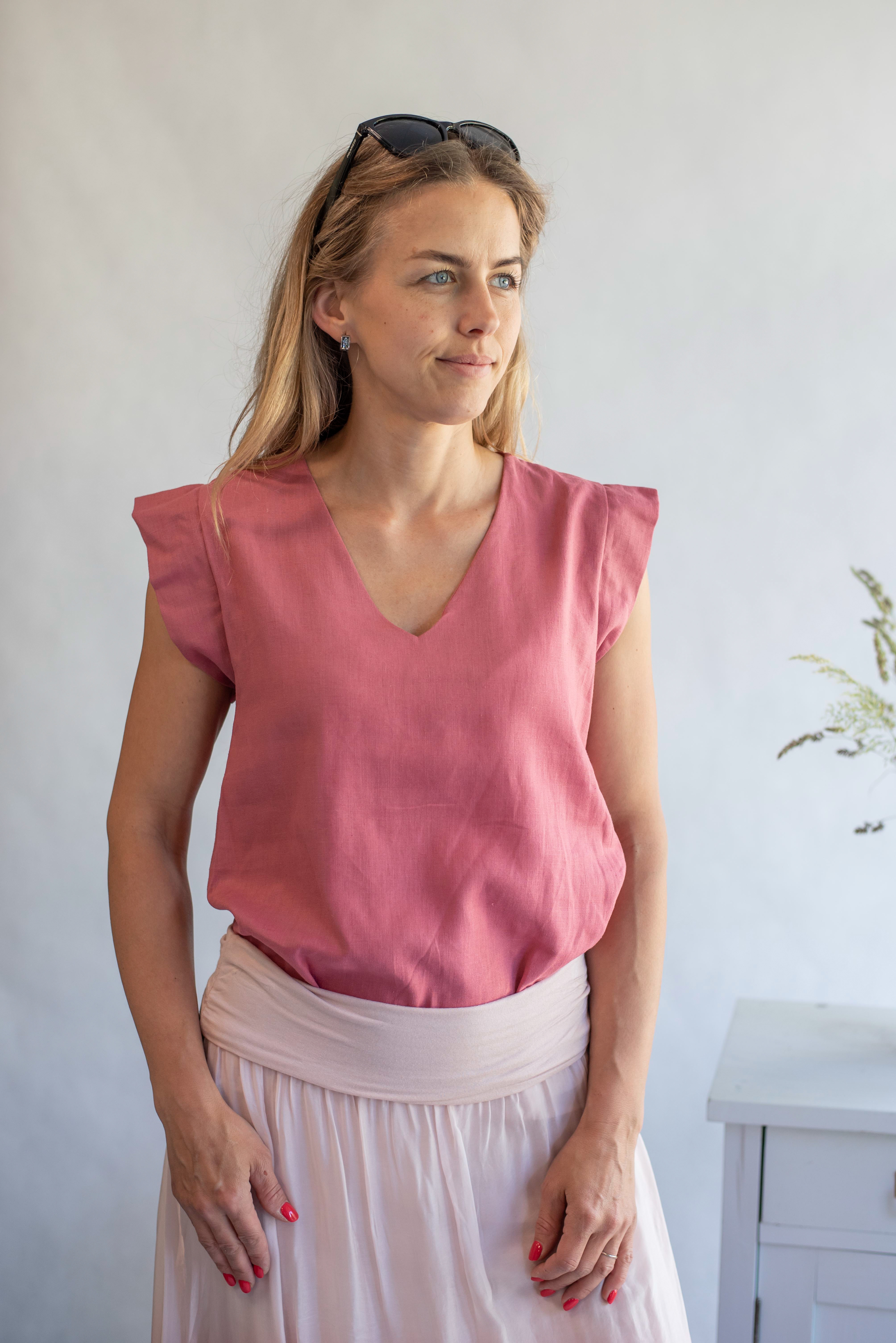 Módní halenka s křidélkovým rukávem, výstřih do "V" knoflíky na zádech