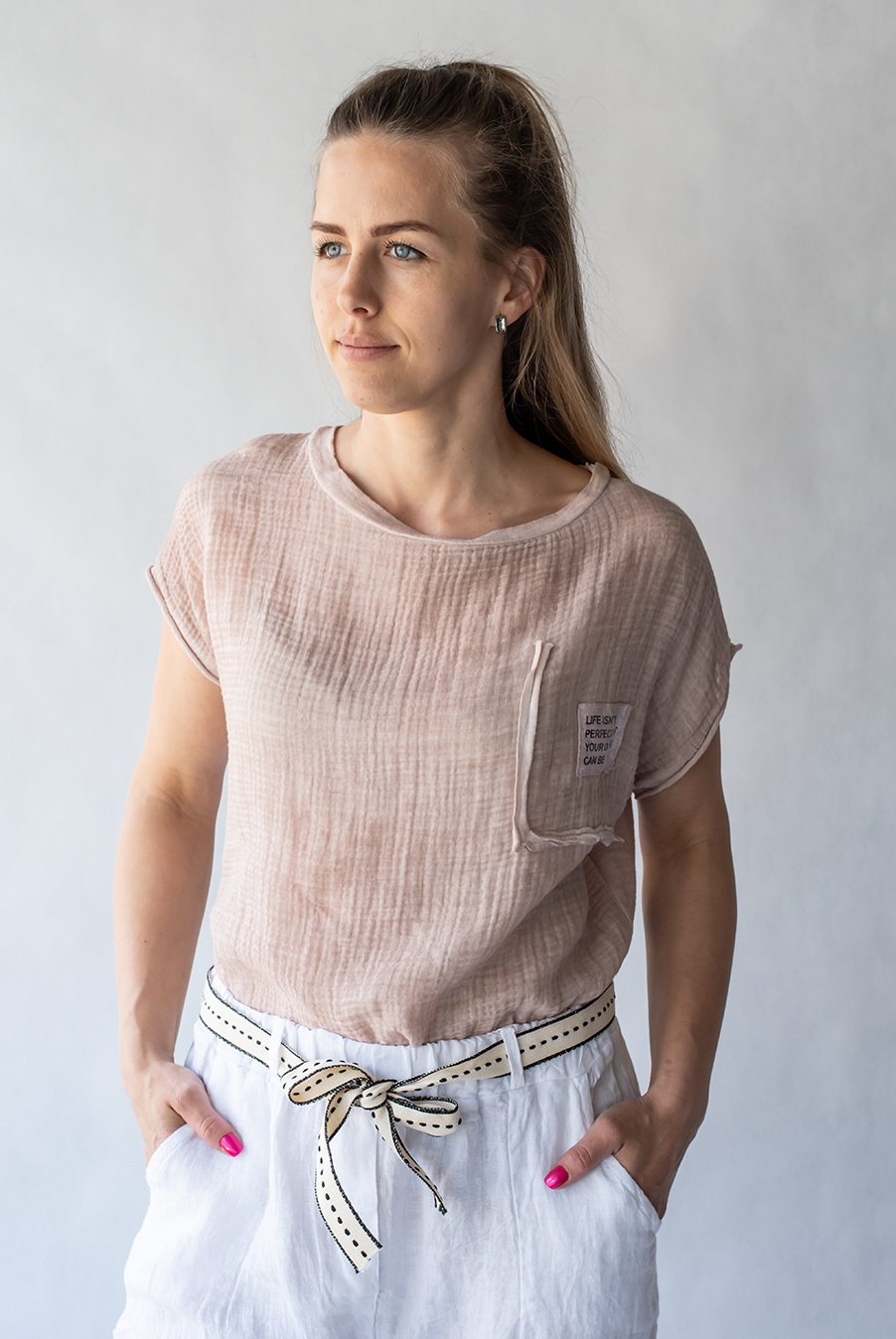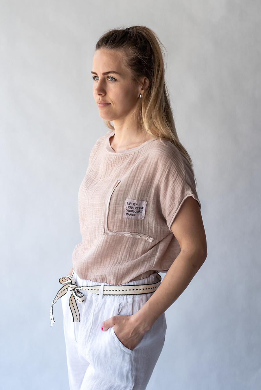 Dámské bavlněné triko s trendy potiskem a aplikací