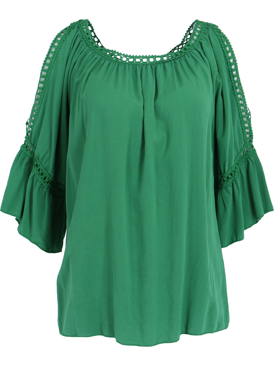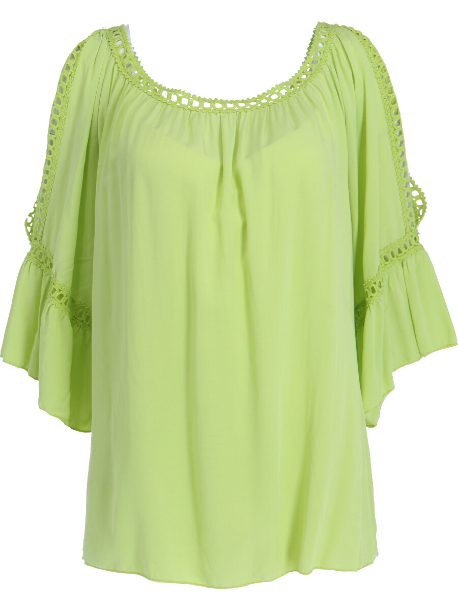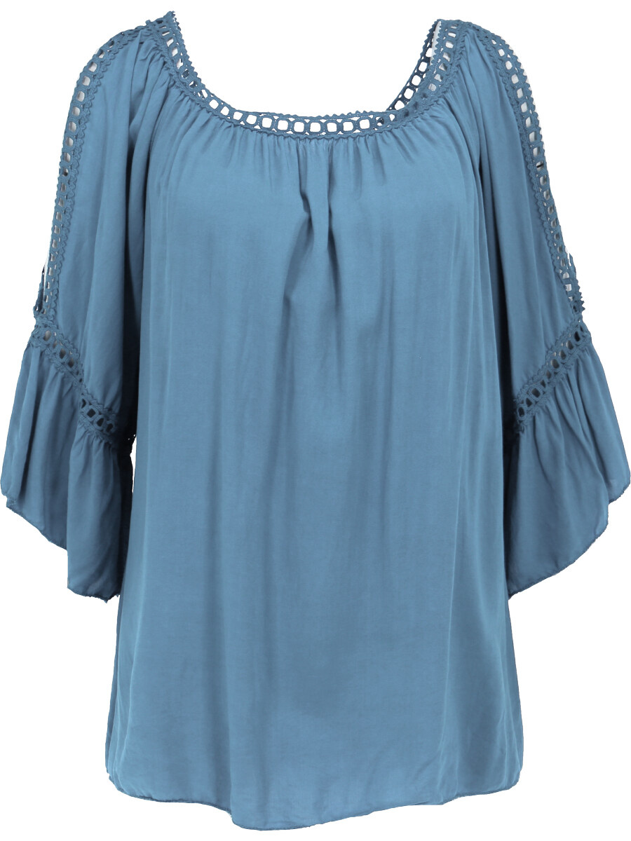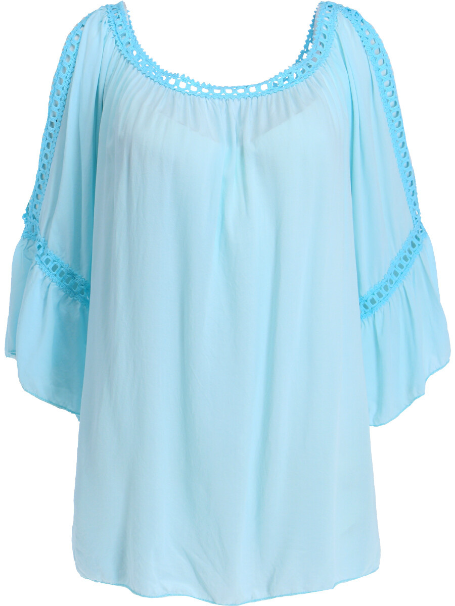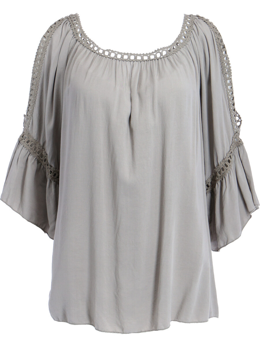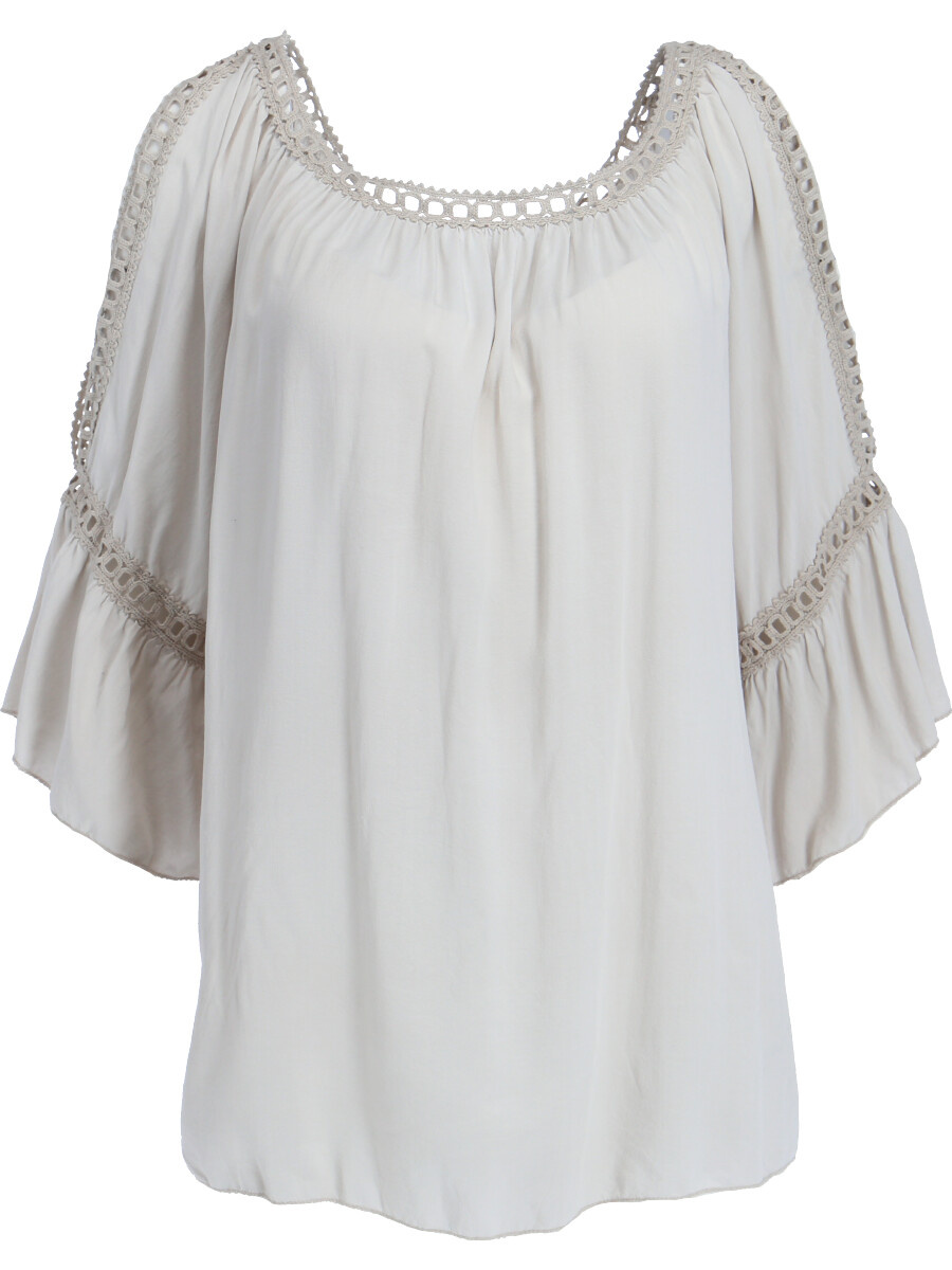 Módní halenka s krátkým rukávem, krajkou a prostřihem nad rukávem.