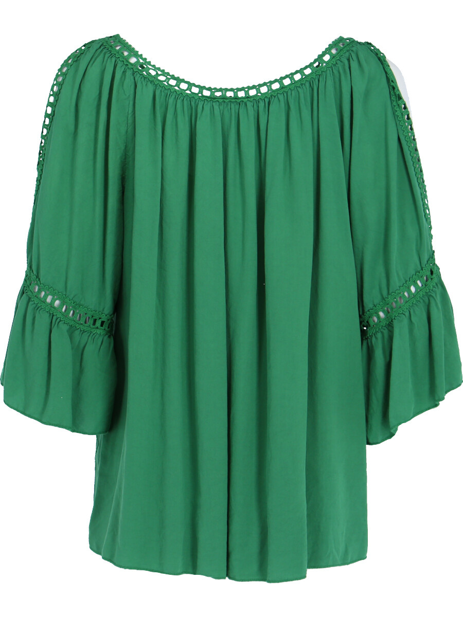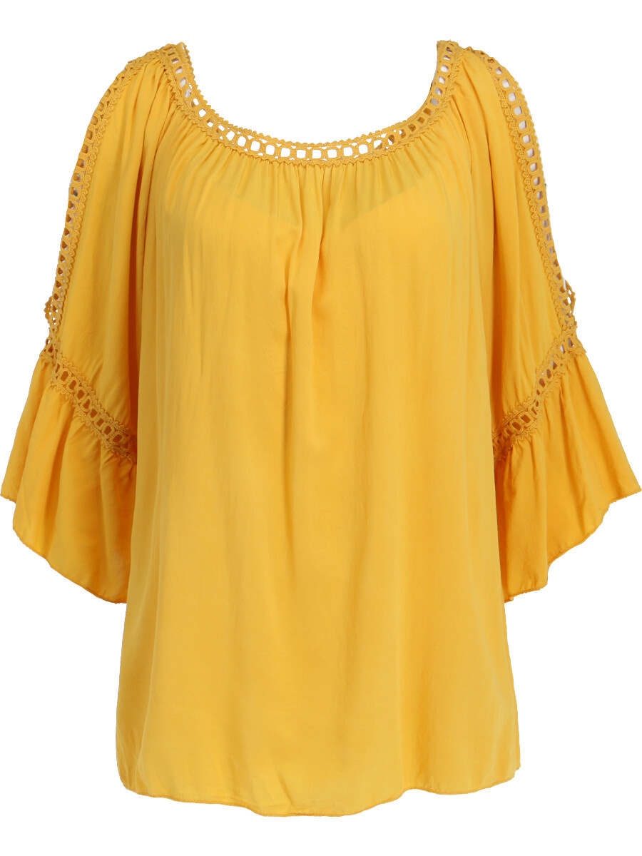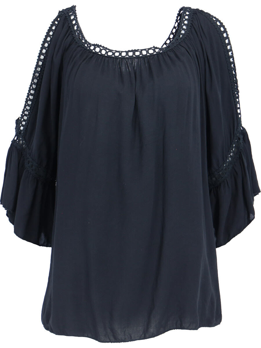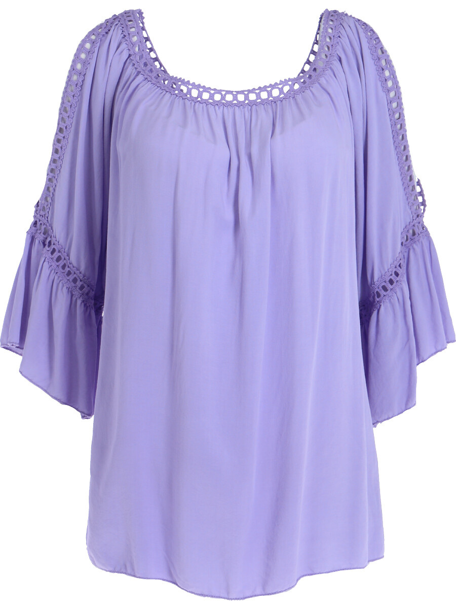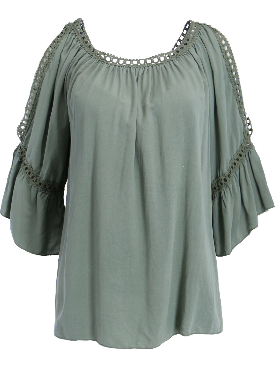 Módní halenka s krátkým rukávem, krajkou a prostřihem nad rukávem.