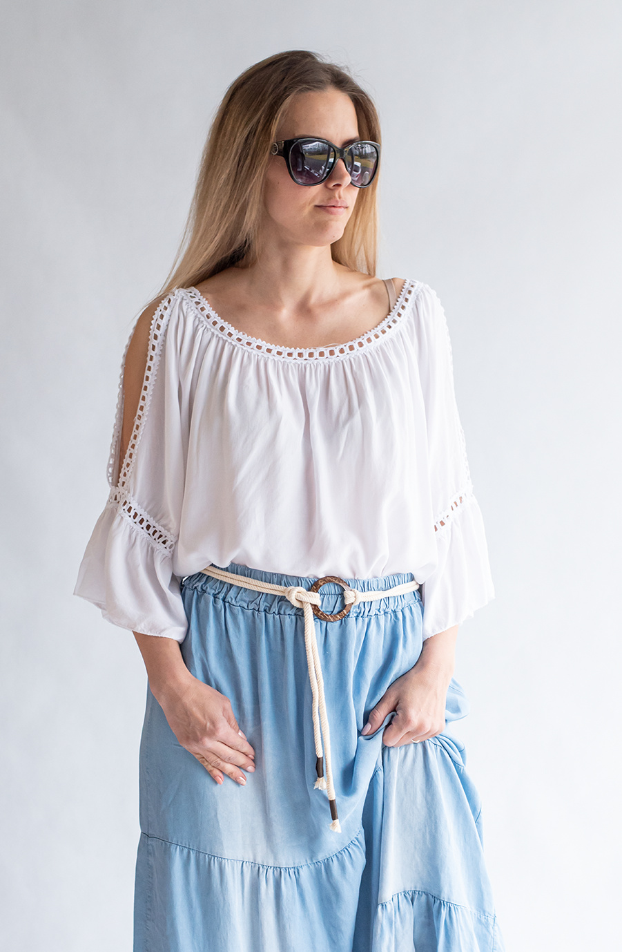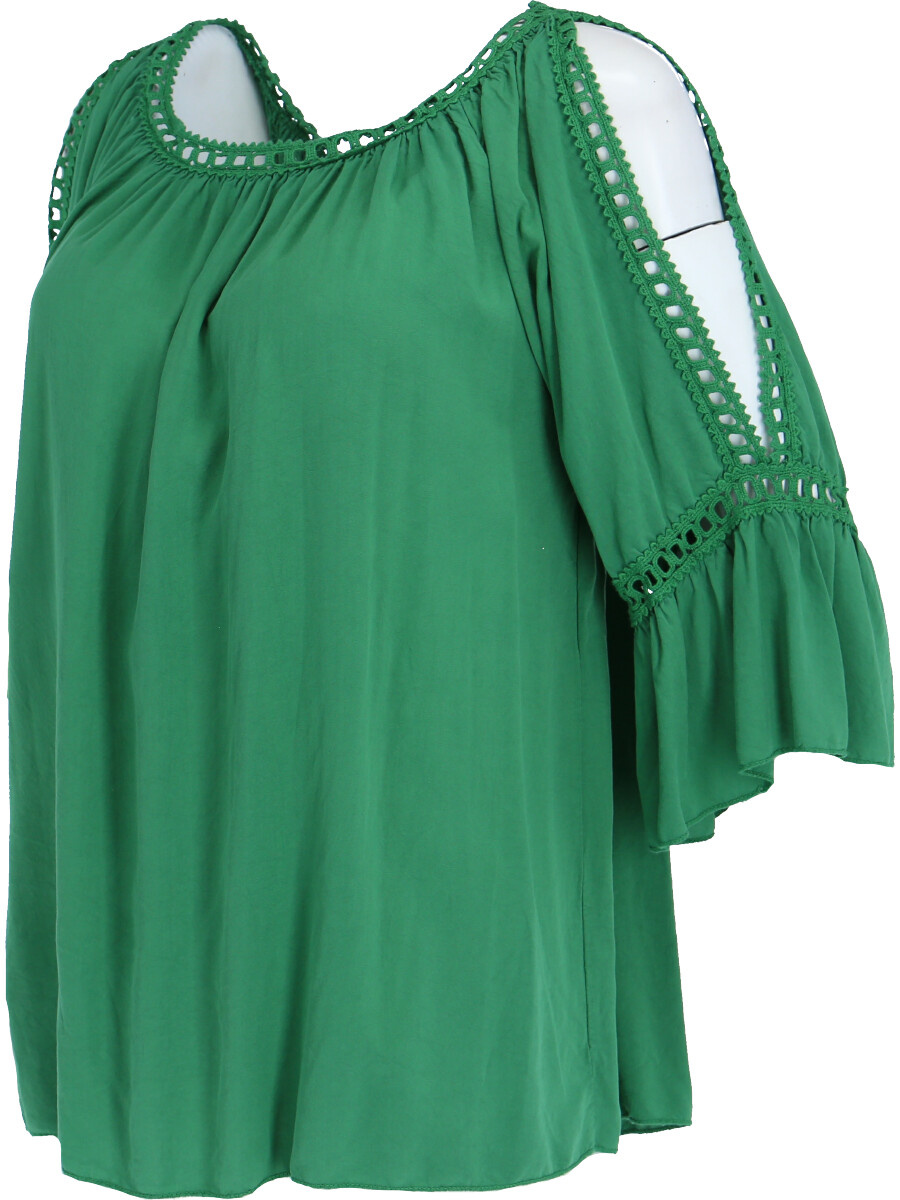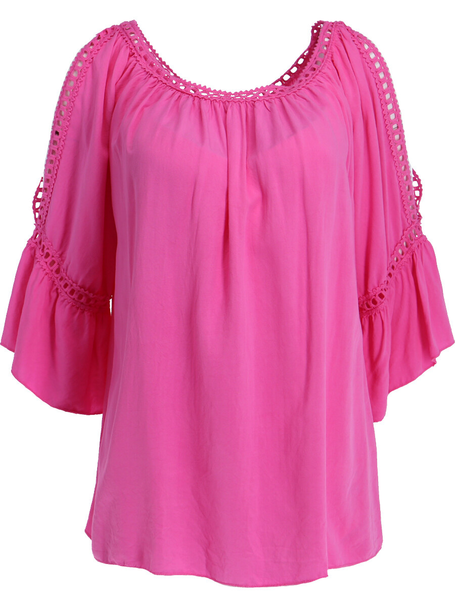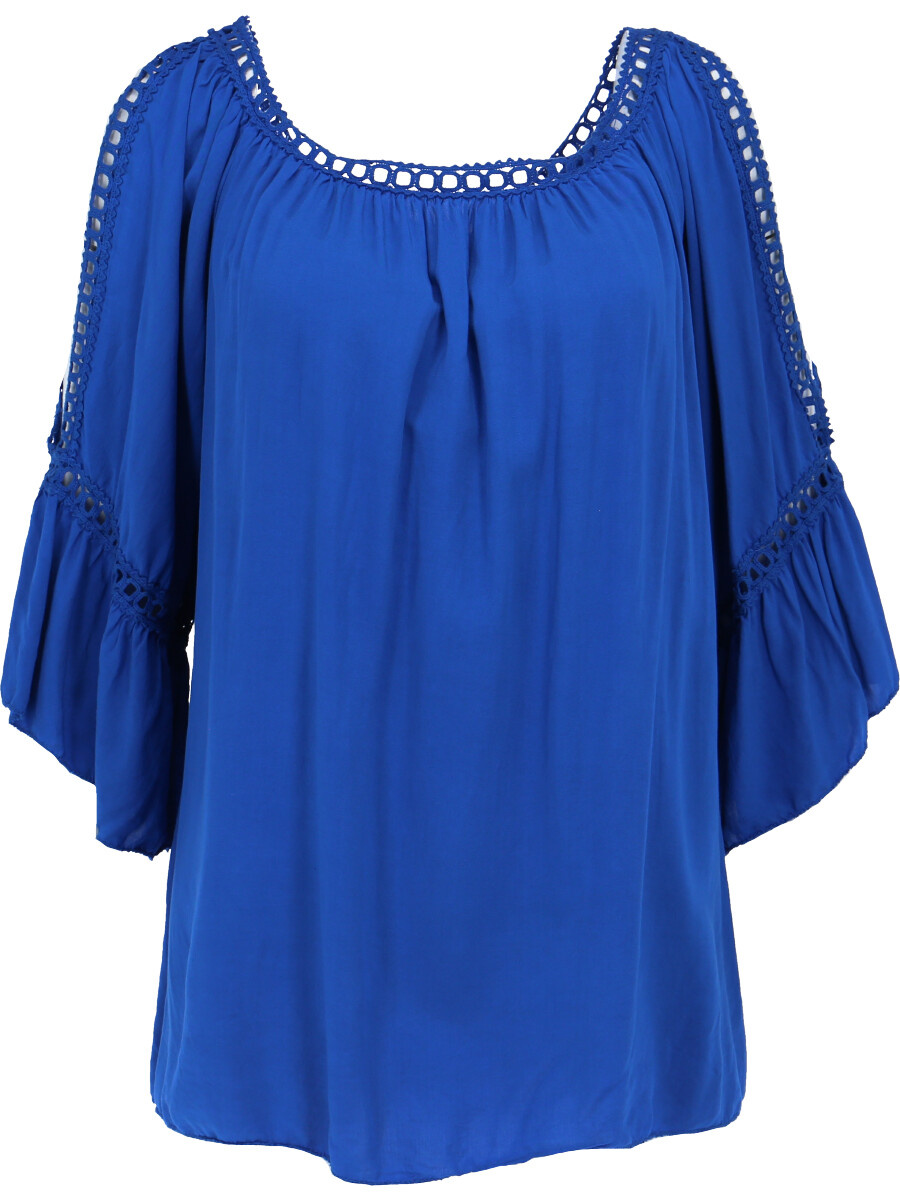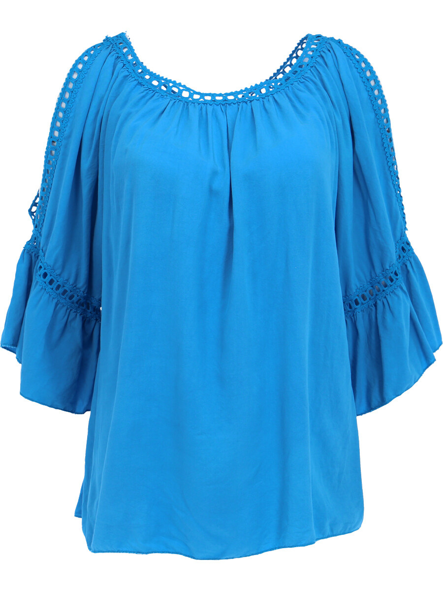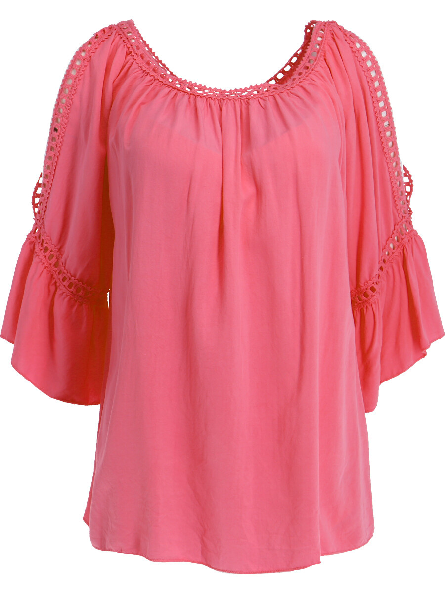Módní halenka s krátkým rukávem, krajkou a prostřihem nad rukávem.