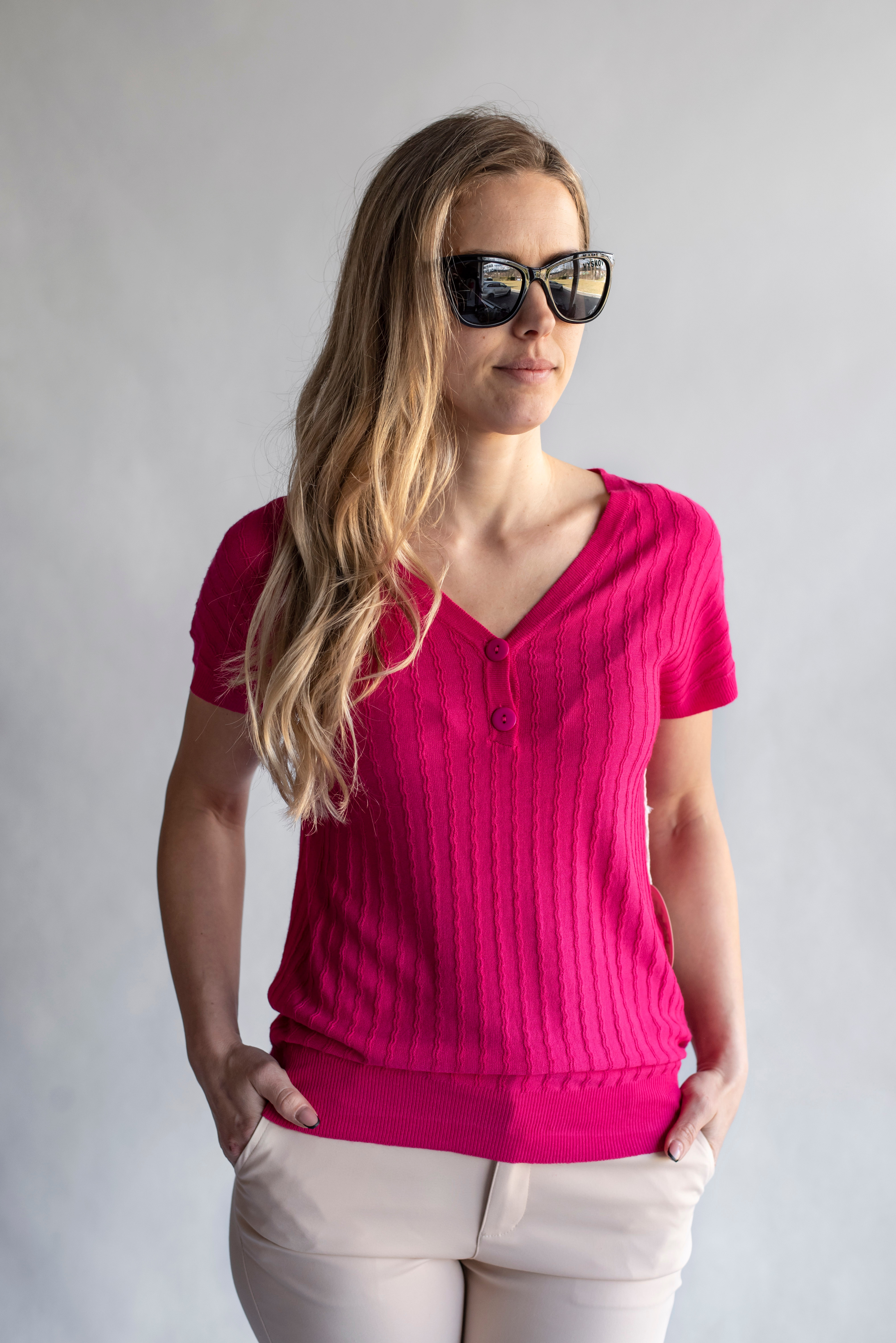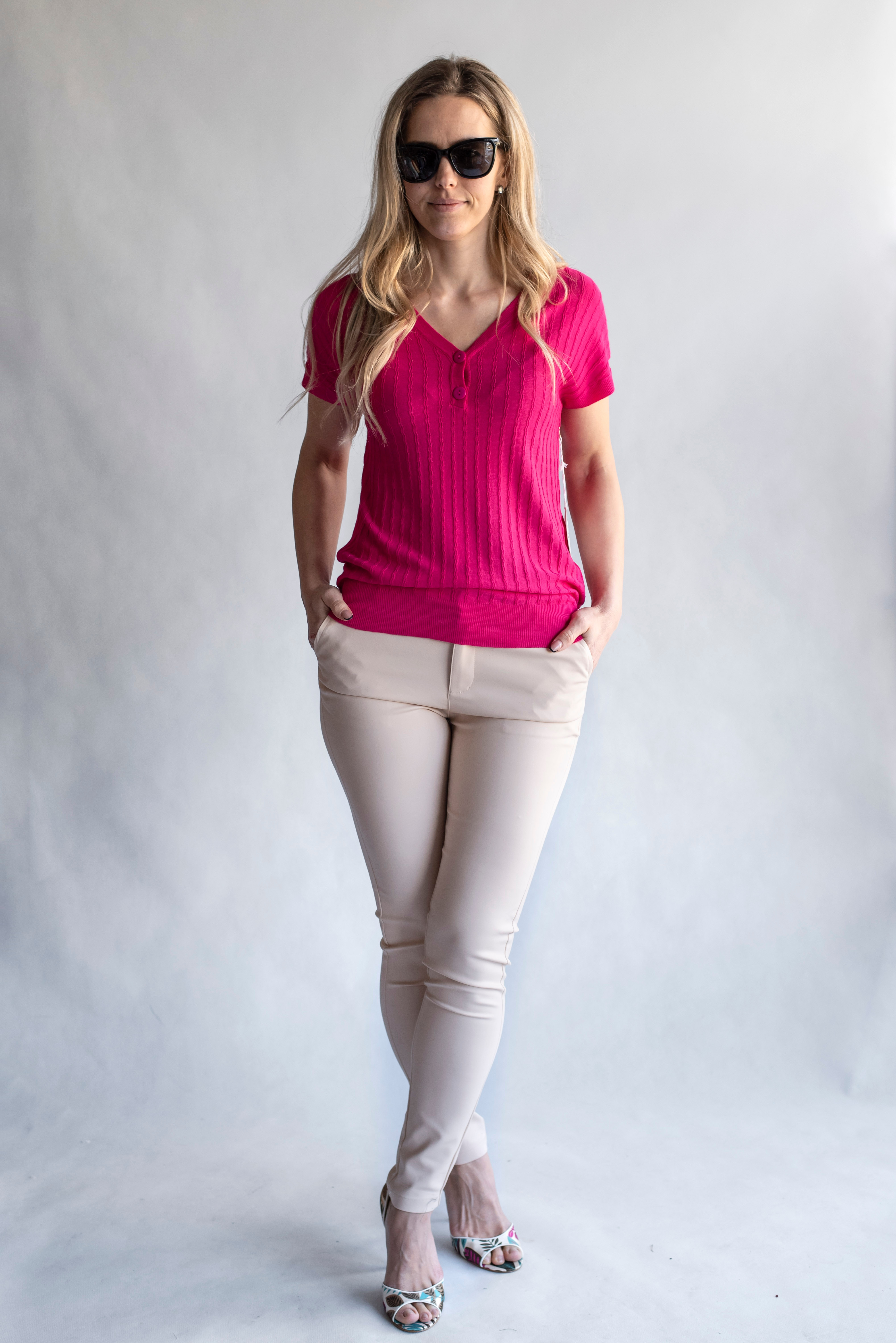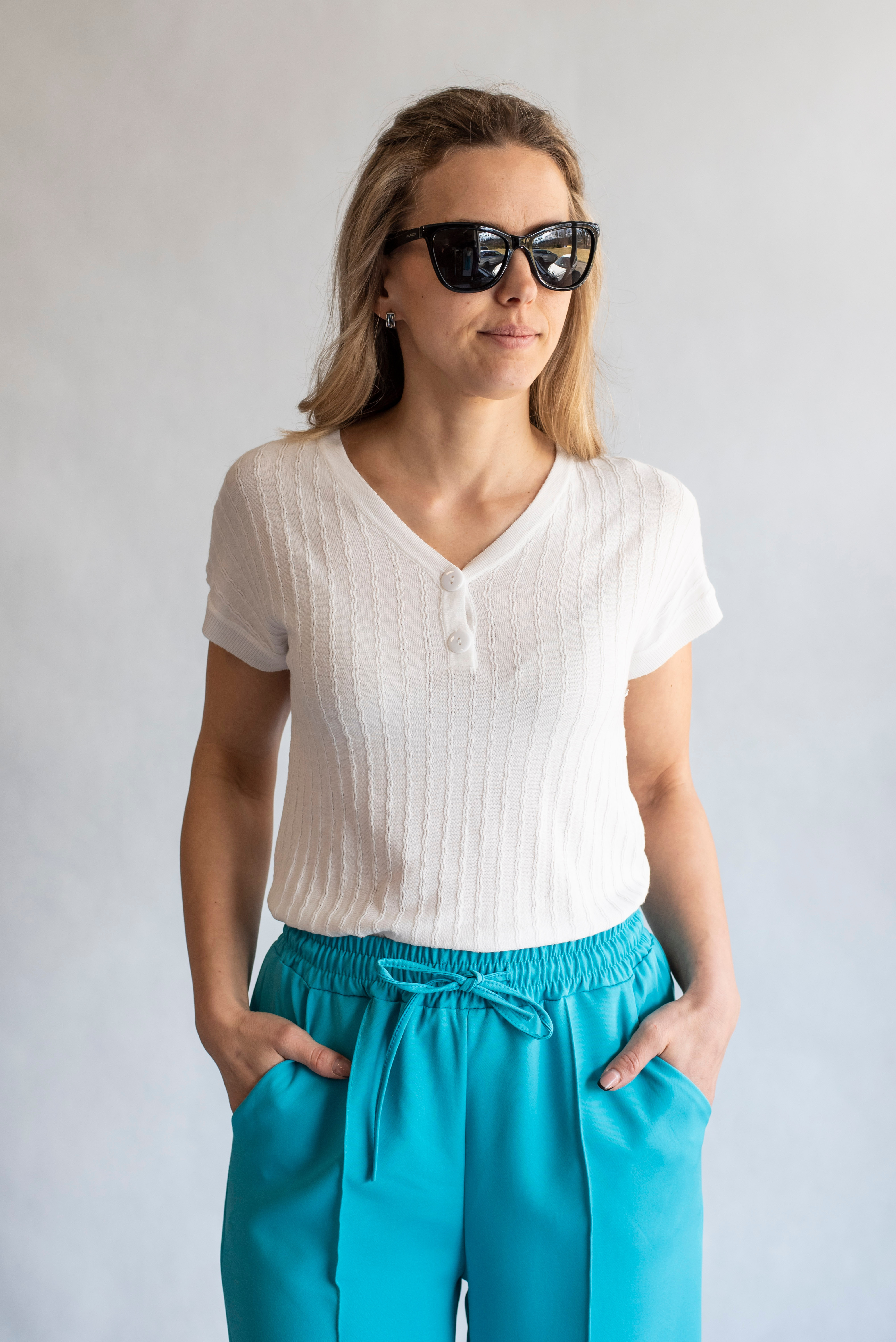 Halenka s výstřihem do V , knoflíčky, krátký rukáv