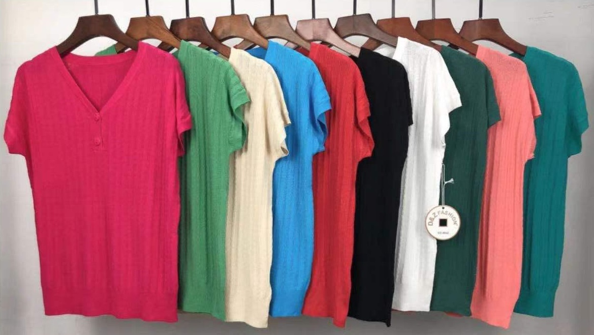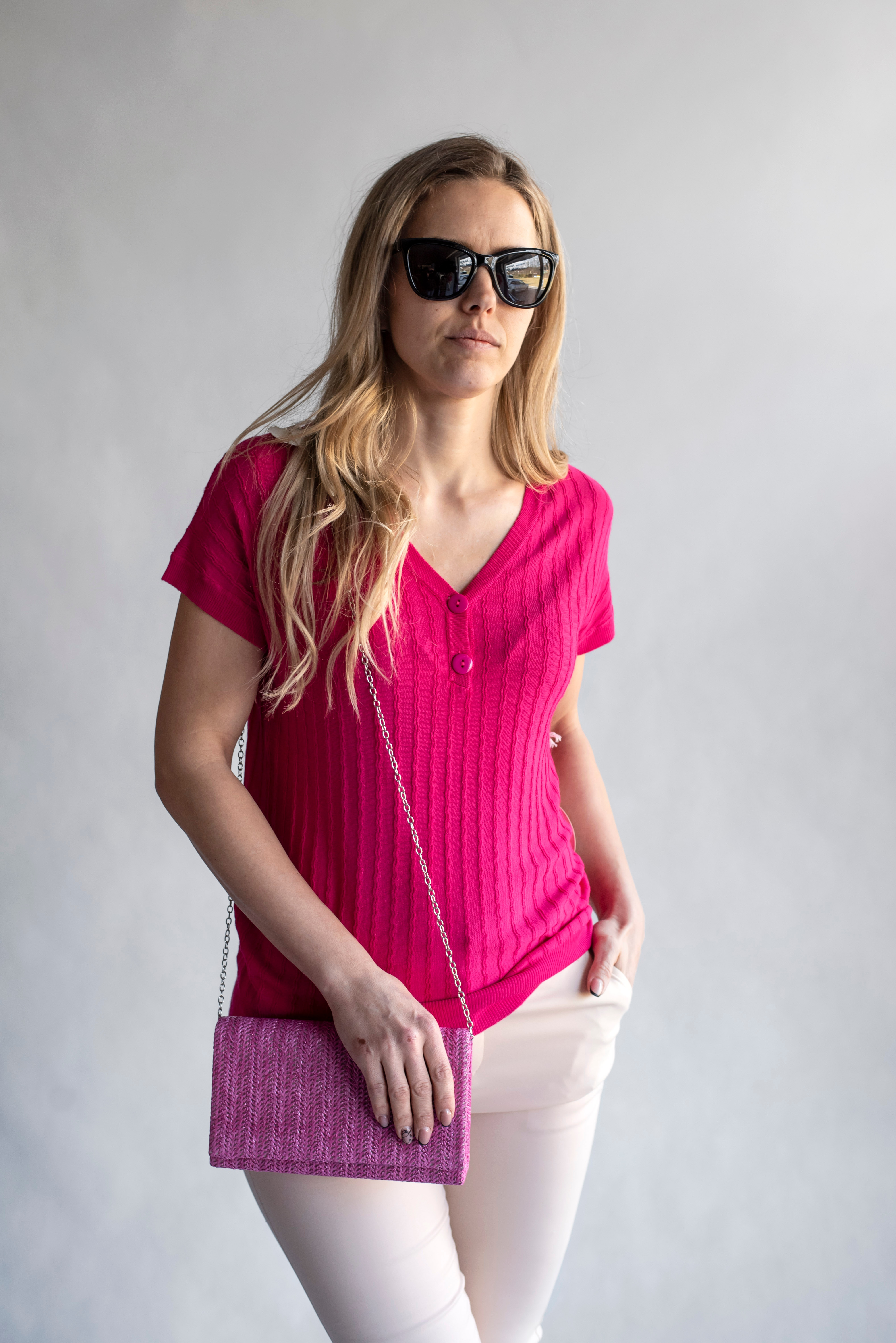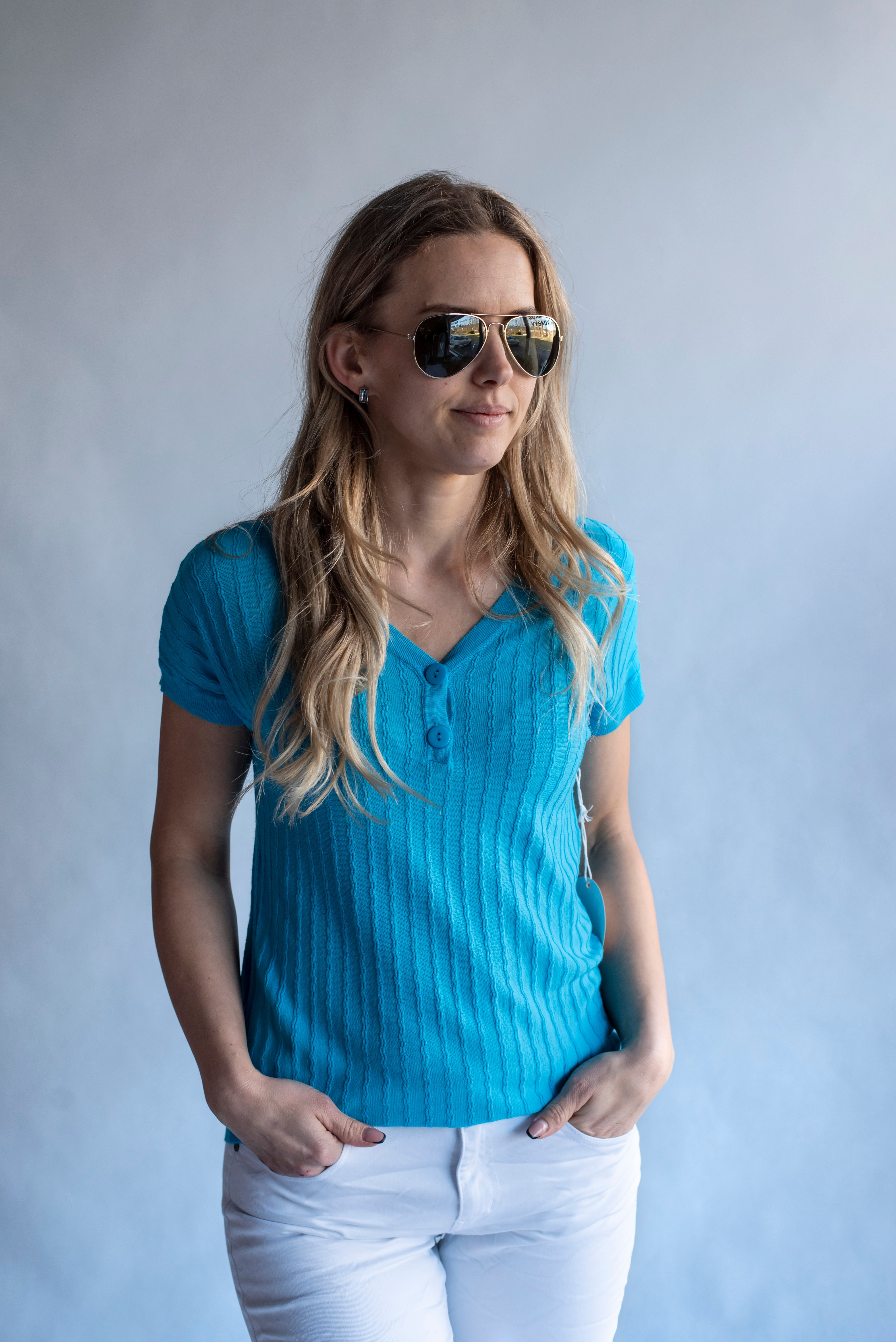 Halenka s výstřihem do V , knoflíčky, krátký rukáv