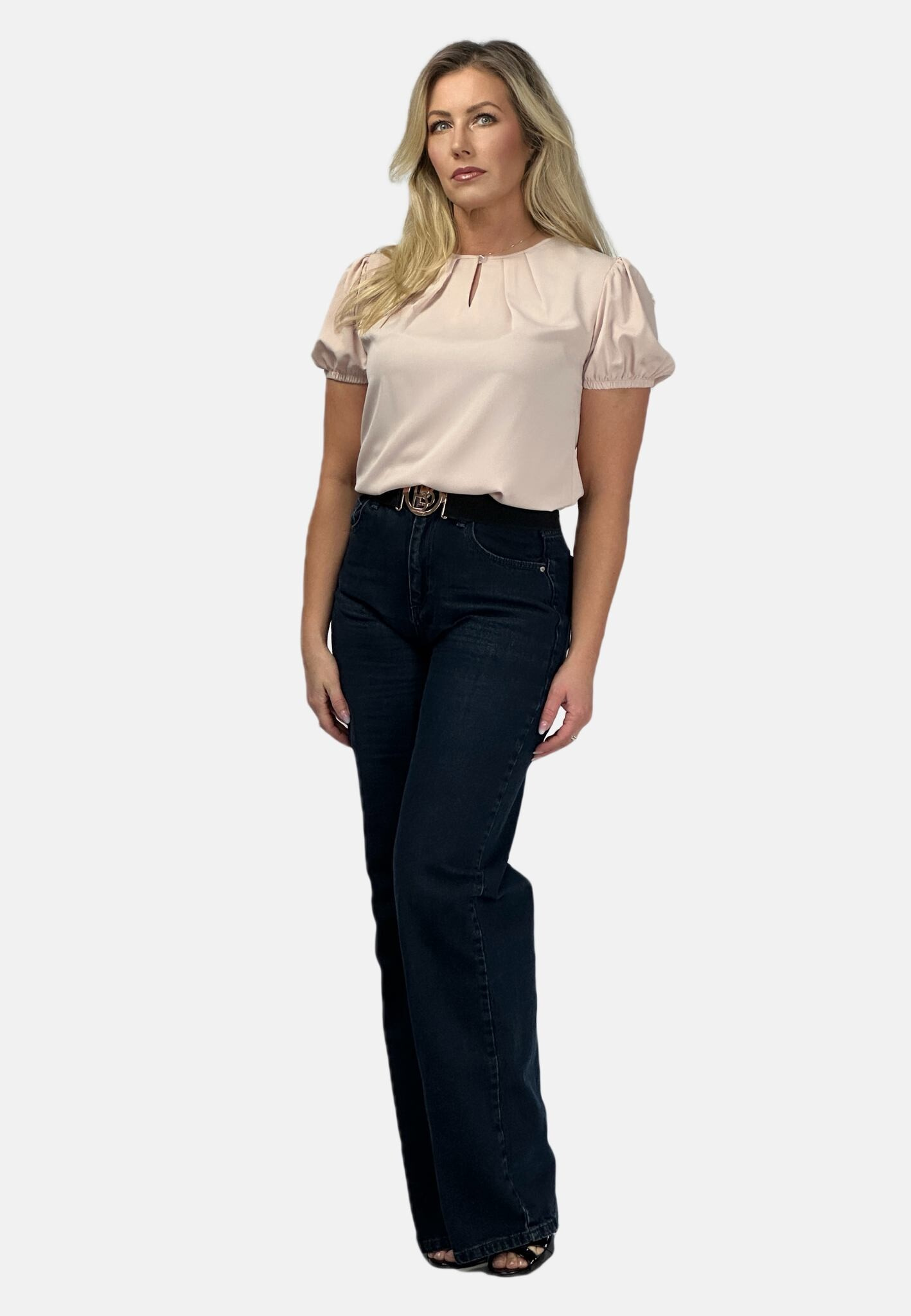 Halenka s krátkým rukávem ozdobný výstřih a ozdobným knoflíkem na zapínání vzadu