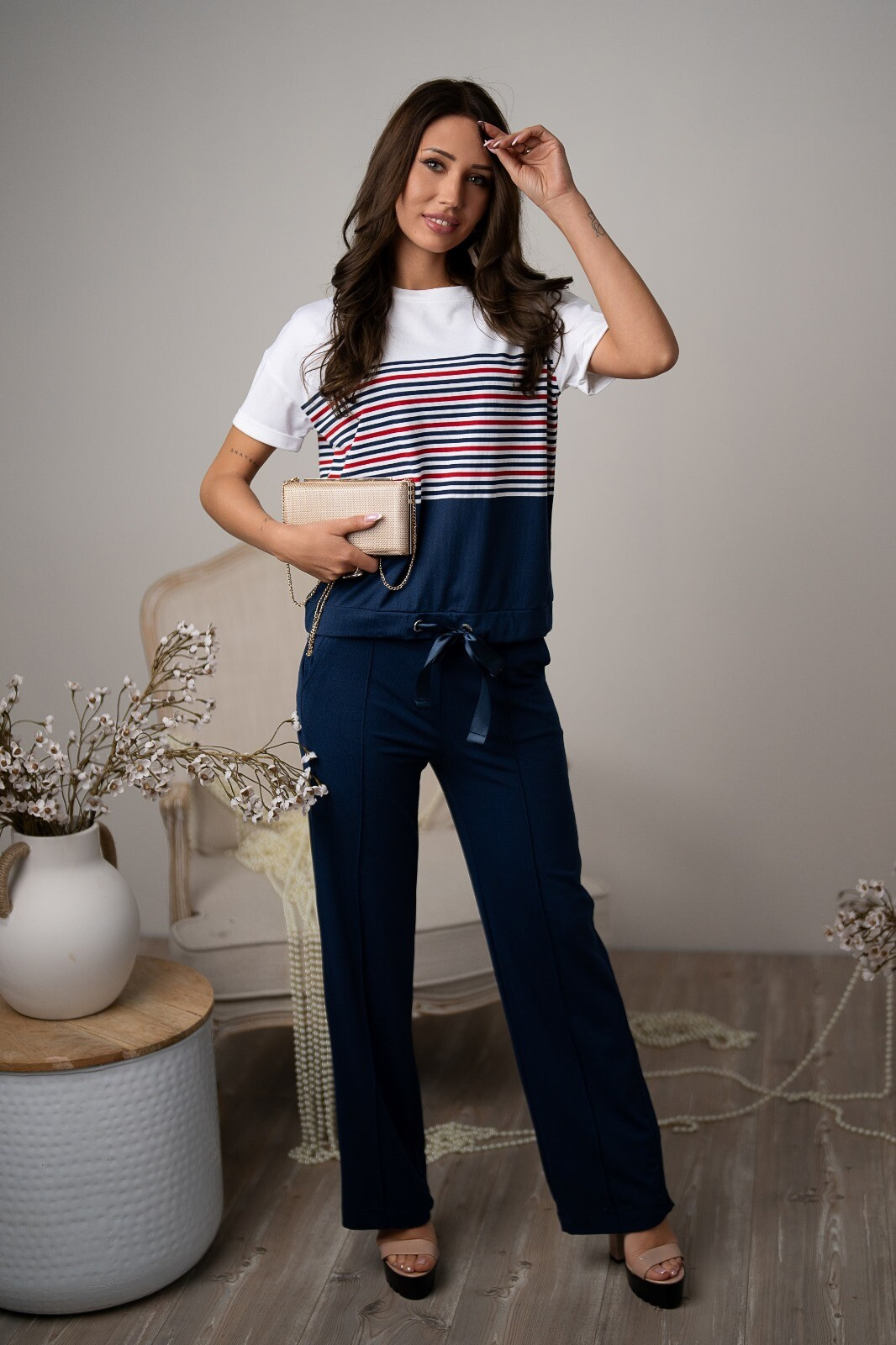 Elegantní a pohodlná halenka s krátkým rukávem z příjemné tkaniny s vázačkou v pase. Módní vzhled a pohodlí v blůze nejvyšší kvality.