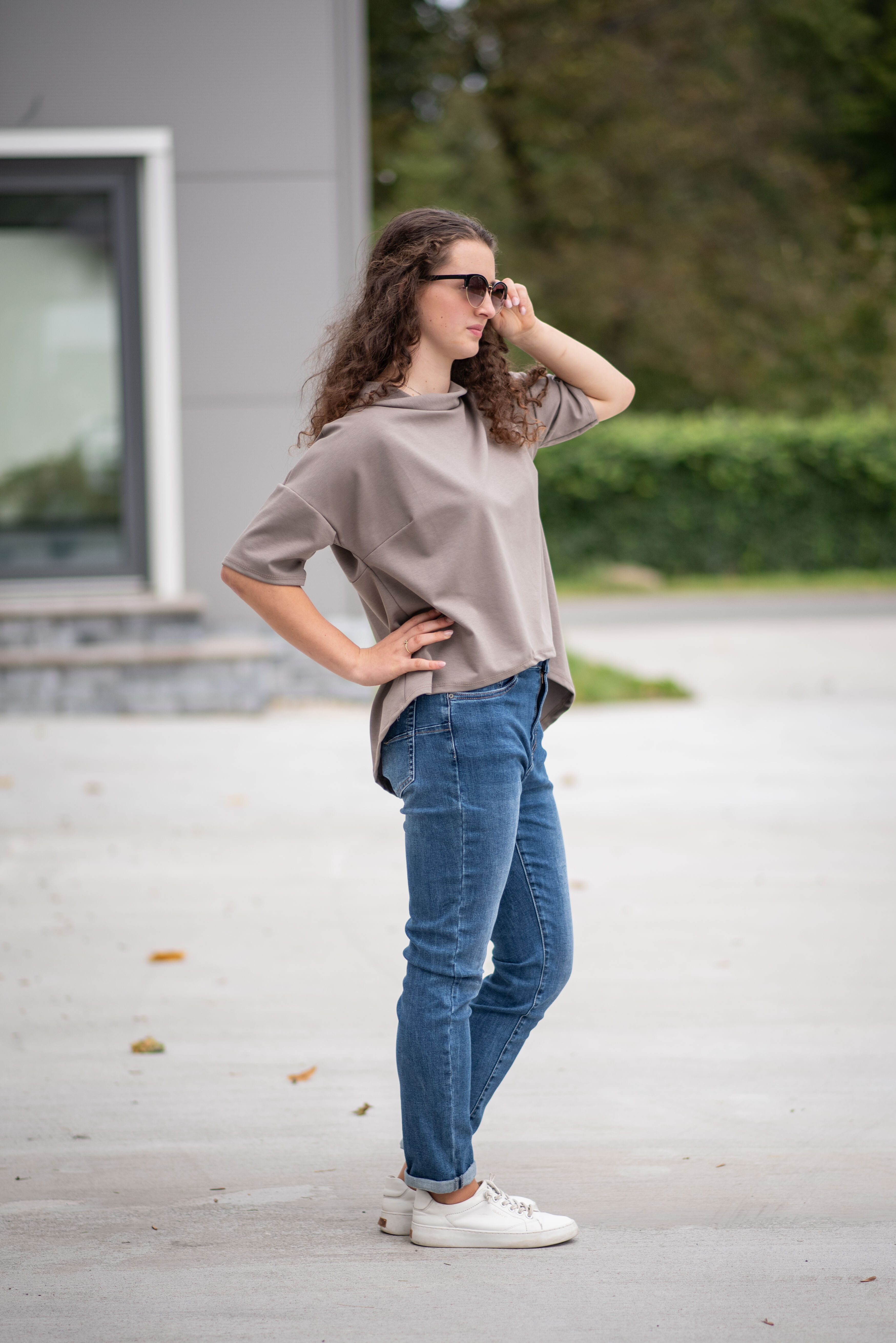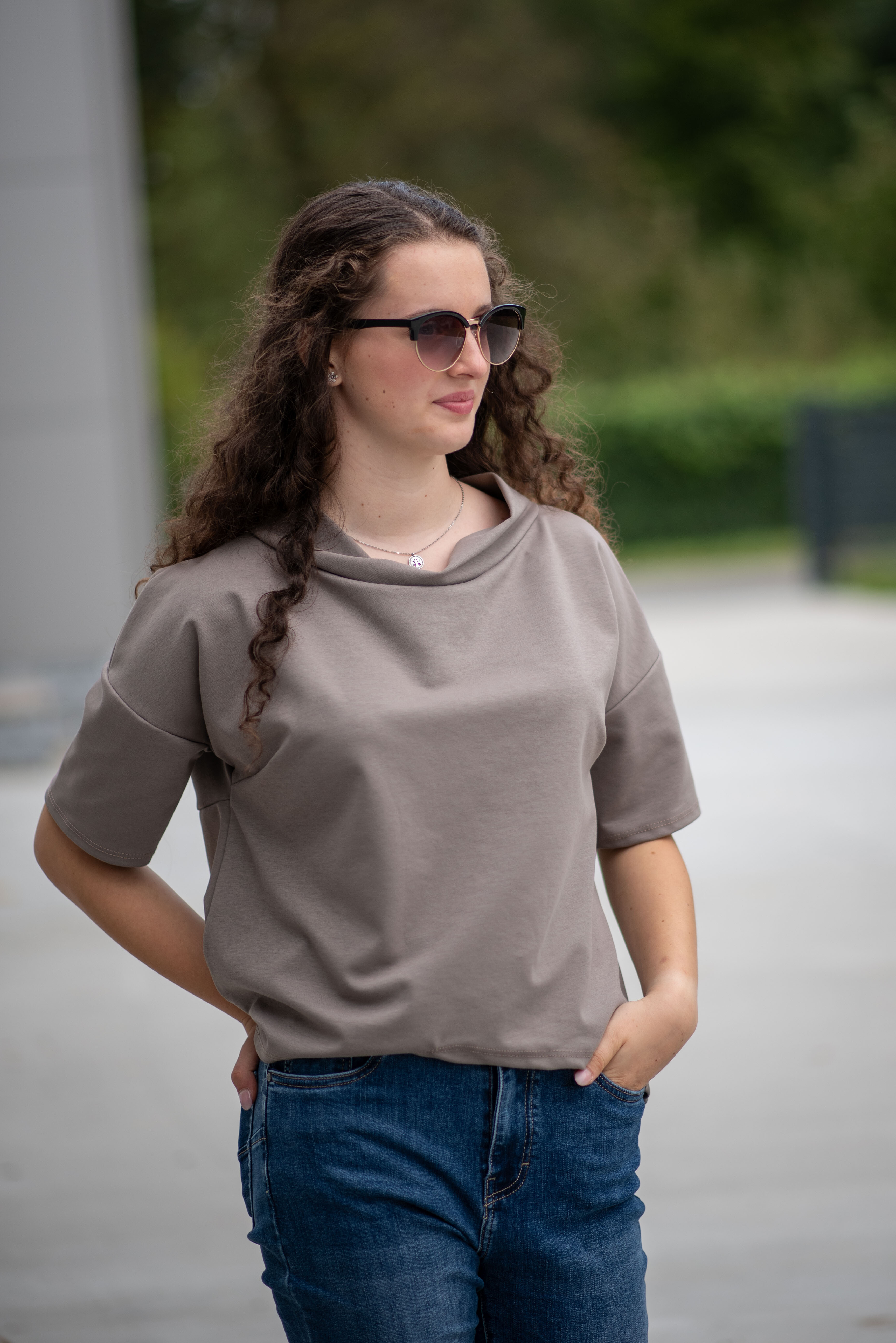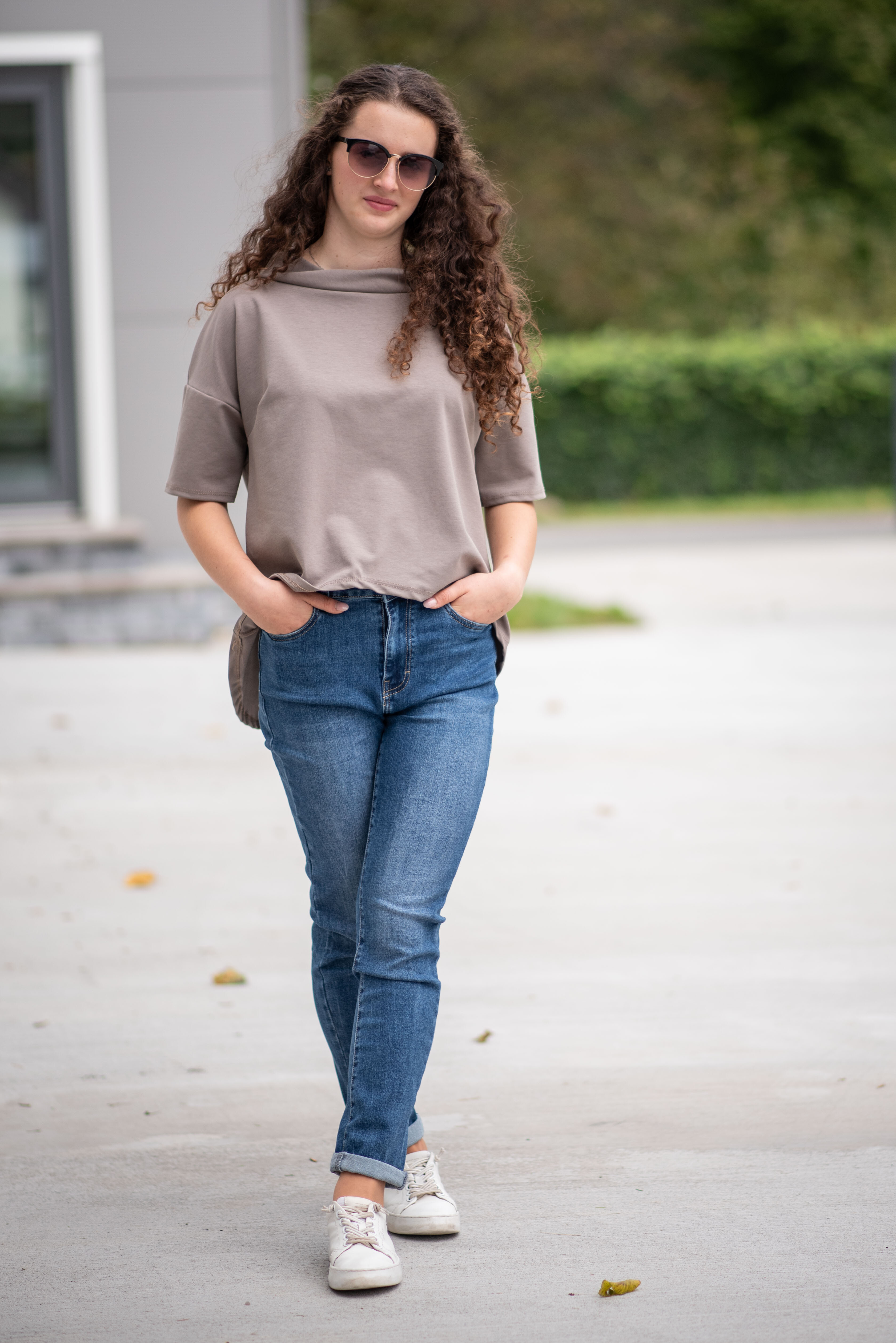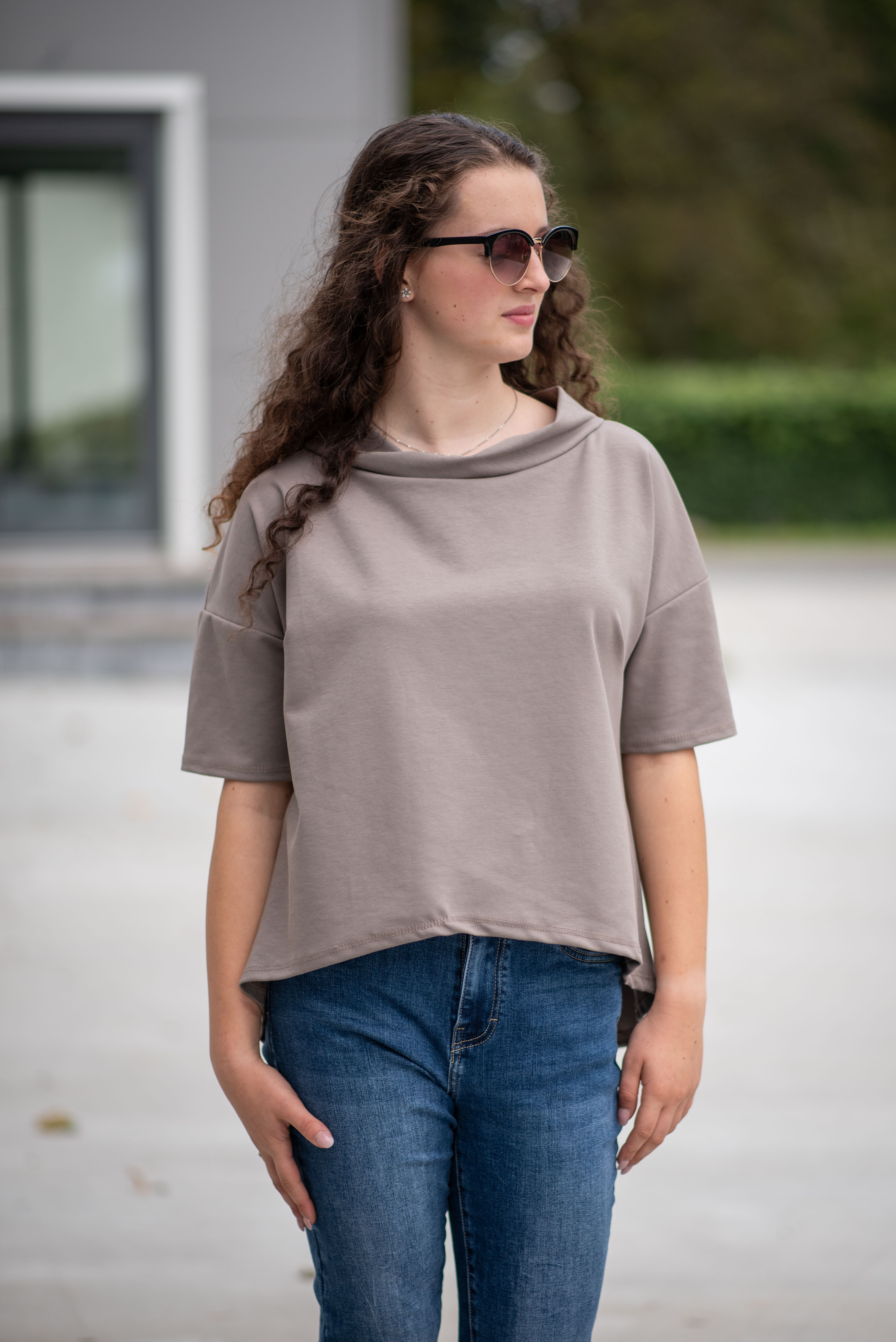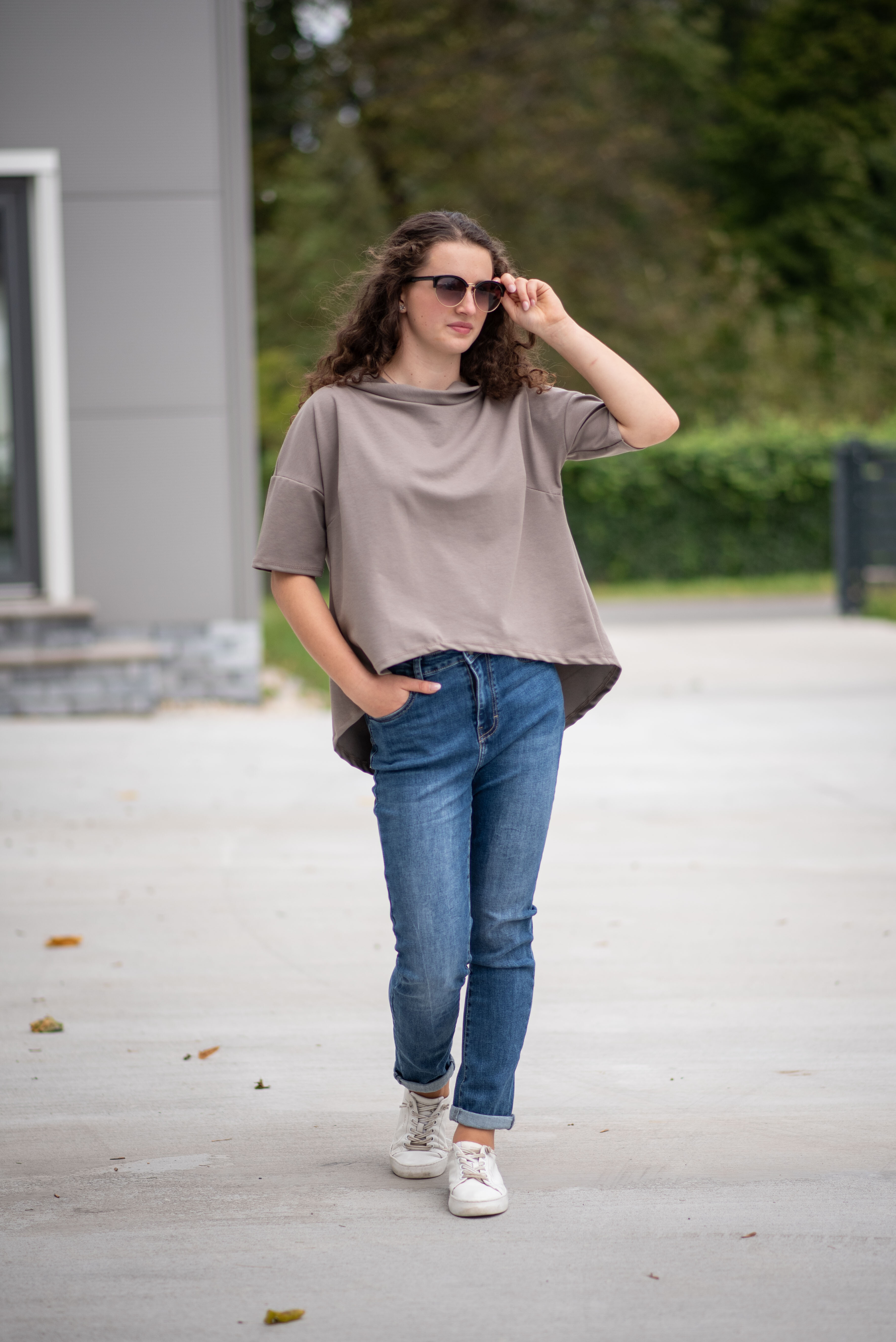Basic halenka s 3/4 rukávem, prodloužená zadní délka. Dovoz z Itálie.