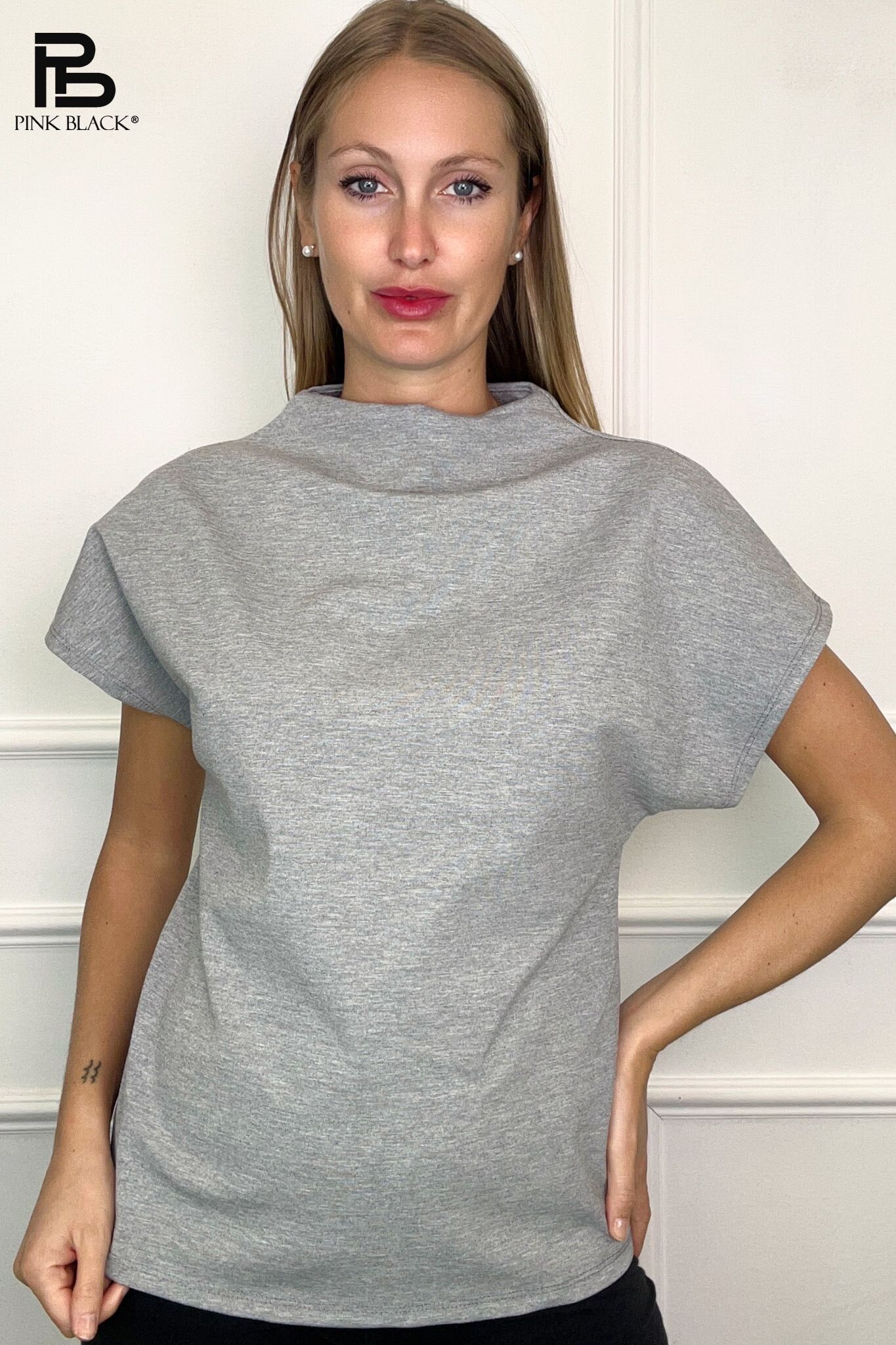 Basic halenka s krátkým rukávem. Halenka má stojáček. Dovoz z Itálie.