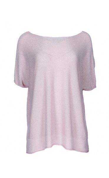 Příjemná úpletová halenka s lodičkovým výstřihem a lurexem.
