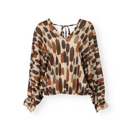 Halenka je v pase do gumy, má véčkový výstřih. Na zádech je taktéž véčkový výstřih s ozdobným vázáním.
