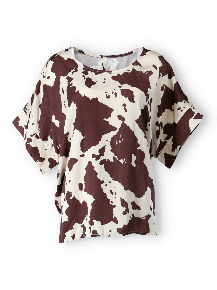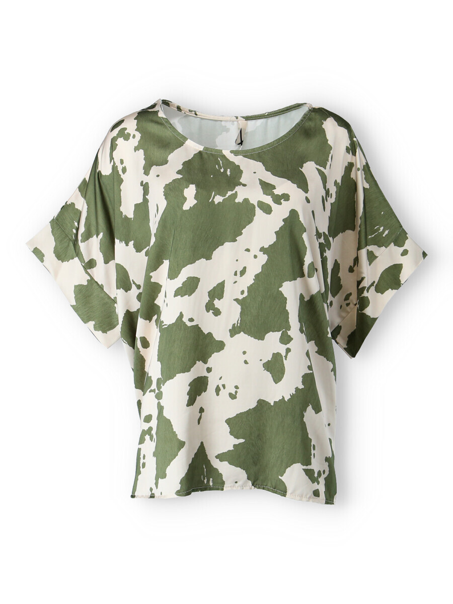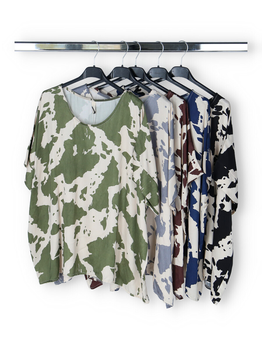 Dámská elegantní halenka/tunika oversize střihu. Halenka má krátký raglánový rukáv, kulatý výstřih a je z velmi jemného a příjemného materiálu. Dovoz Itálie