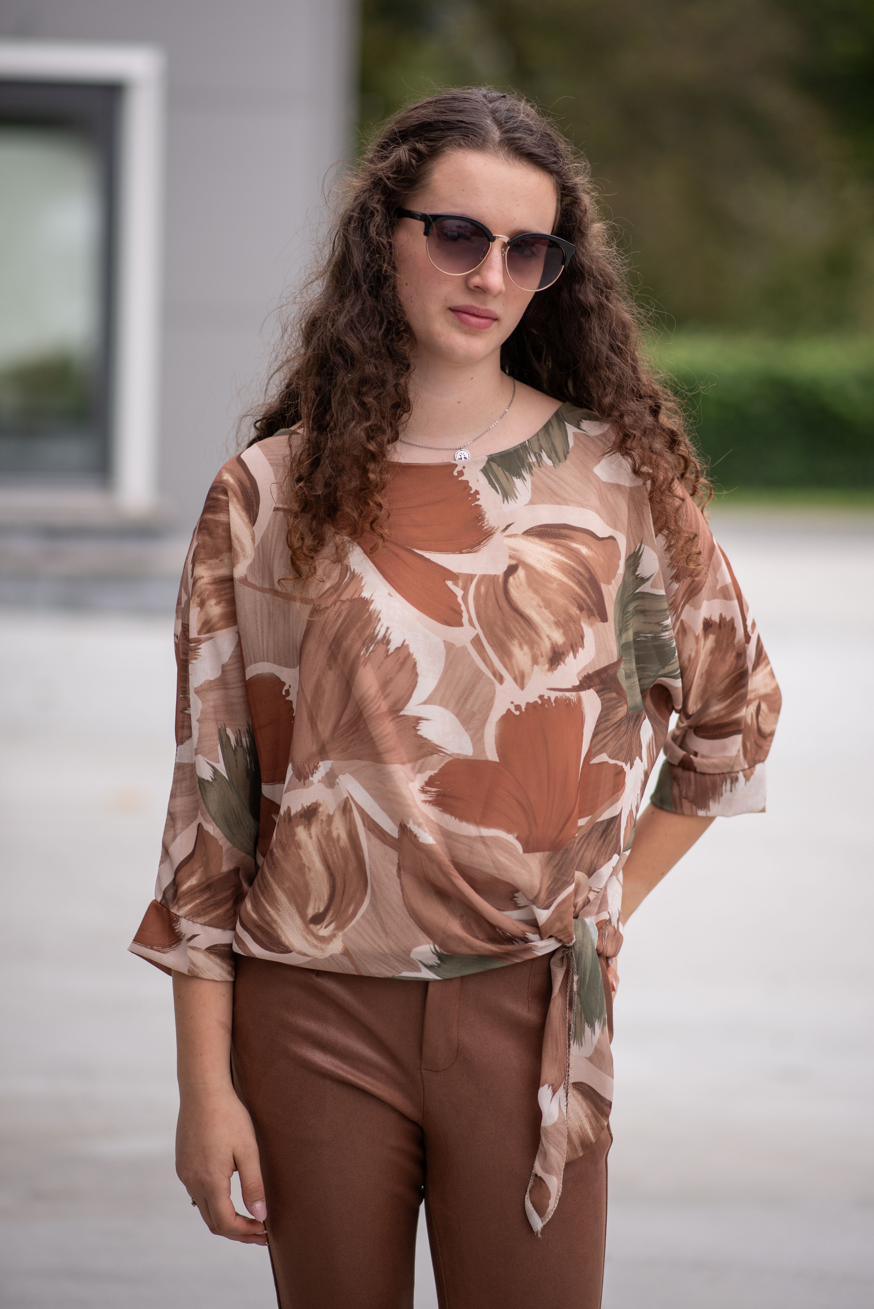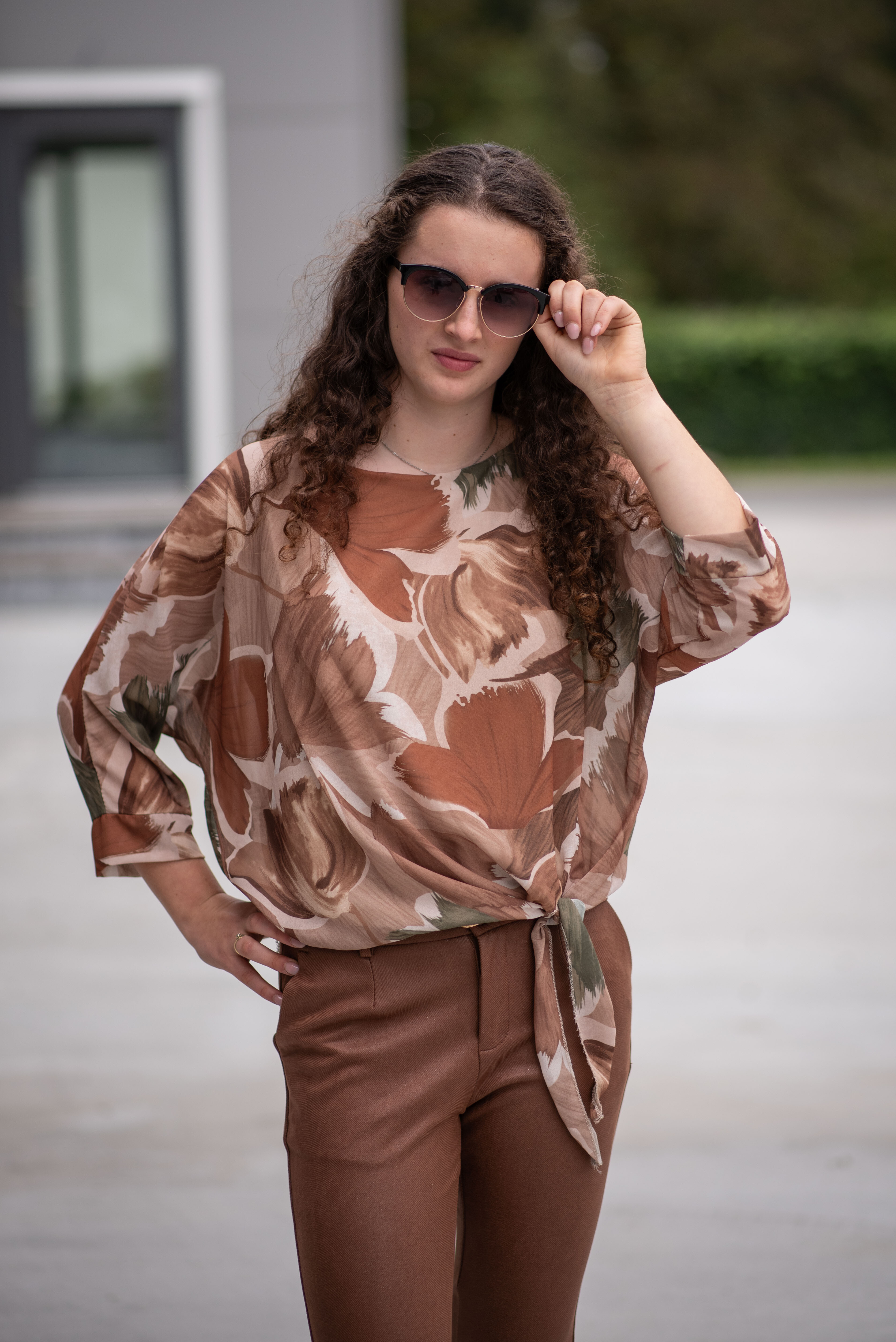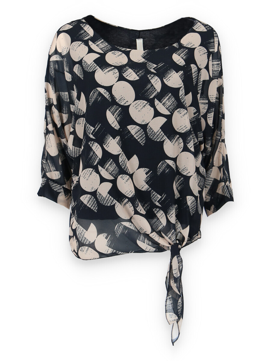 Módní halenka s potiskem, 3/4 rukáv, ve spodní částí s vázáním. Dovoz z Itálie.