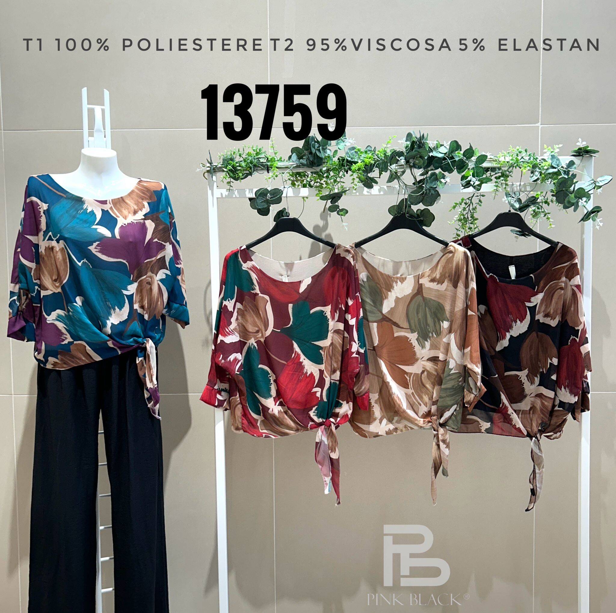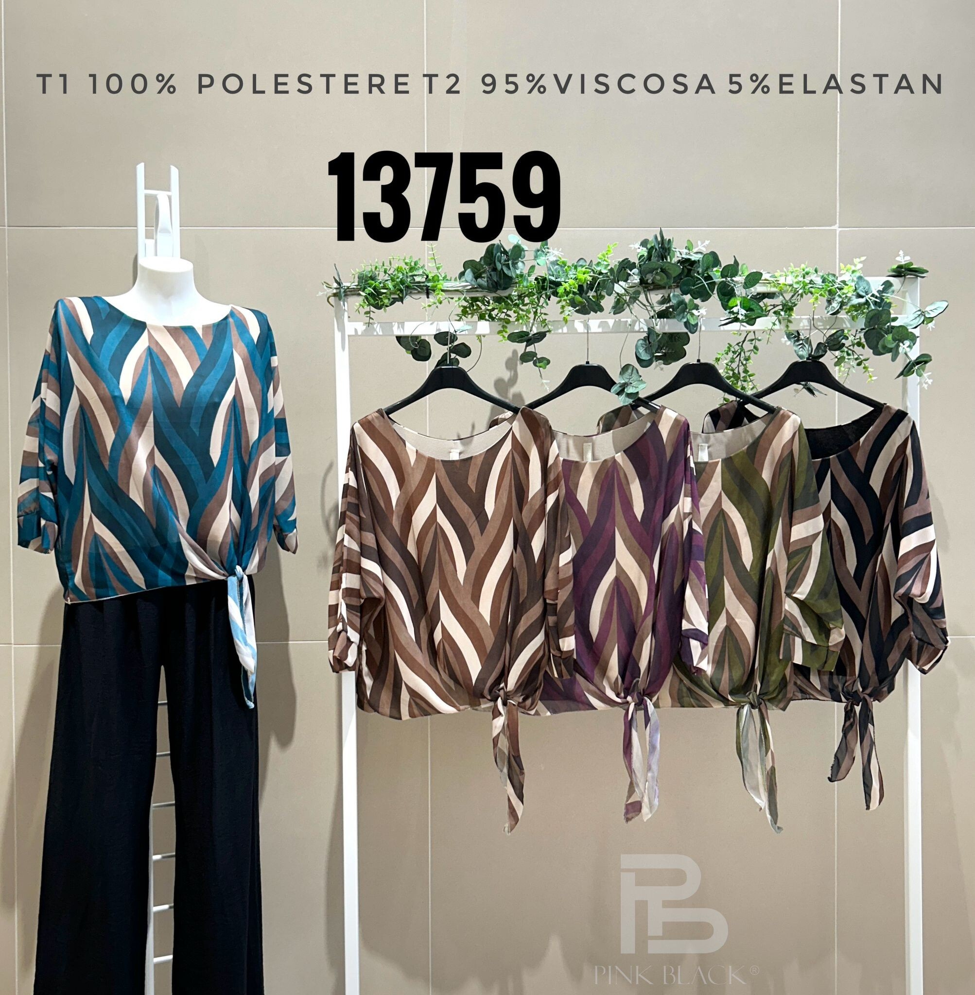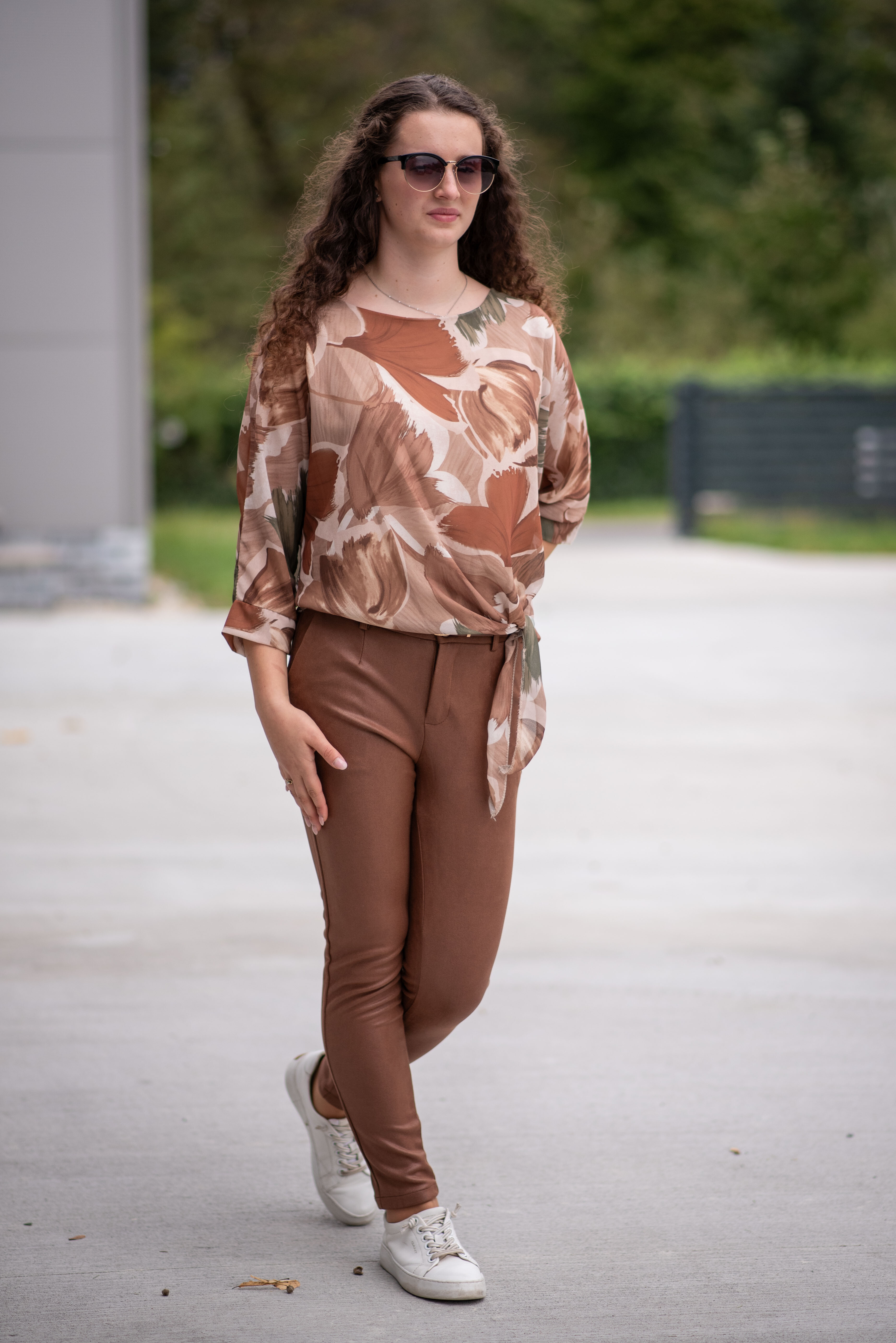 Módní halenka s potiskem, 3/4 rukáv, ve spodní částí s vázáním. Dovoz z Itálie.