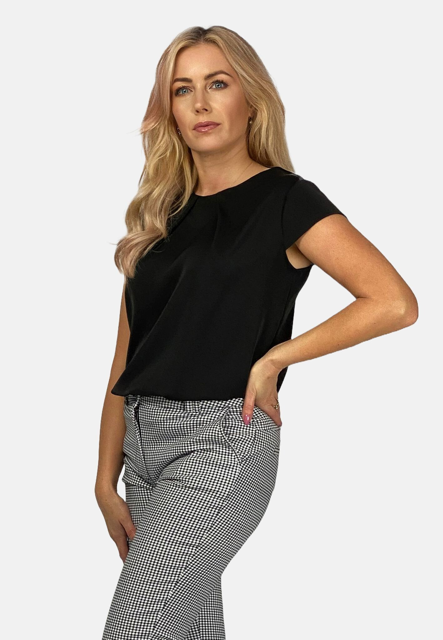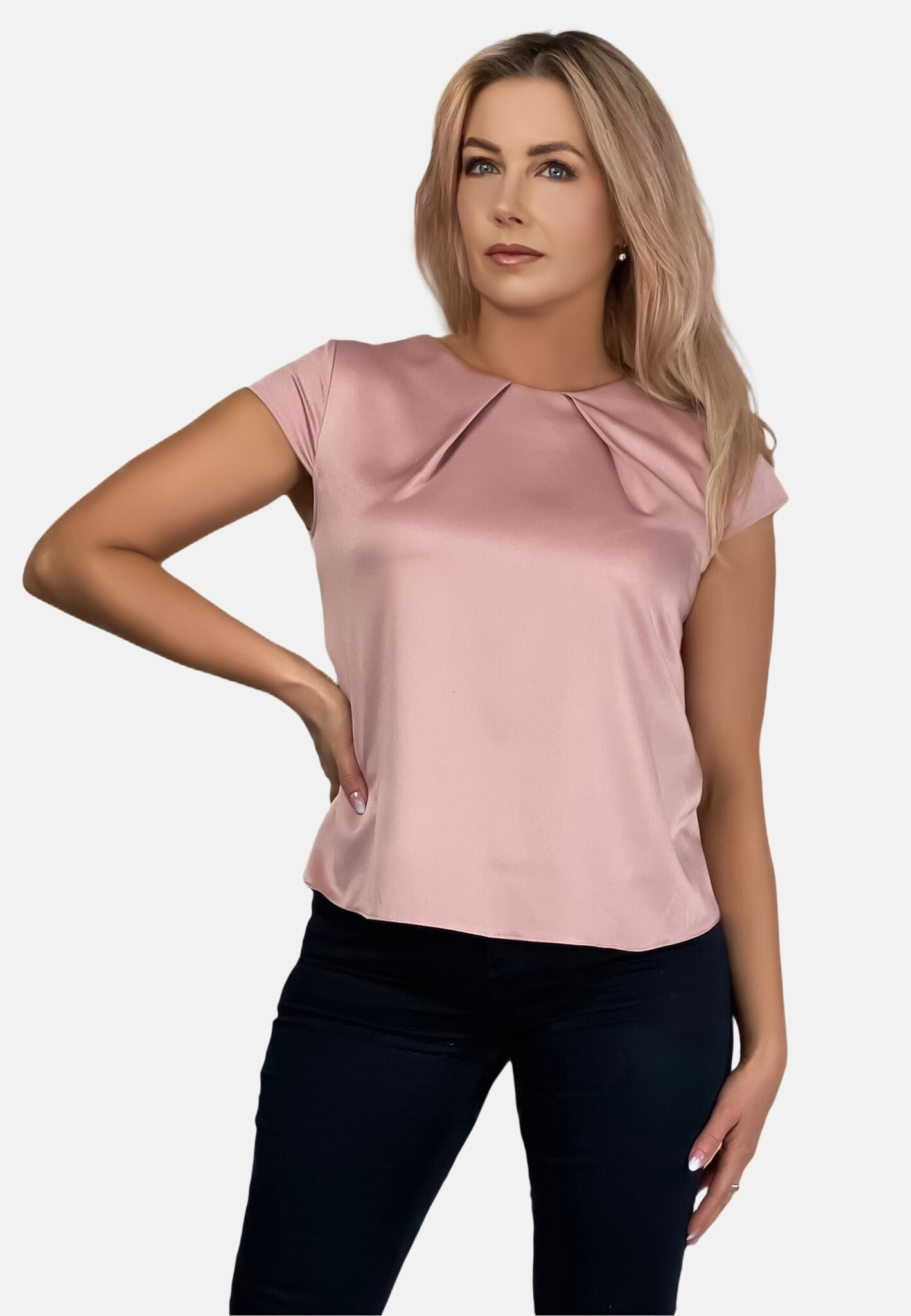 Halenka s krátkým rukávem a řaseným výstřihem , zapínání na zip vzadu u krku